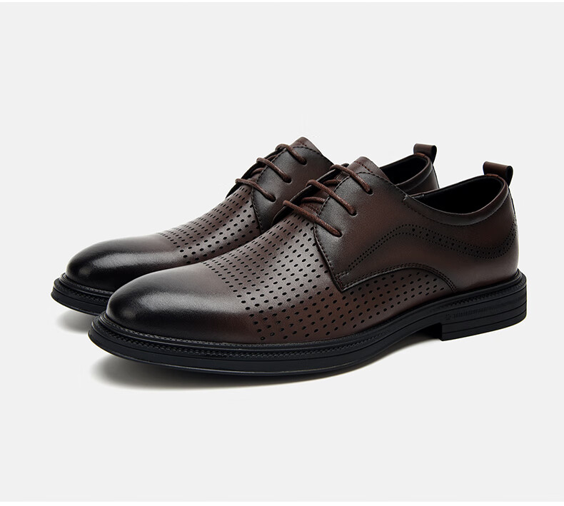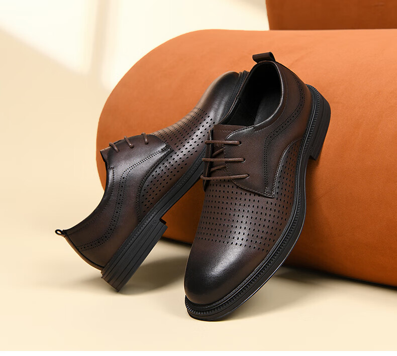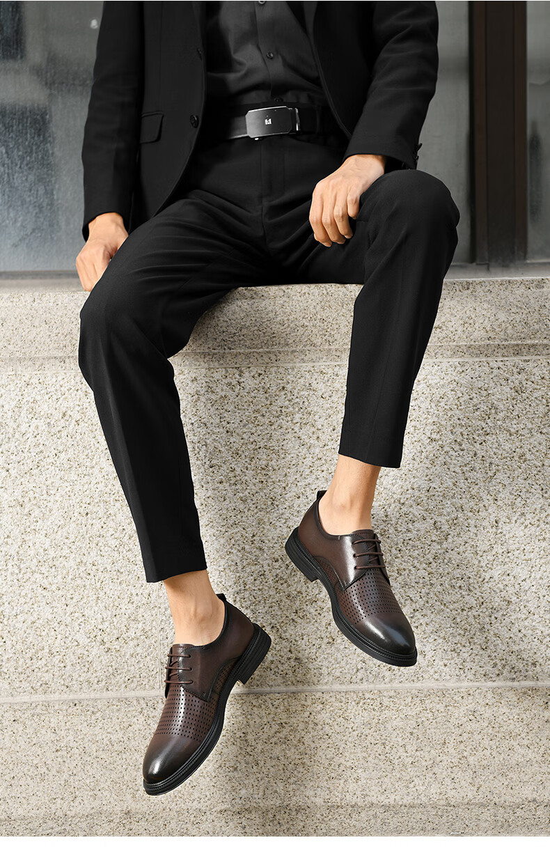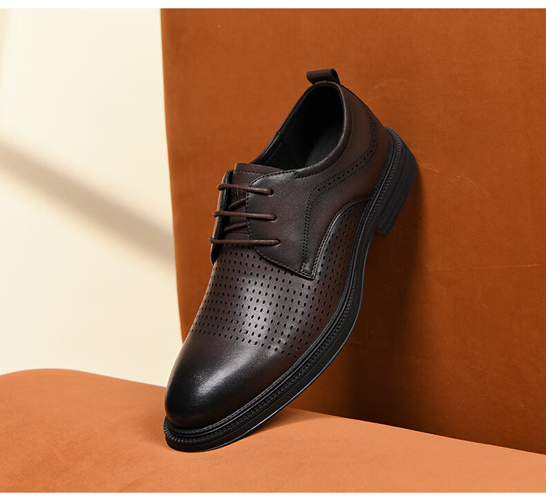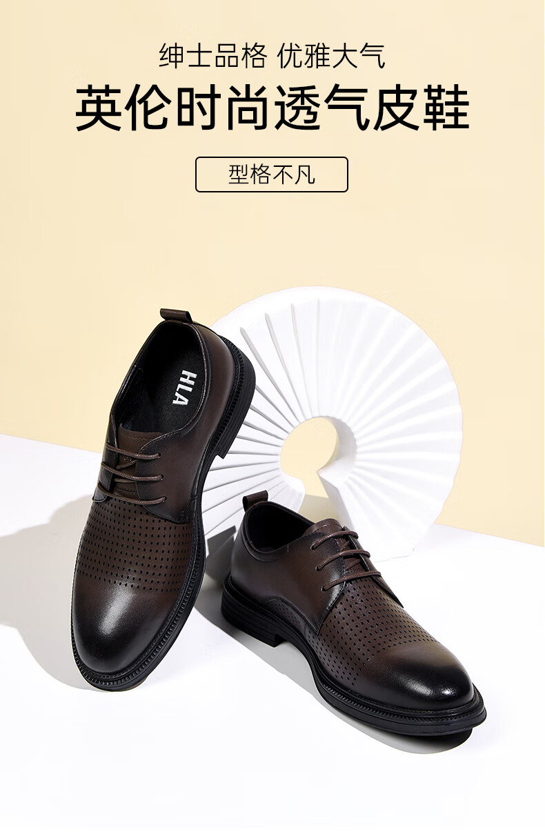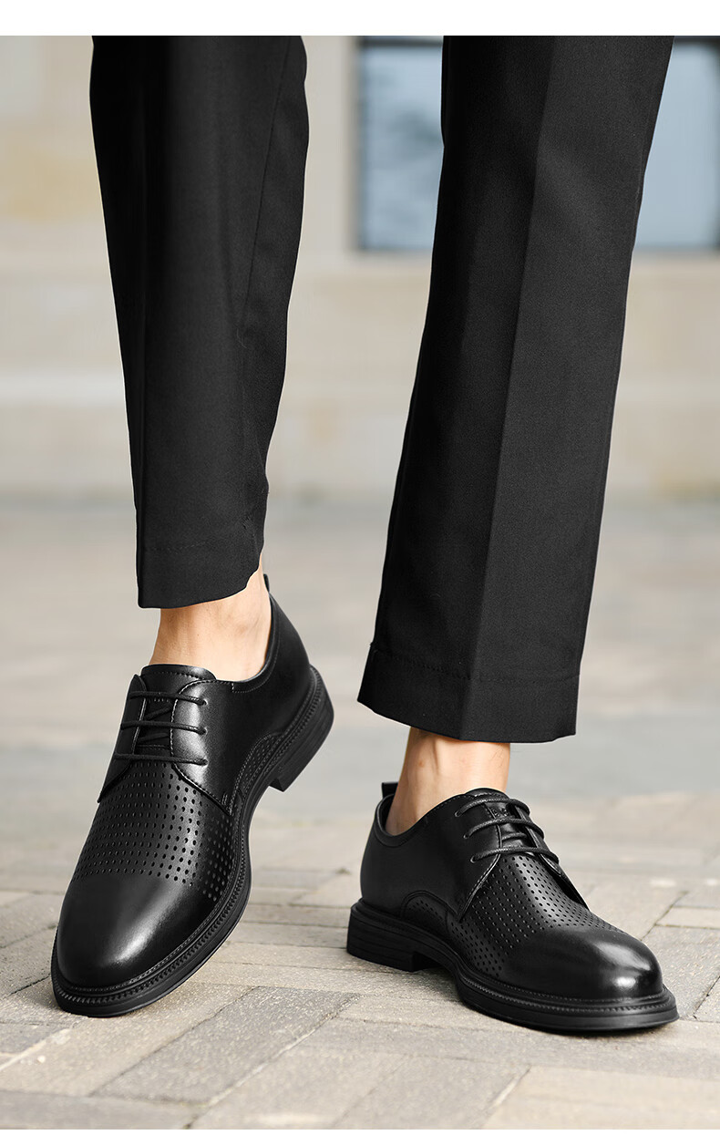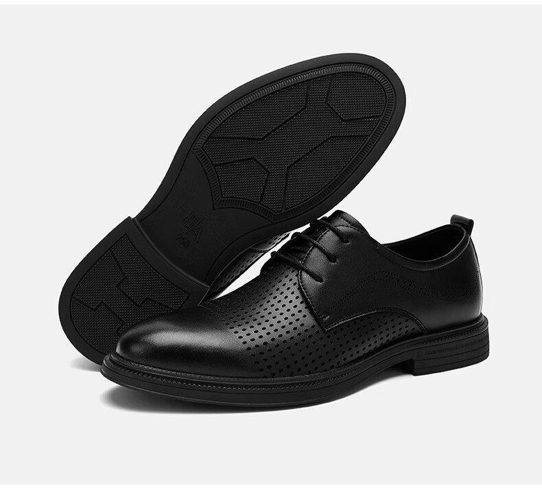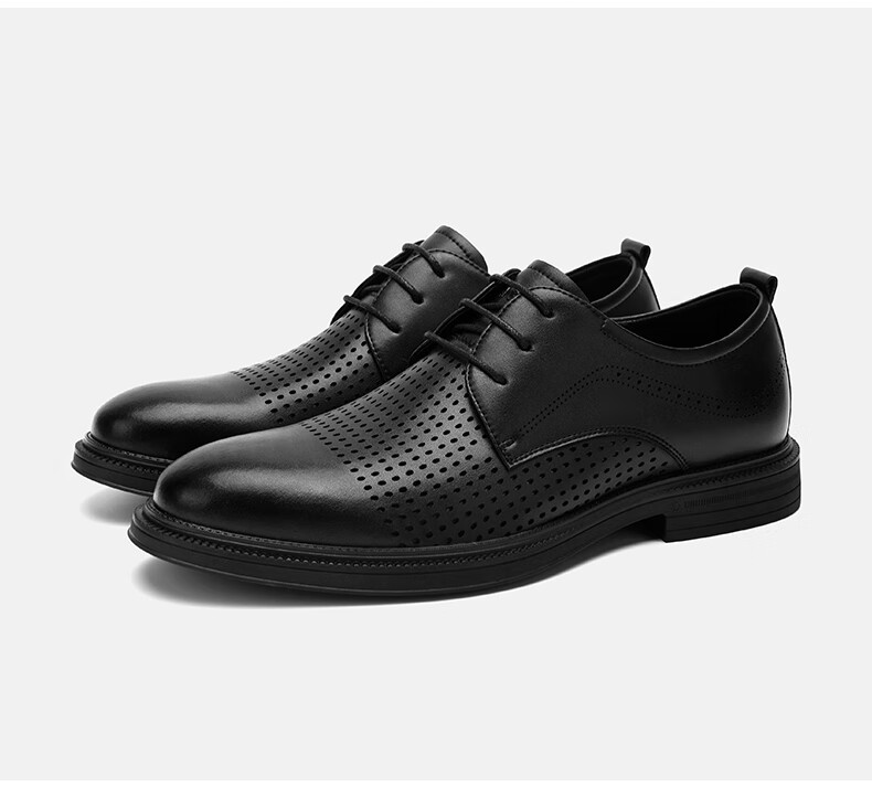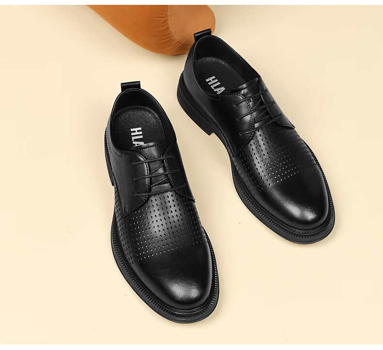 海澜之家(HLA)男鞋夏季透孔商务皮鞋男正装德比鞋子 黑色 42