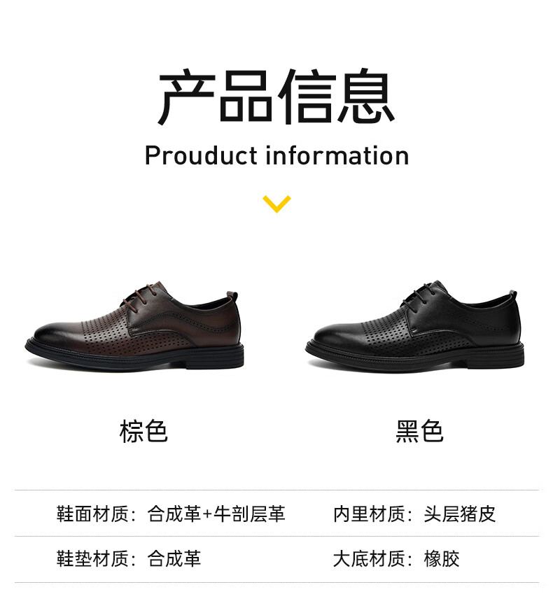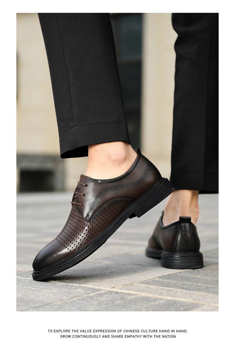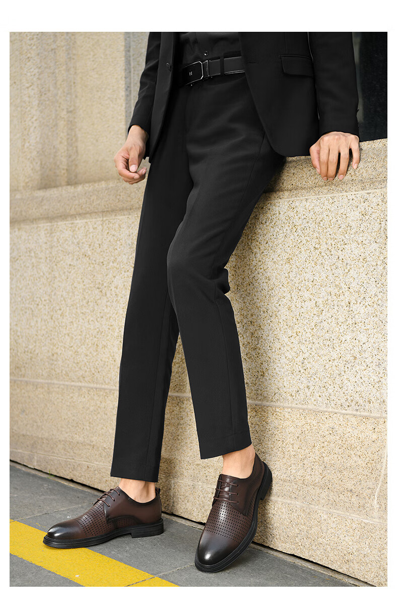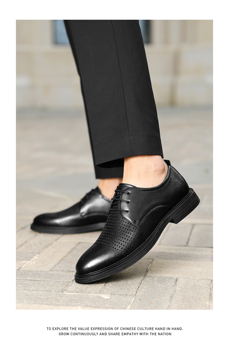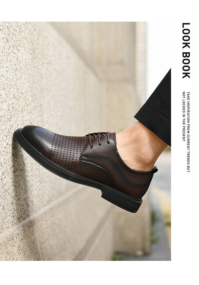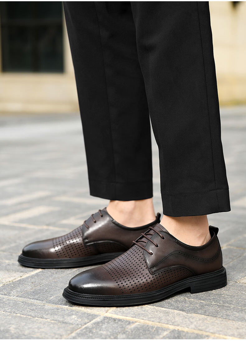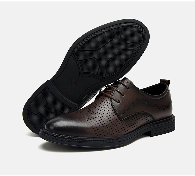 海澜之家(HLA)男鞋夏季透孔商务皮鞋男正装德比鞋子 黑色 42
