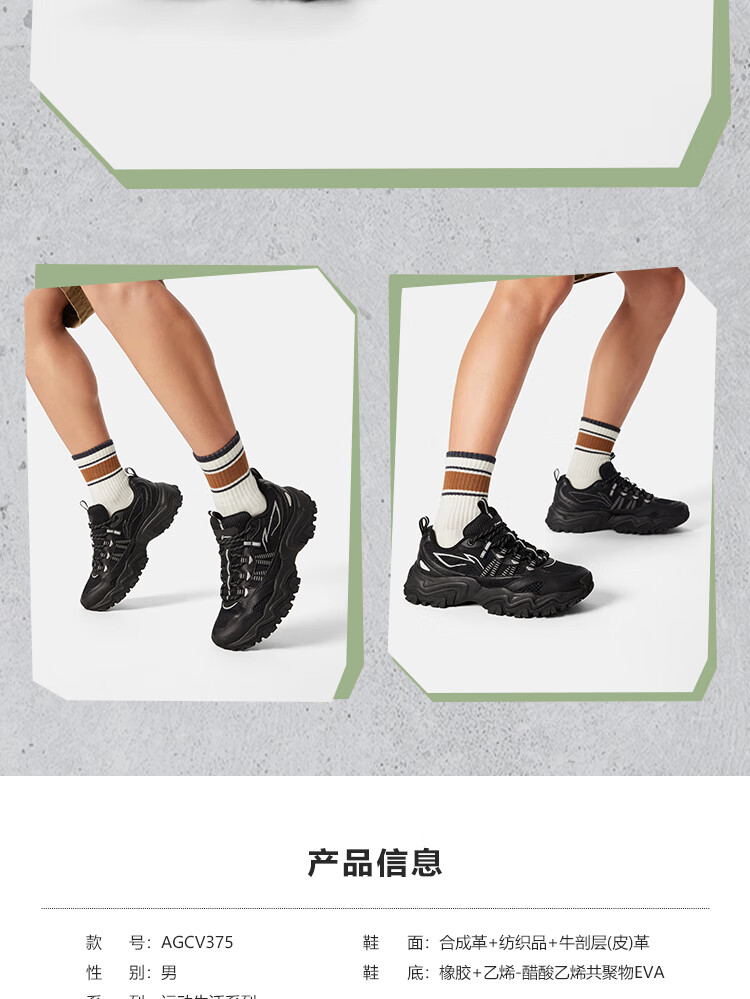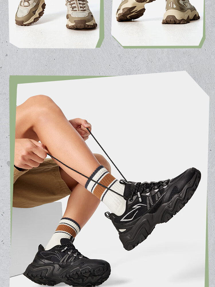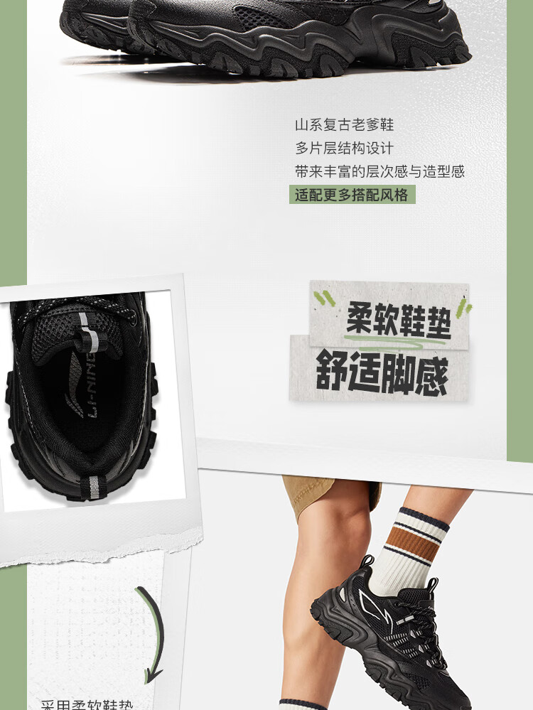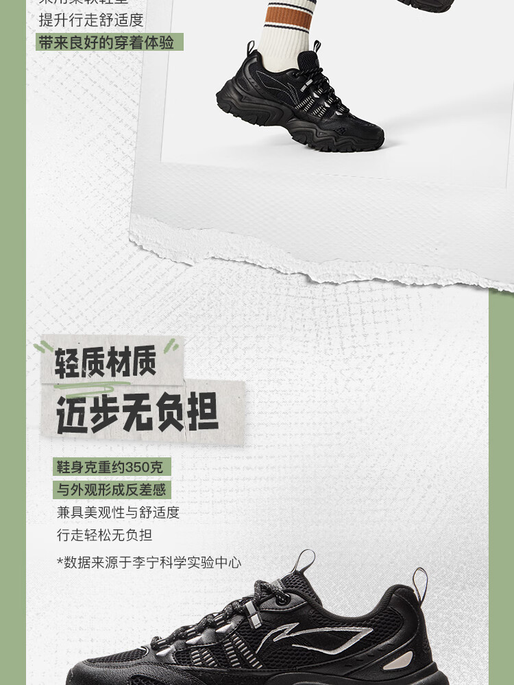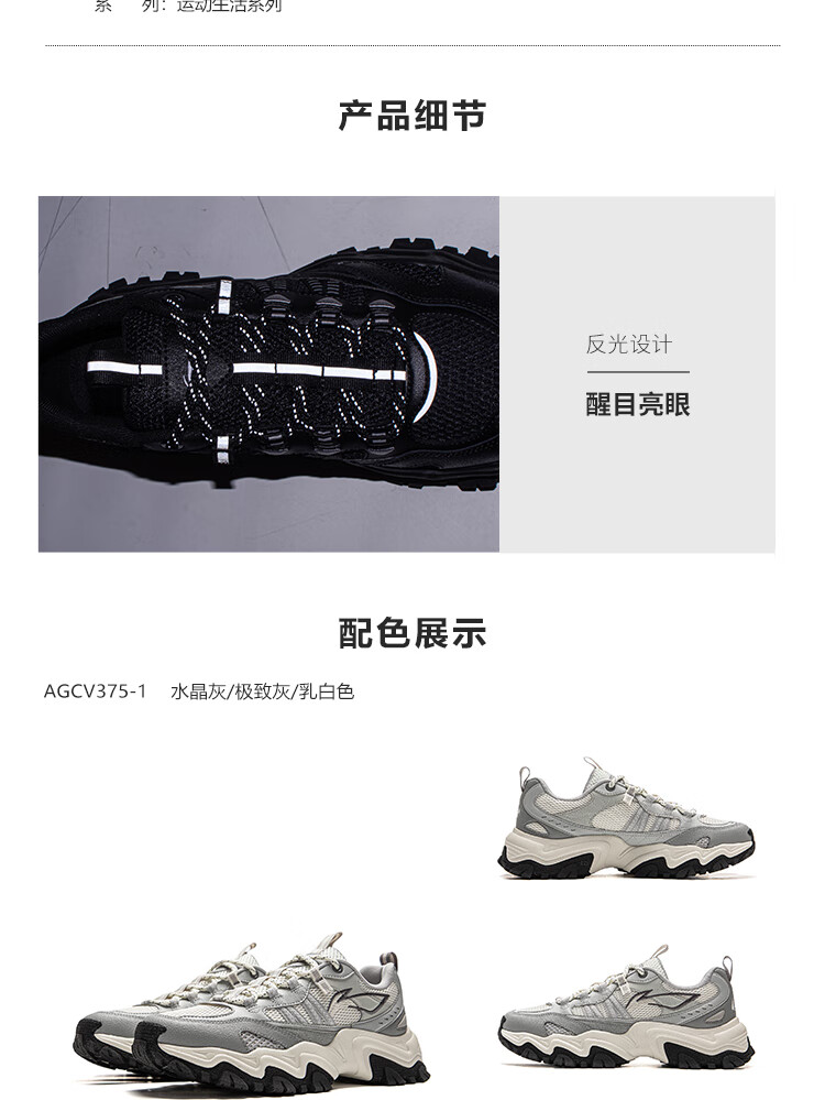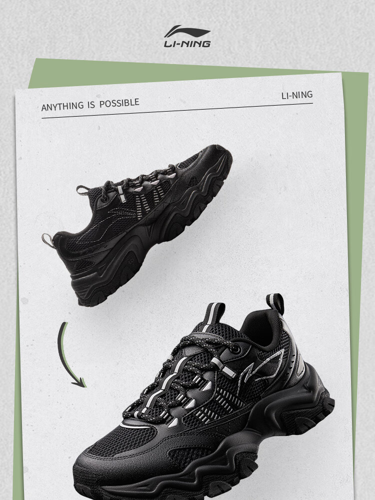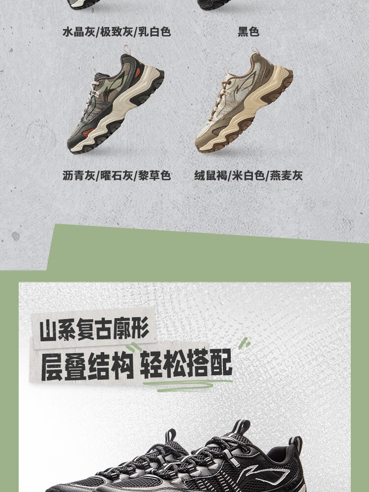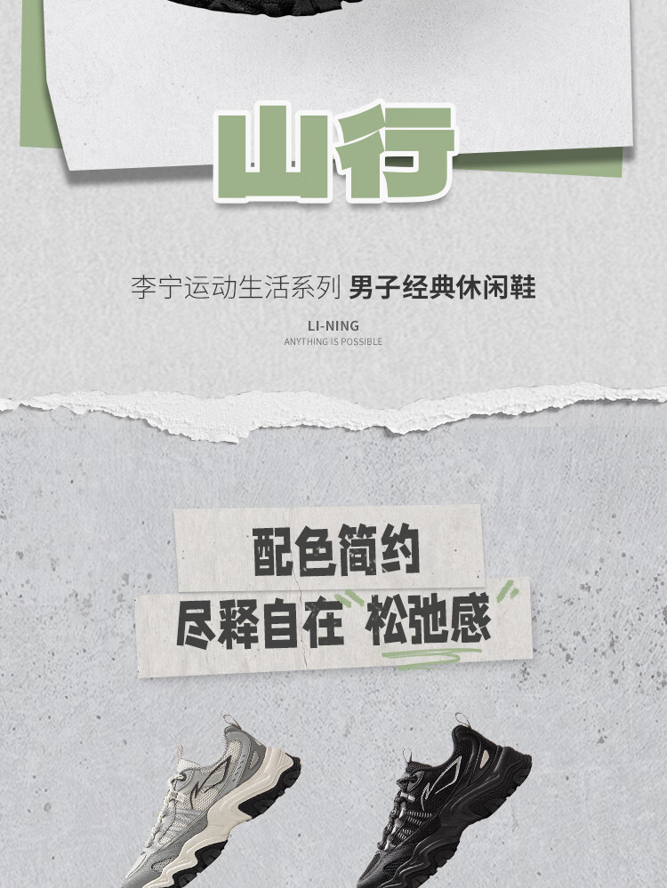李宁山行丨经典休闲鞋男子2025新款反光潮流复古低帮运动鞋AGCV375