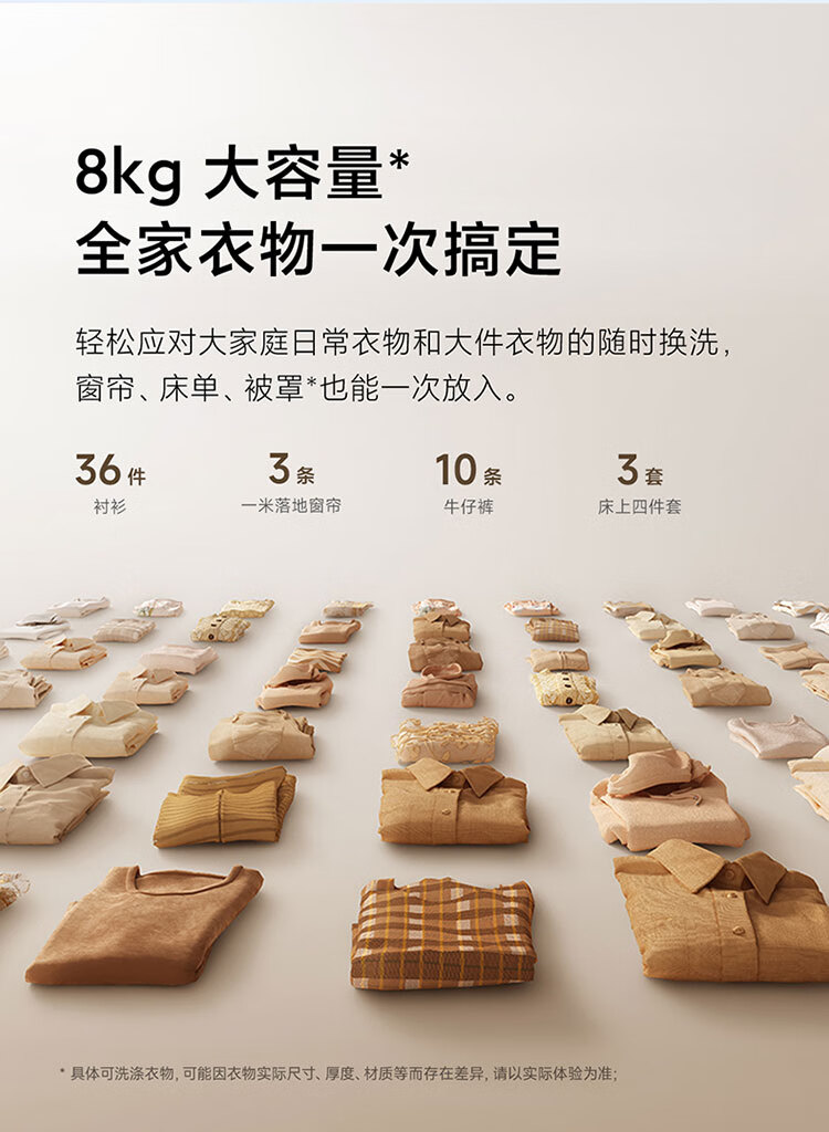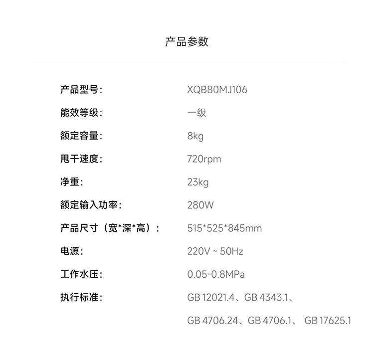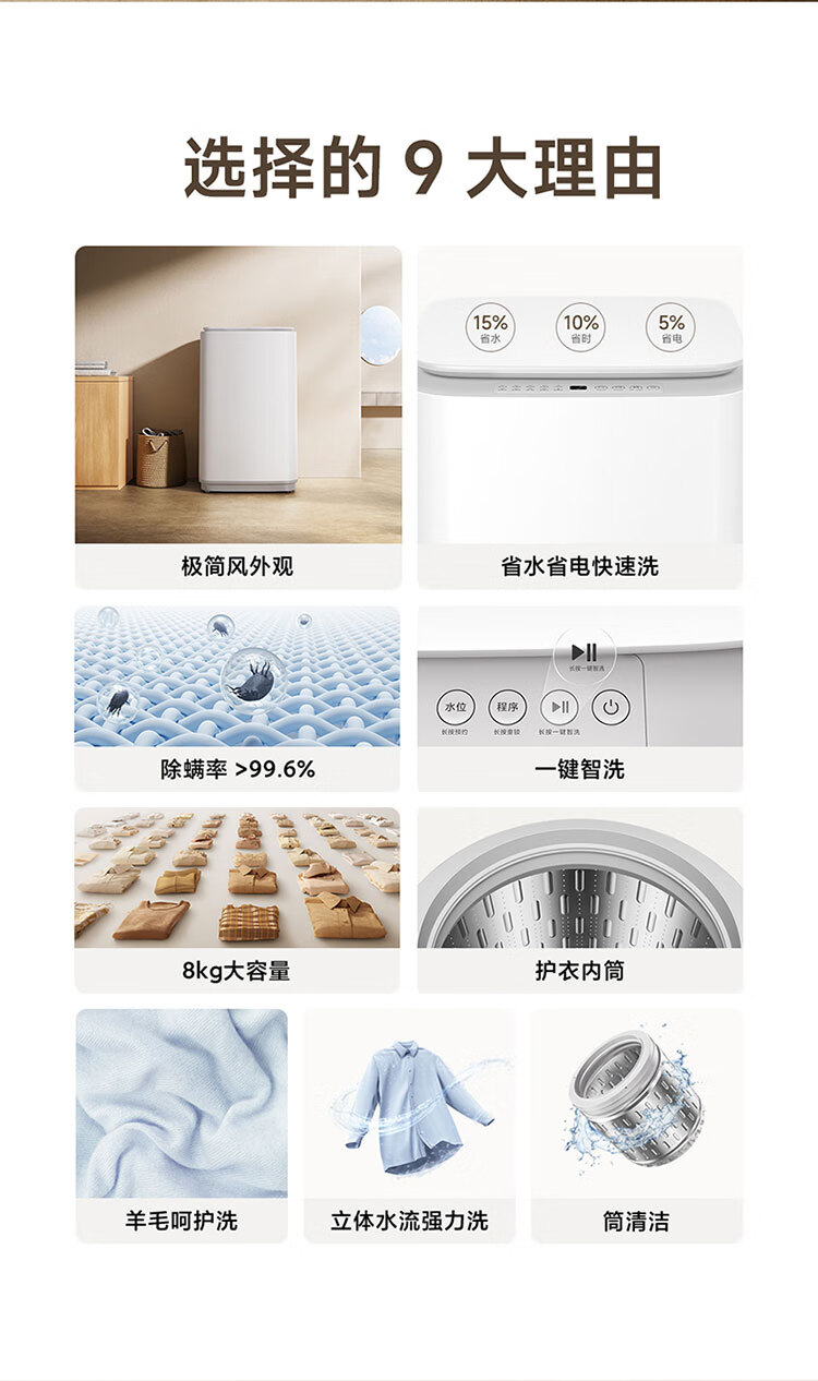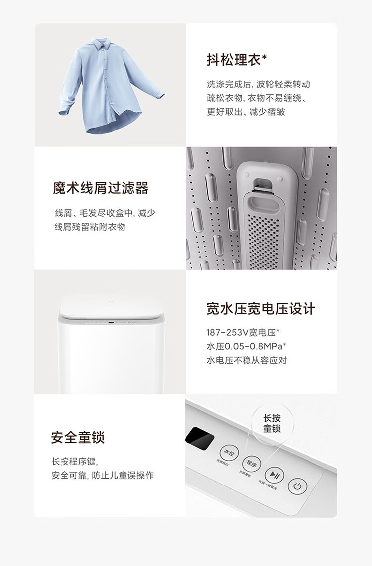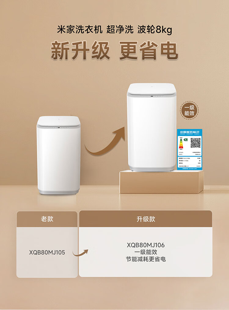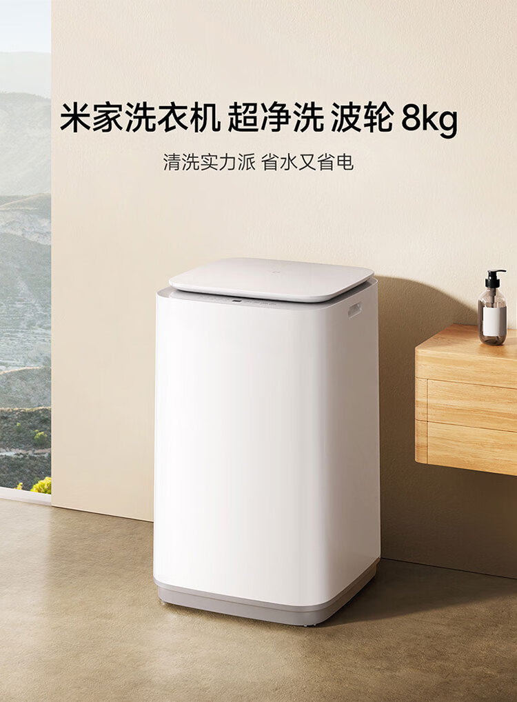 米家小米波轮洗衣机 8KG超净洗大容量 全自动健康桶自洁租房宿舍XQB80MJ106一级能效