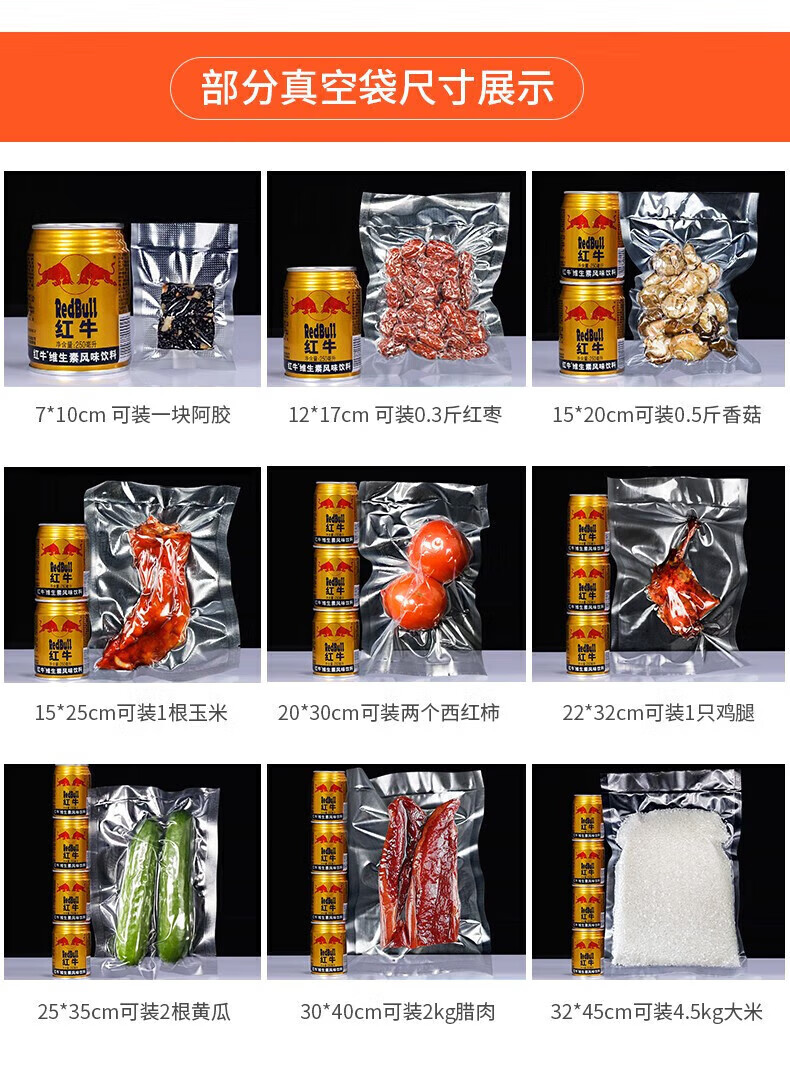 收米【100只】网纹路真空袋真空食品包装袋抽真空塑封袋封口压缩袋 【店长推荐】20cm*30cm 100只装