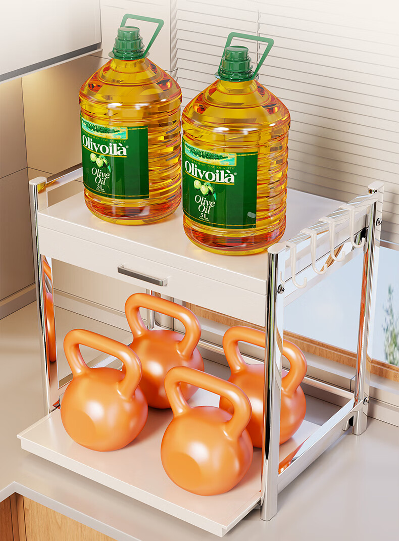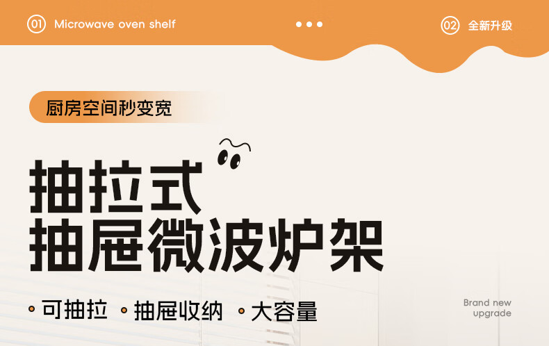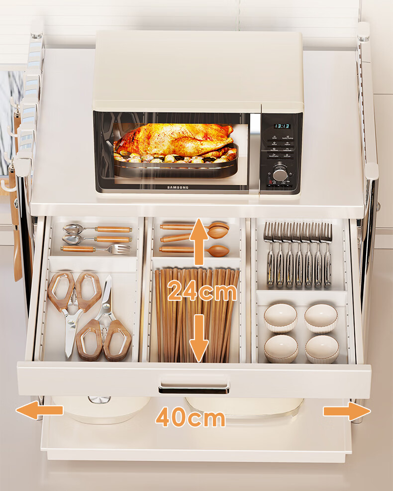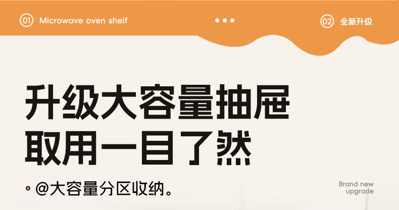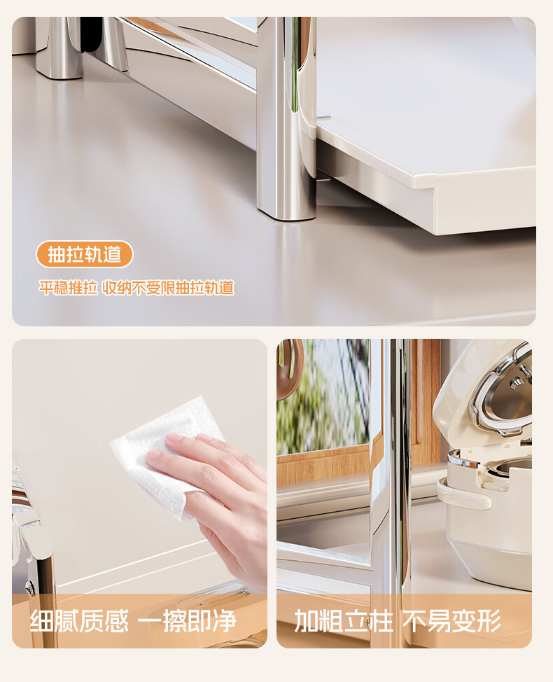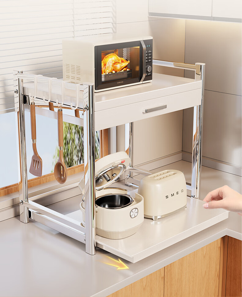 木格格微波炉架子置物架台面多功能烤箱架双层抽拉电饭煲锅具厨房收纳架 奶白色-带抽屉盒-45