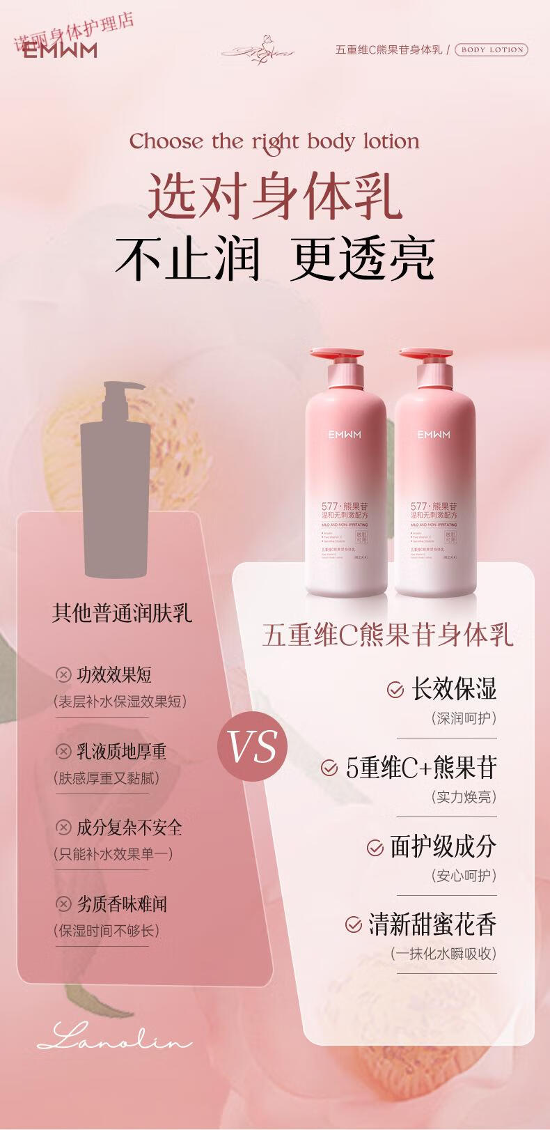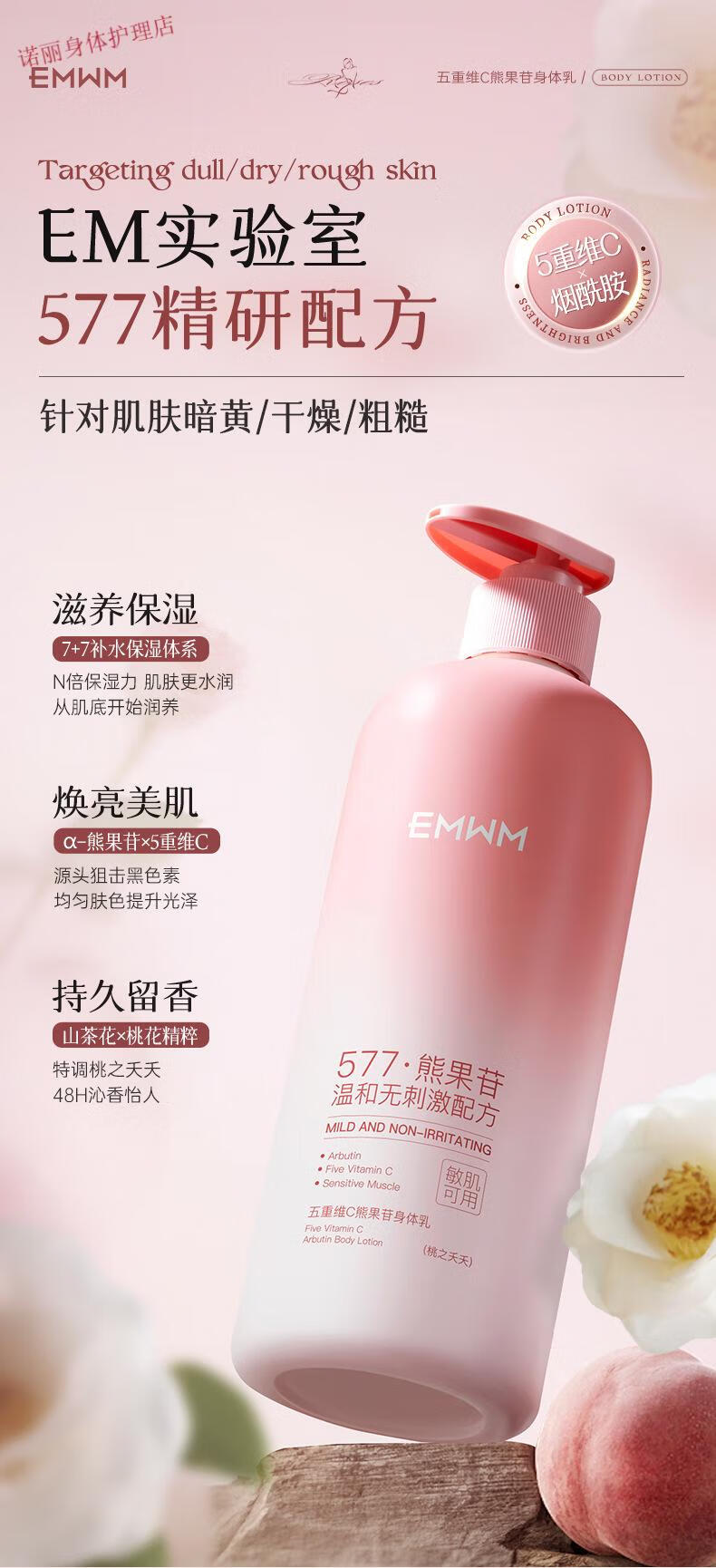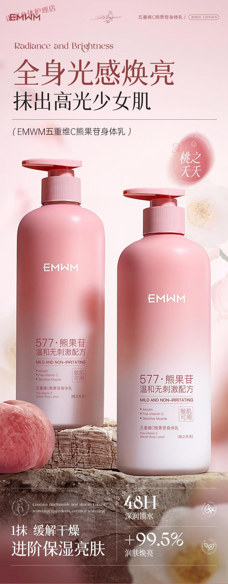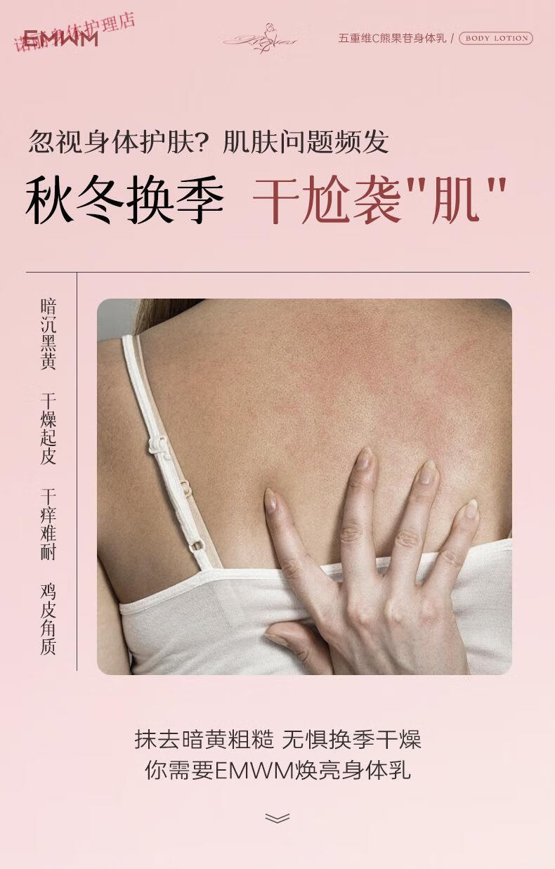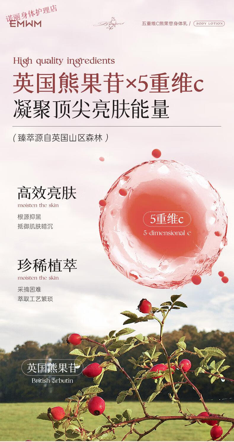 EMWM 黄芪身体乳补水保湿干燥皮肤持久留香72小时香体嫩白维E润肤 EMWM五重维C熊果苷身体乳500ml