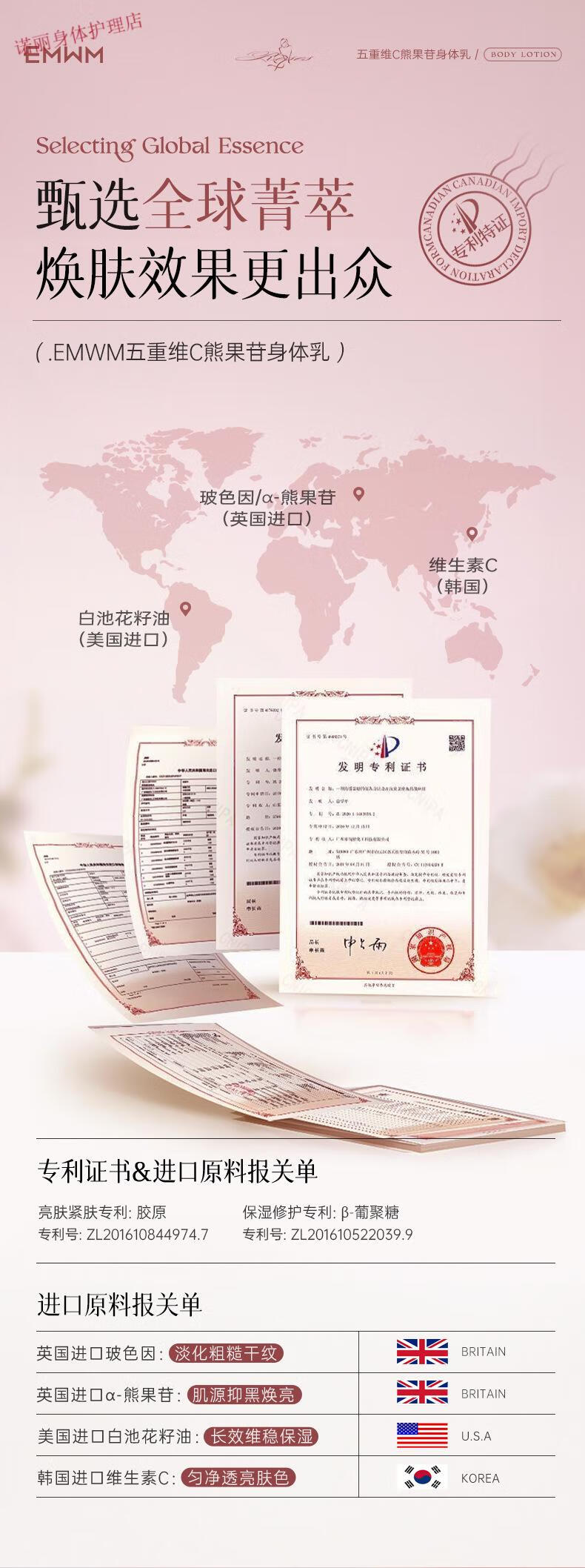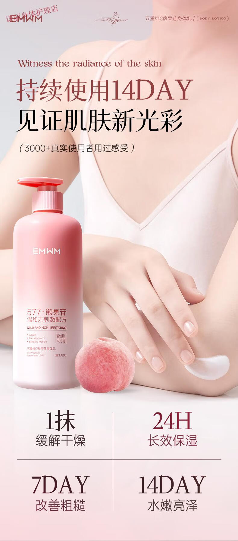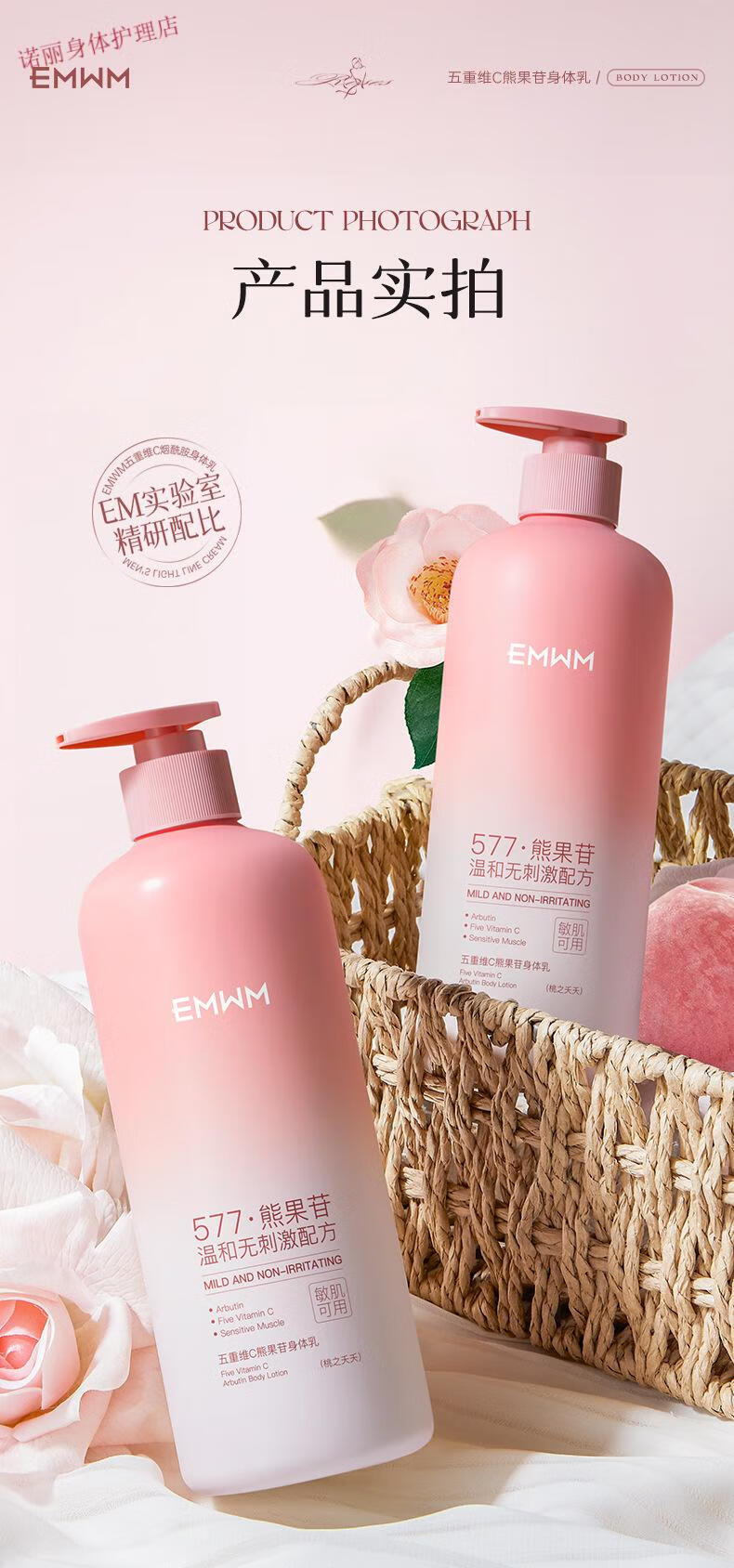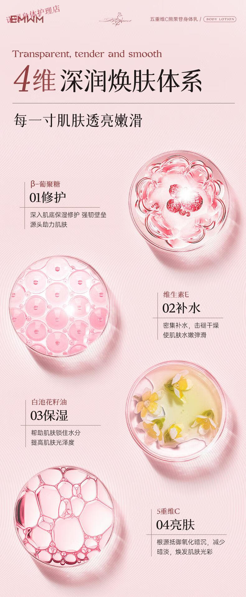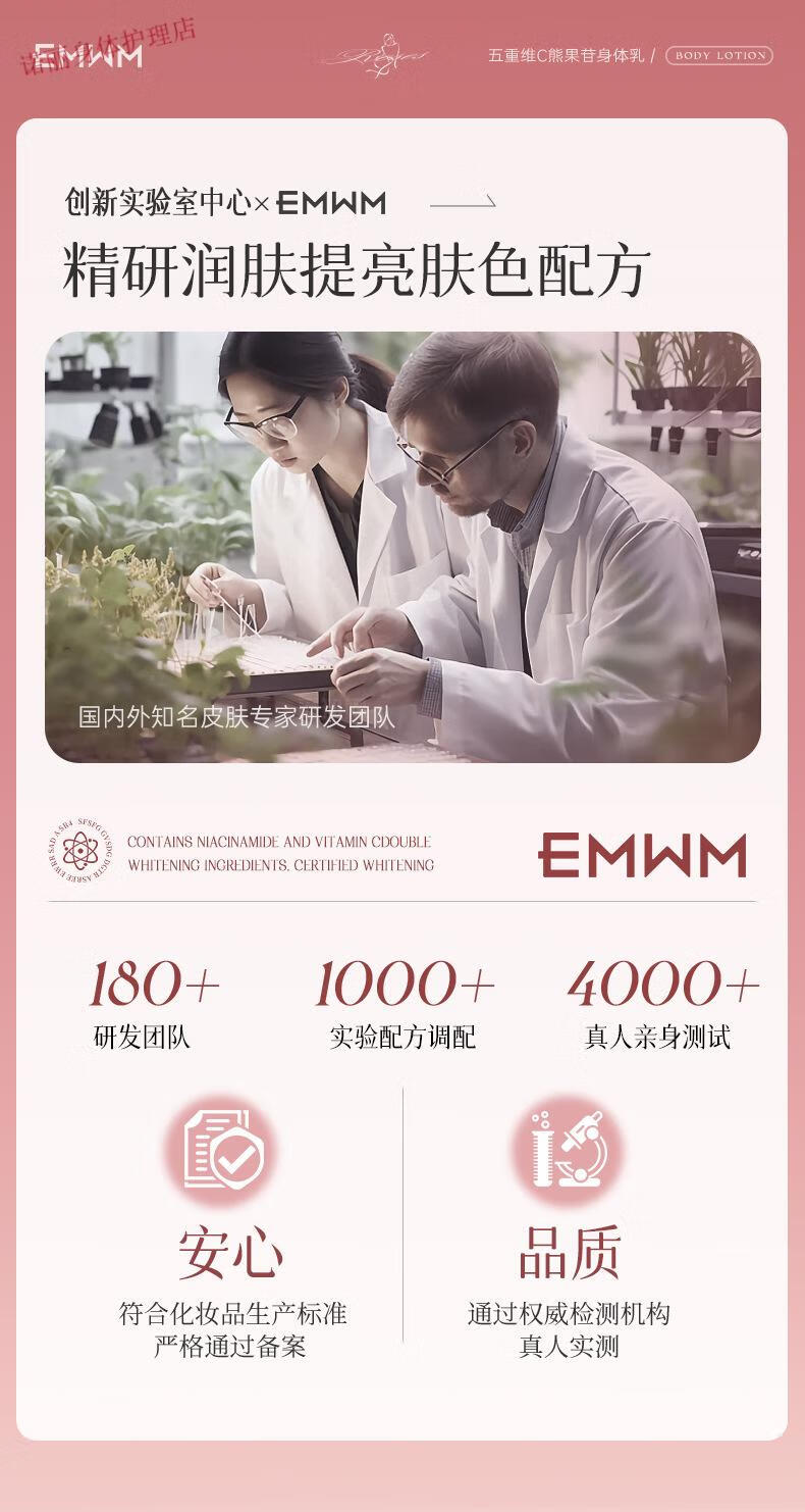 EMWM 黄芪身体乳补水保湿干燥皮肤持久留香72小时香体嫩白维E润肤 EMWM五重维C熊果苷身体乳500ml