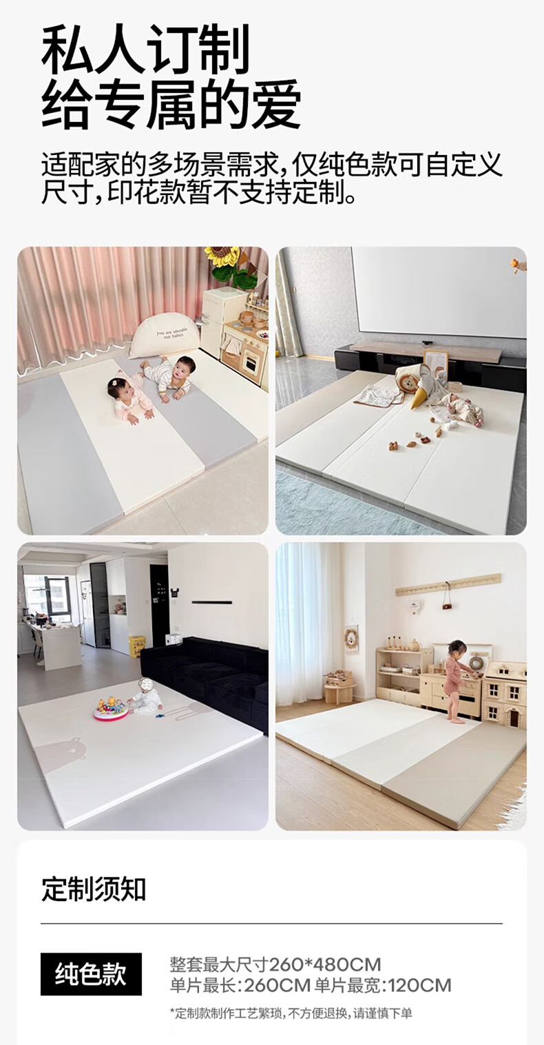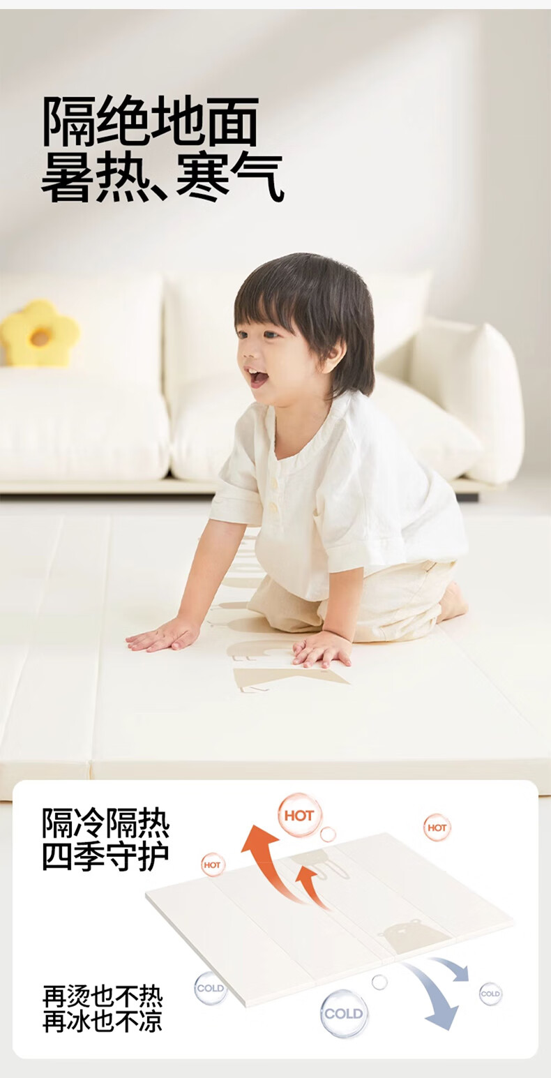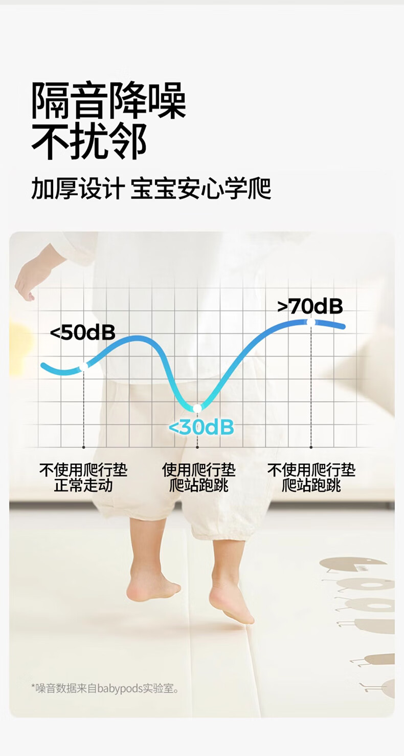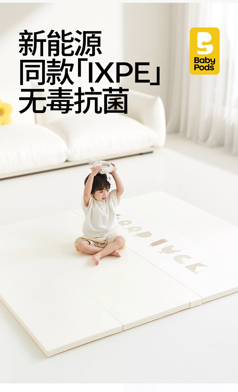 babypods宝宝爬爬垫IXPE婴儿爬行垫可折叠加厚无毒无味抗菌家用游戏地垫 奶油灰【高端IXPE内芯】 尺寸可定制【详情咨询客服】
