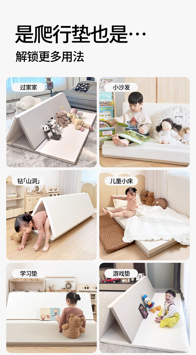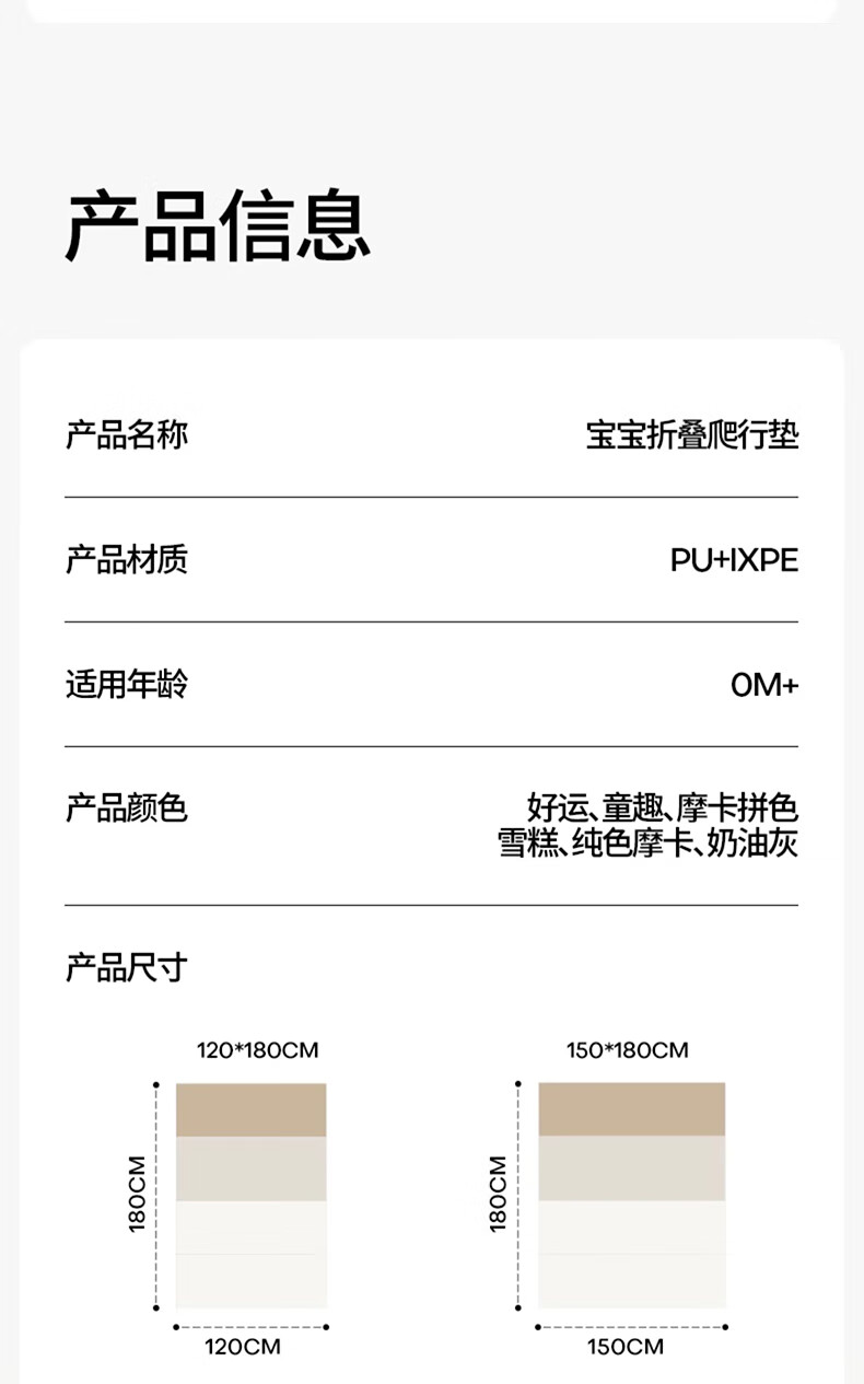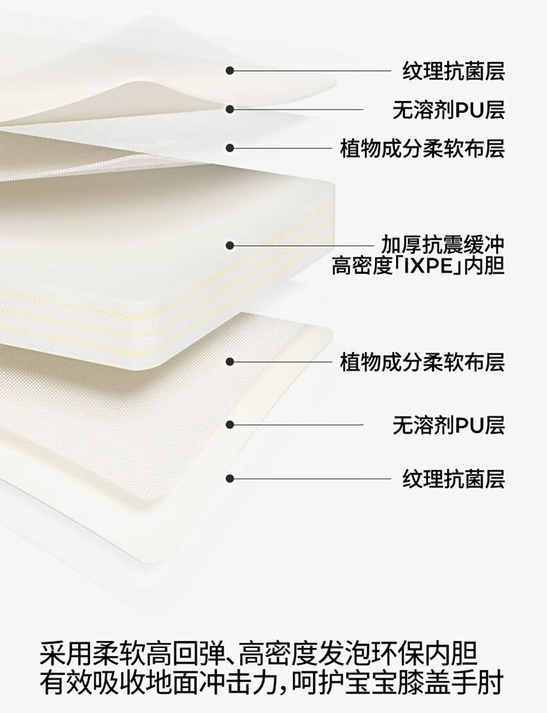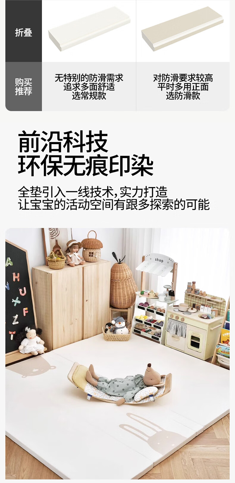 babypods宝宝爬爬垫IXPE婴儿爬行垫可折叠加厚无毒无味抗菌家用游戏地垫 奶油灰【高端IXPE内芯】 尺寸可定制【详情咨询客服】