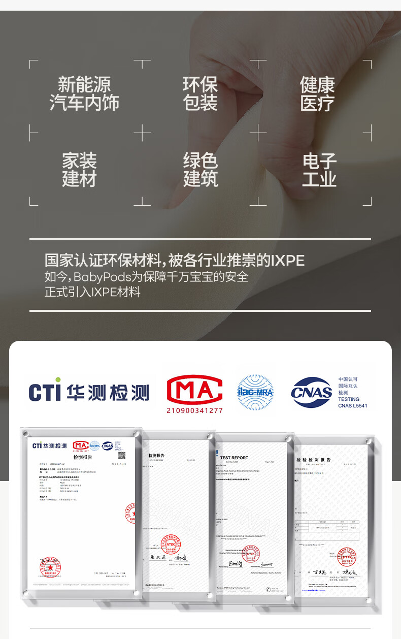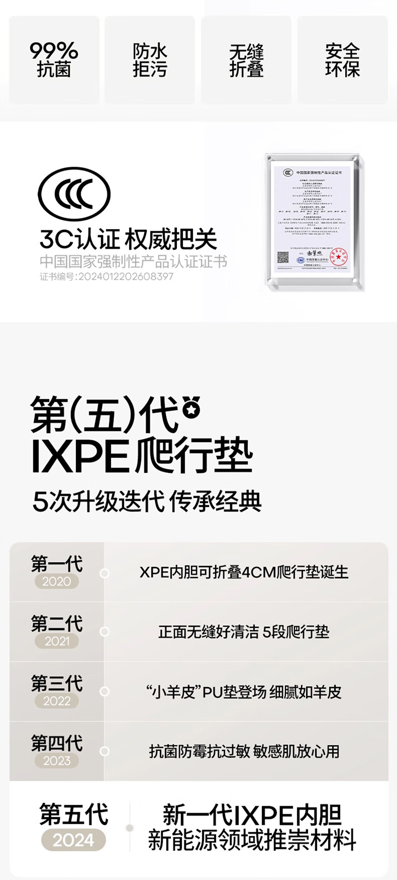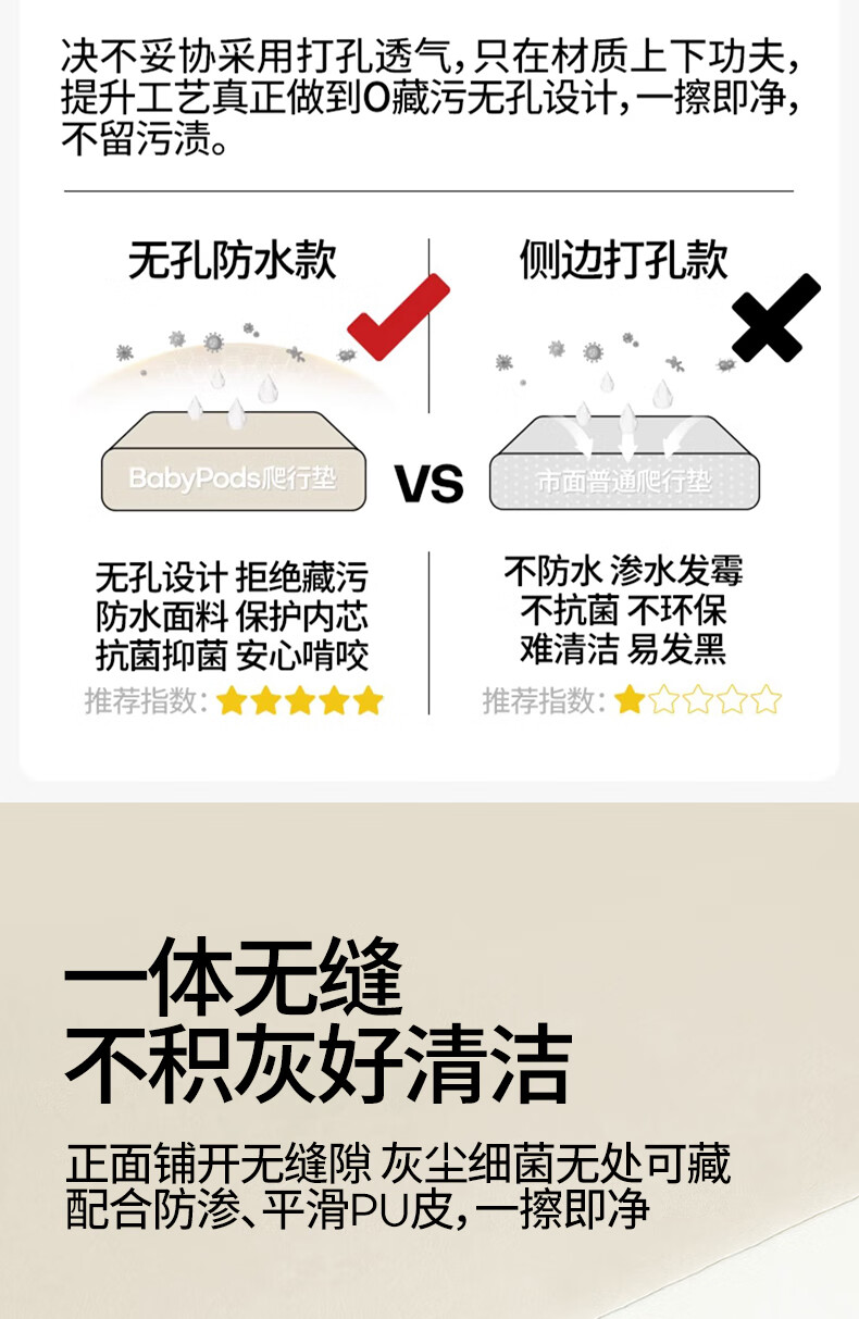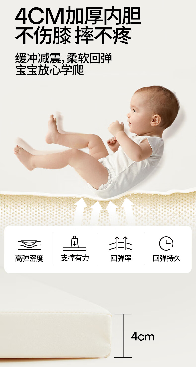 babypods宝宝爬爬垫IXPE婴儿爬行垫可折叠加厚无毒无味抗菌家用游戏地垫 奶油灰【高端IXPE内芯】 尺寸可定制【详情咨询客服】