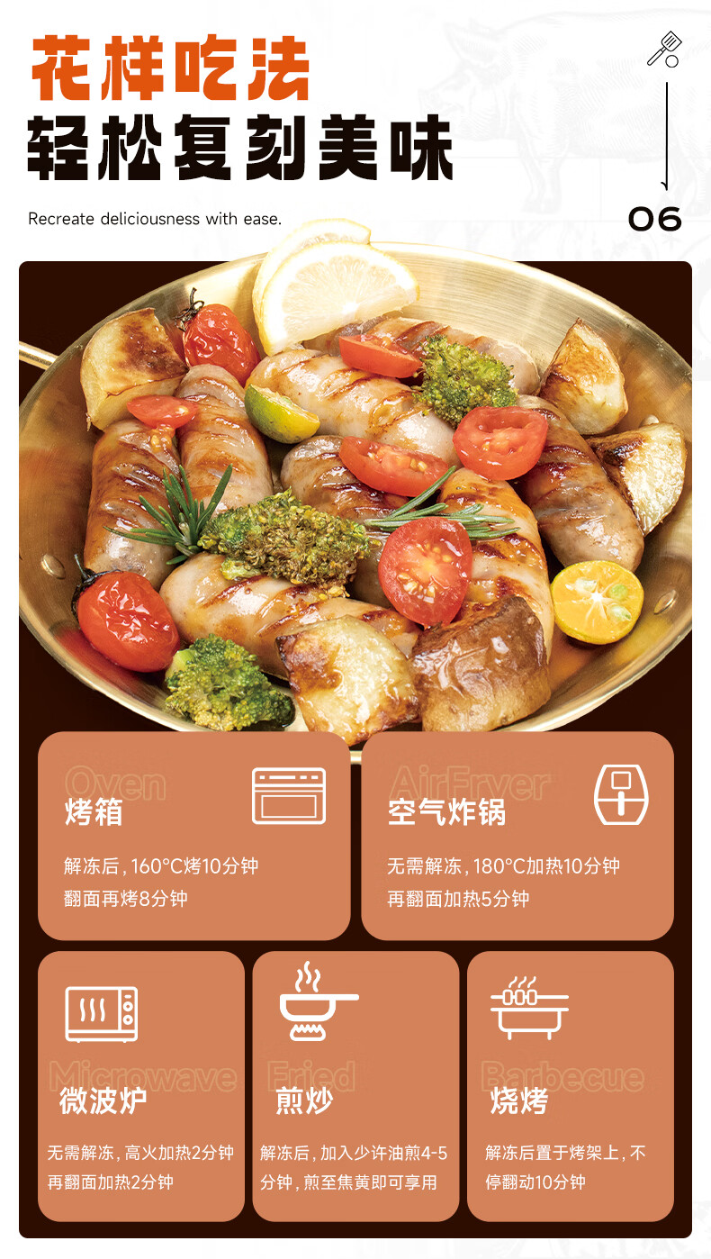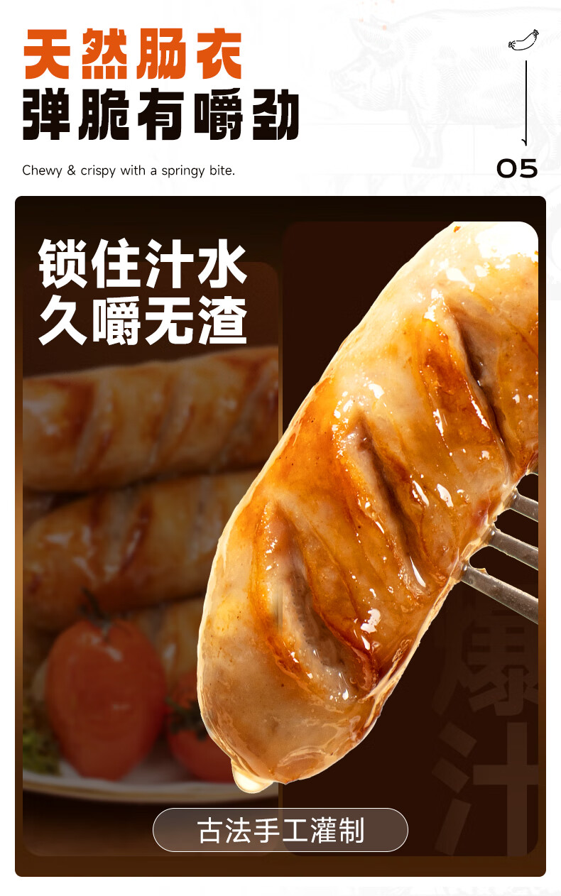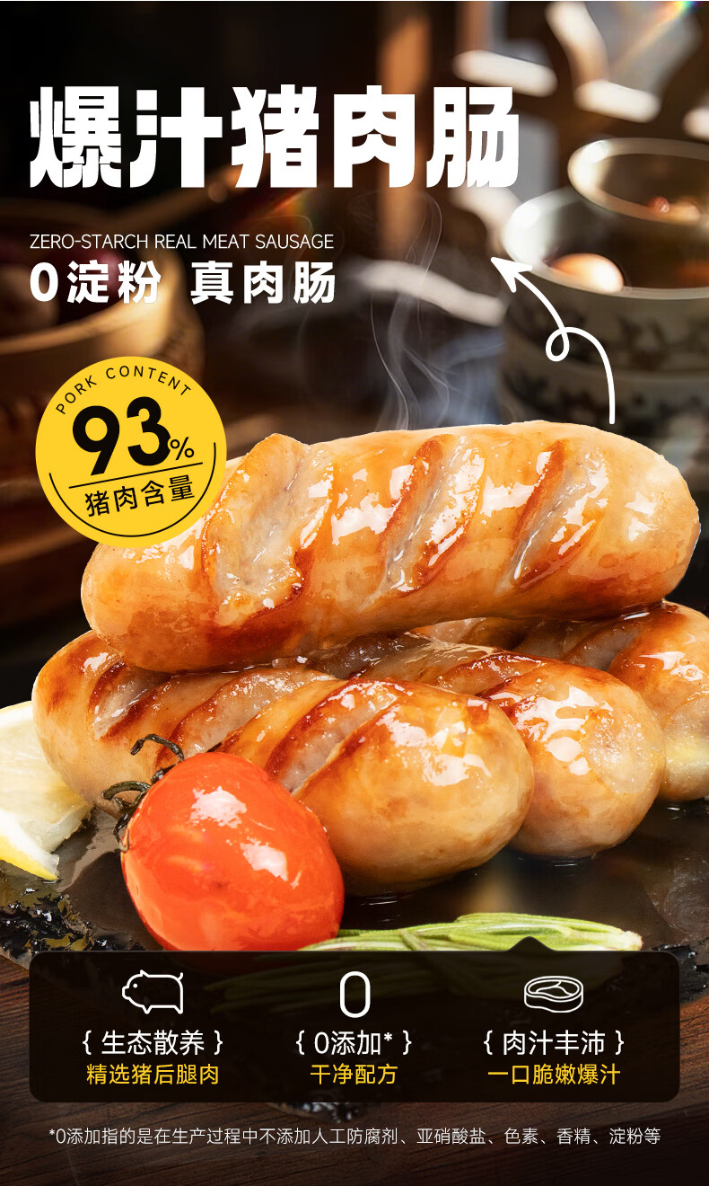 源之香爆汁猪肉肠500g/10根 原味 93%纯猪肉烤肠火山石烤肠肉肠热狗香肠