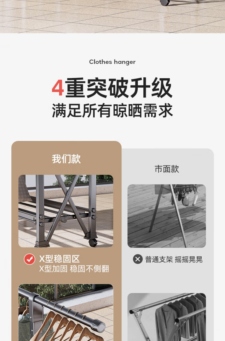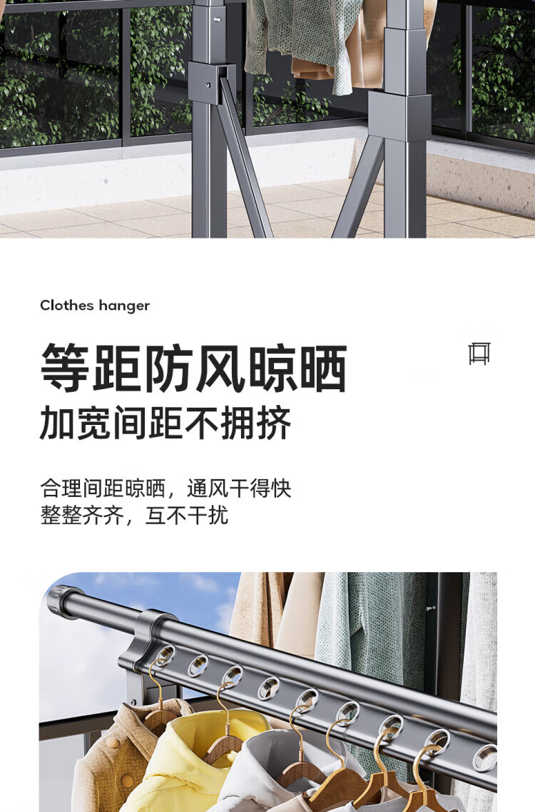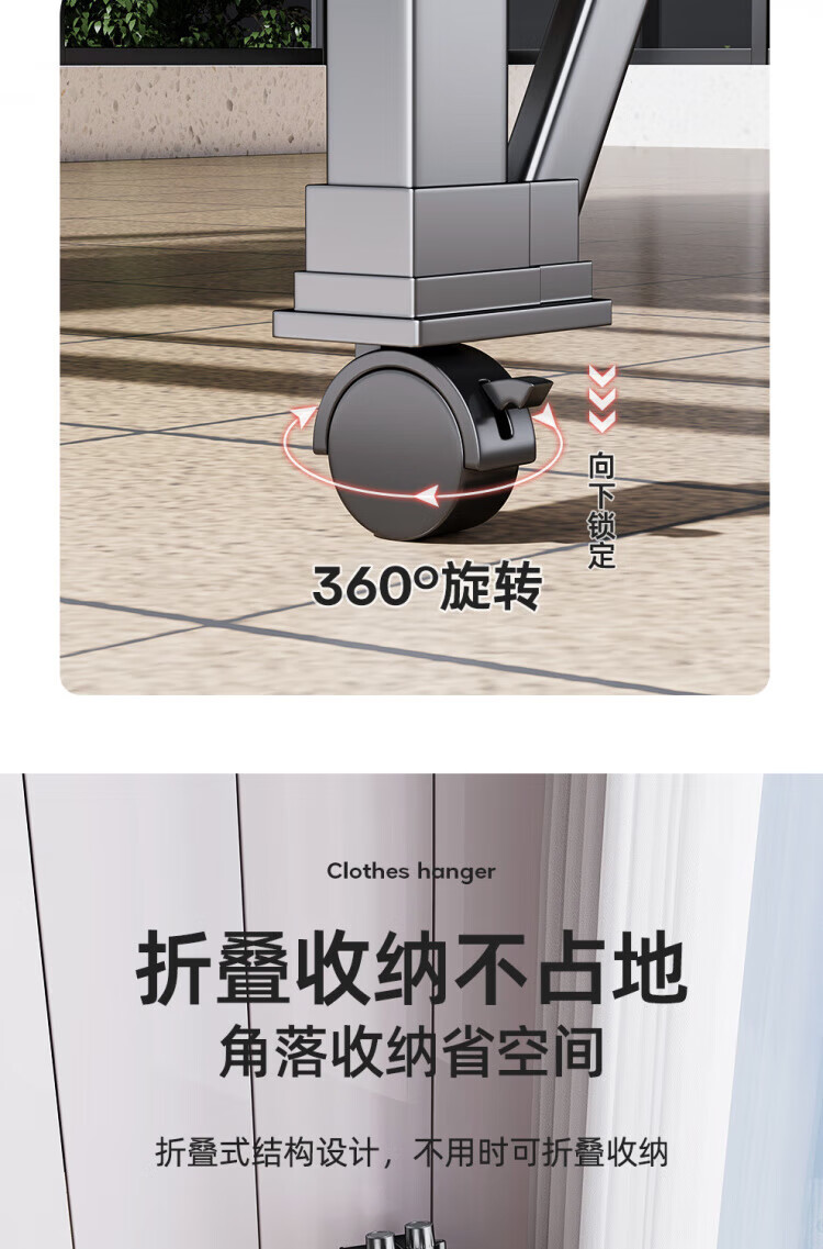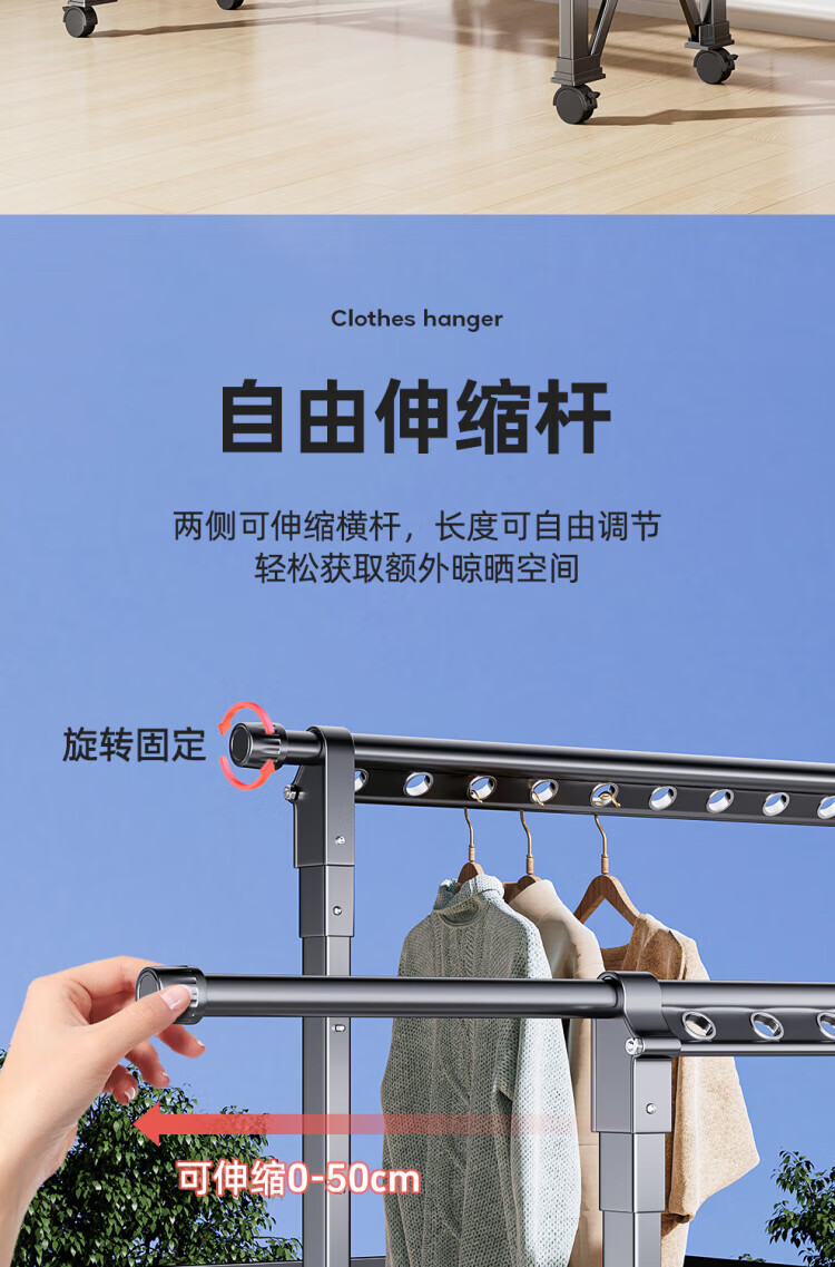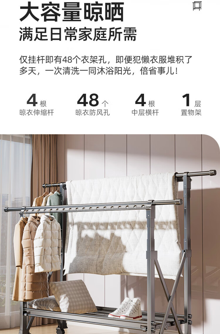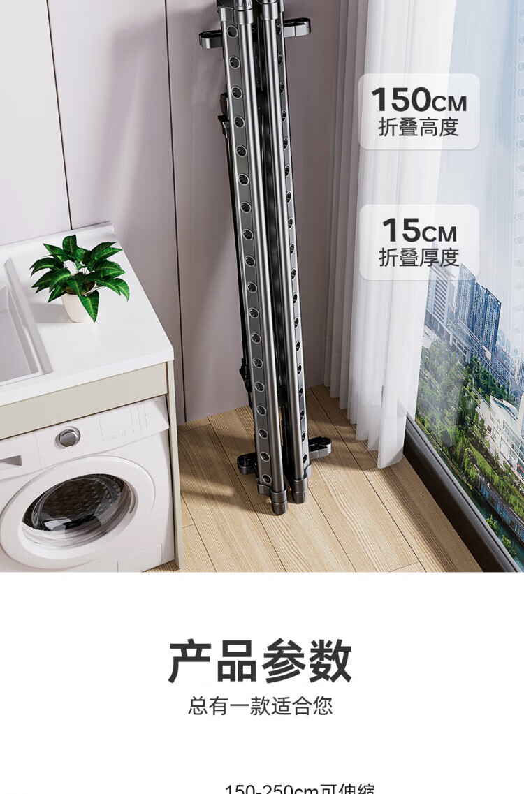 WCZ德国升降晾衣架阳台落地折叠家用室外伸缩凉衣杆户外挂衣服晒被子 枪灰色小号1.2-2.1米+升降4档调节+万向轮