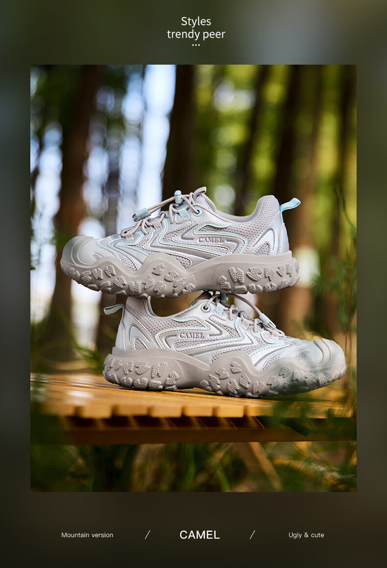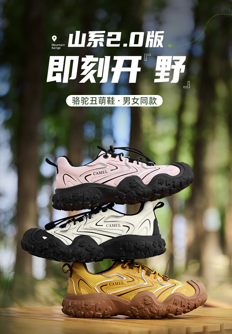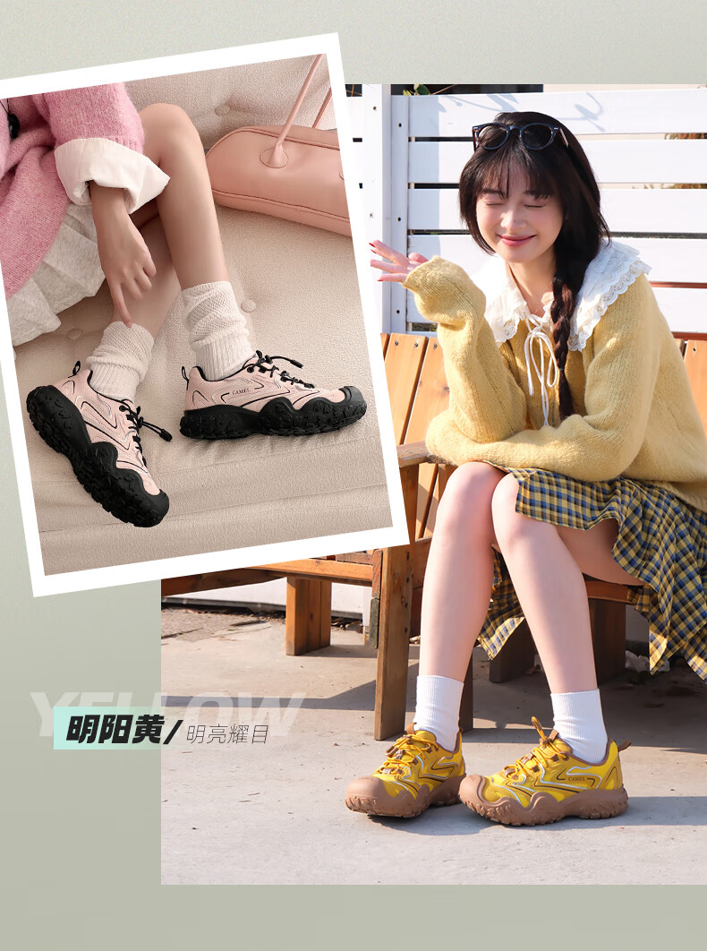 骆驼(CAMEL)丑萌2.0 山系版户外休闲鞋女厚底登山鞋 L25S469009 黄/银 38