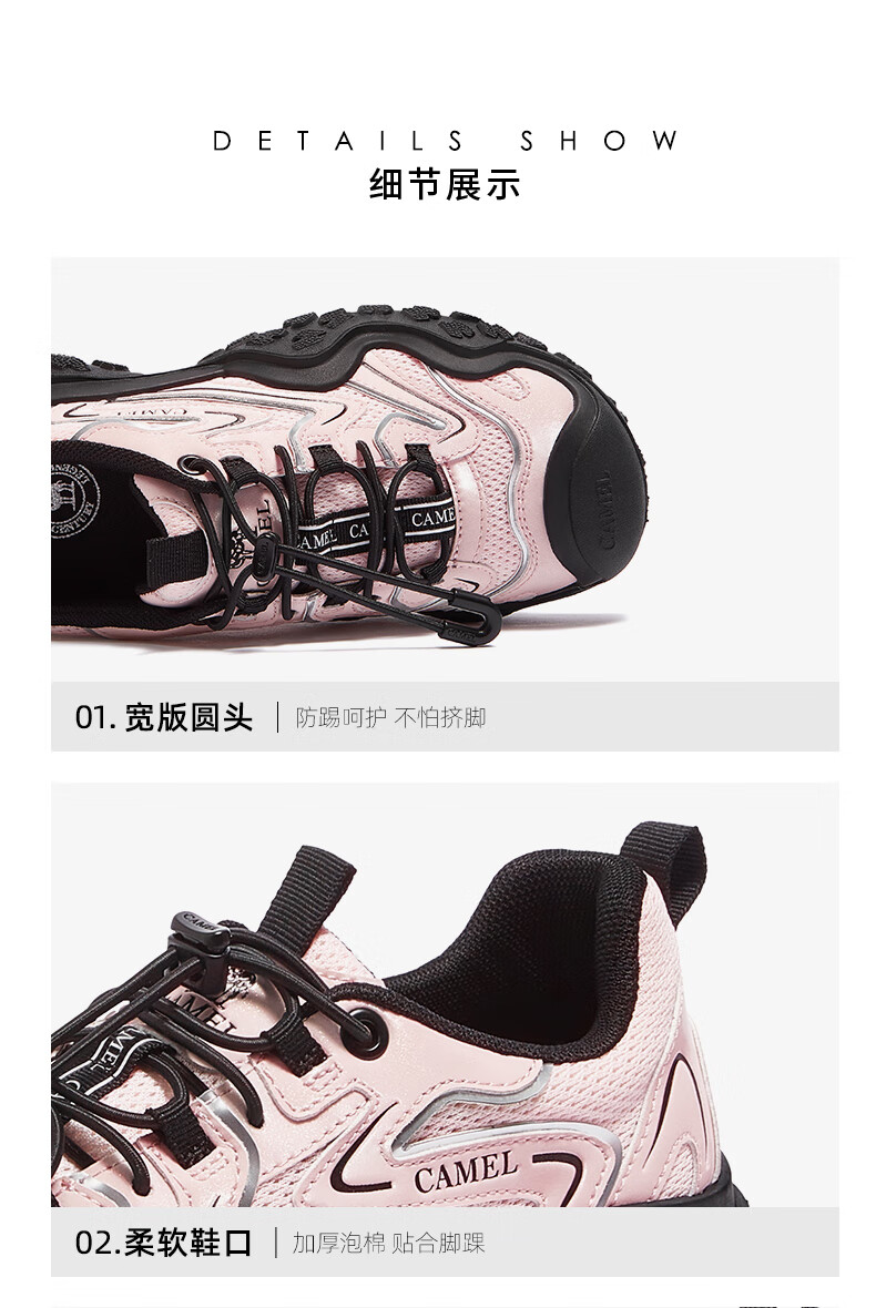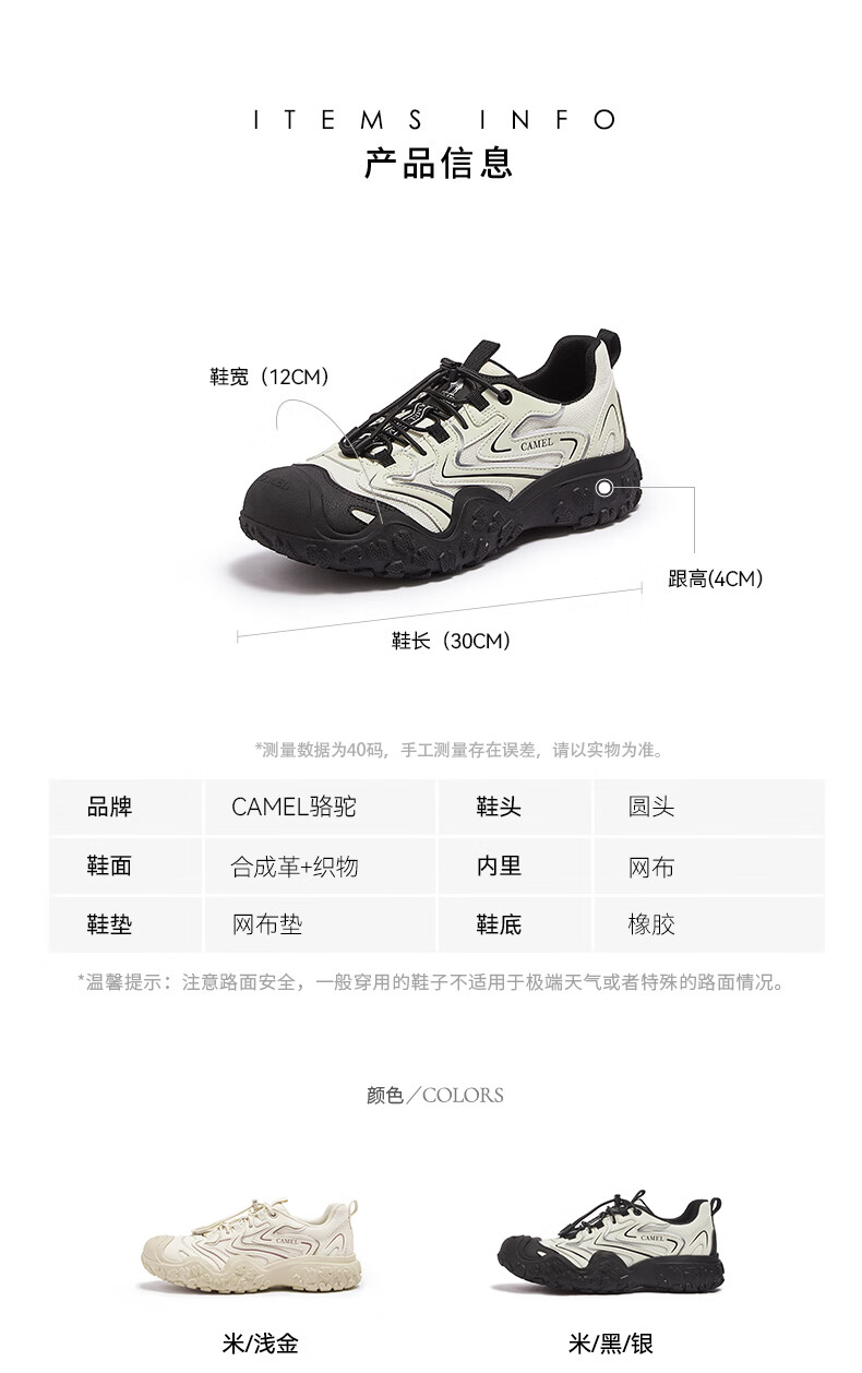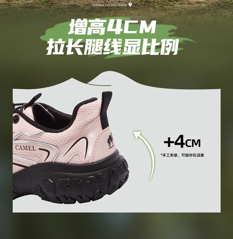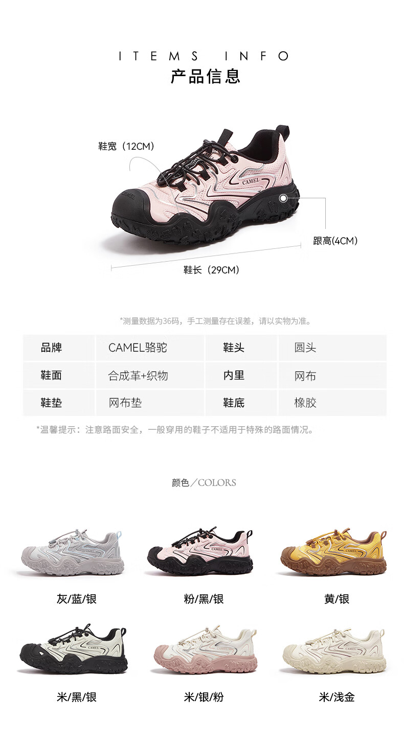 骆驼(CAMEL)丑萌2.0 山系版户外休闲鞋女厚底登山鞋 L25S469009 黄/银 38