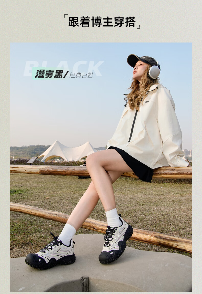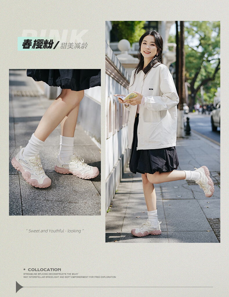 他她厚底休闲老爹鞋女鞋机能加绒休闲运动鞋GEA01CM4黑/白(绒里) 39