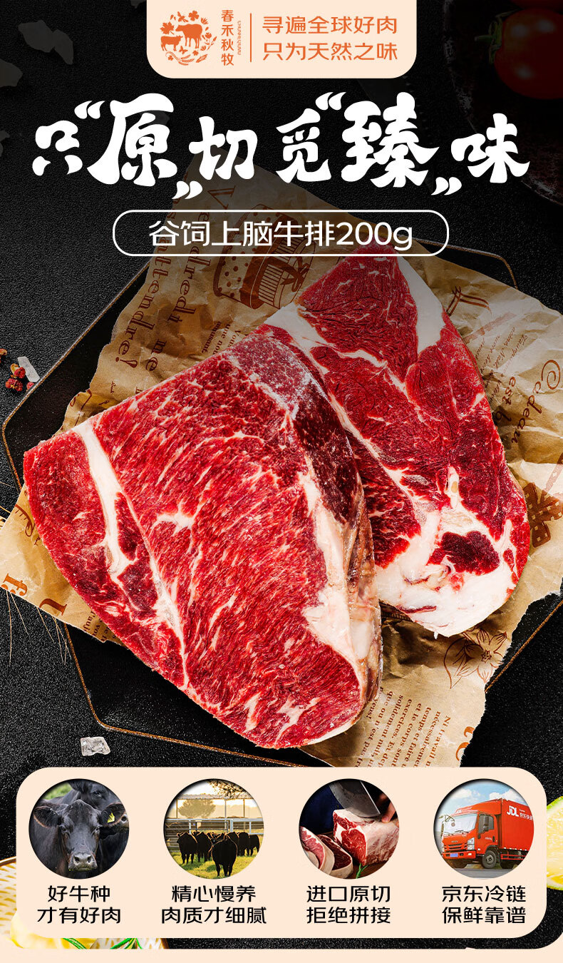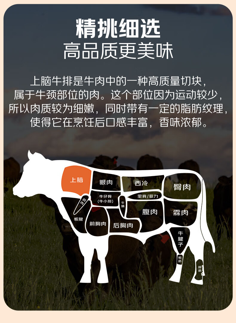春禾秋牧 进口安格斯原切上脑牛排200g 牛肉生鲜 风味浓郁 慢炖煎烤炒