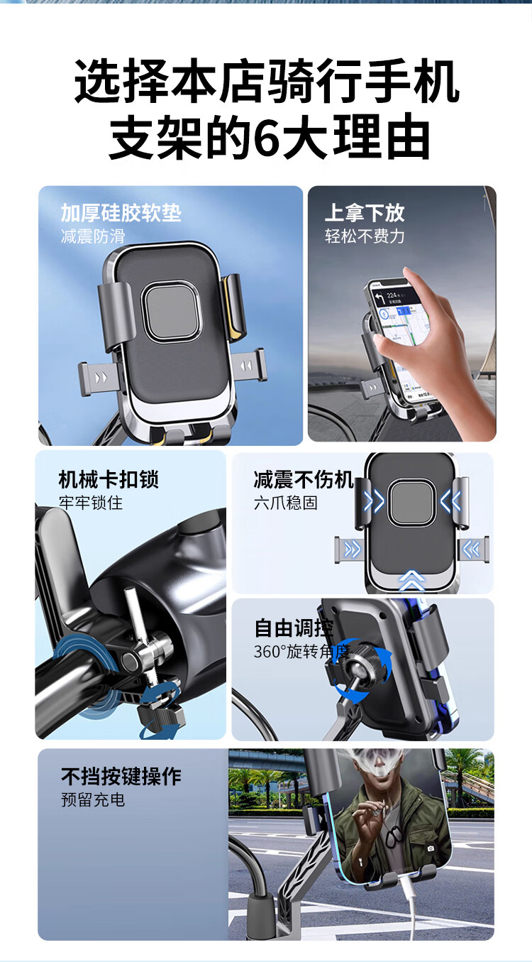 BZBC电动车手机架摩托车外卖骑手快递手机支架踏板电瓶车导航支架骑行装备通用
