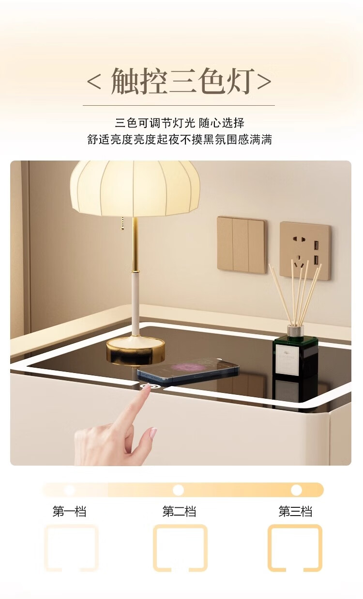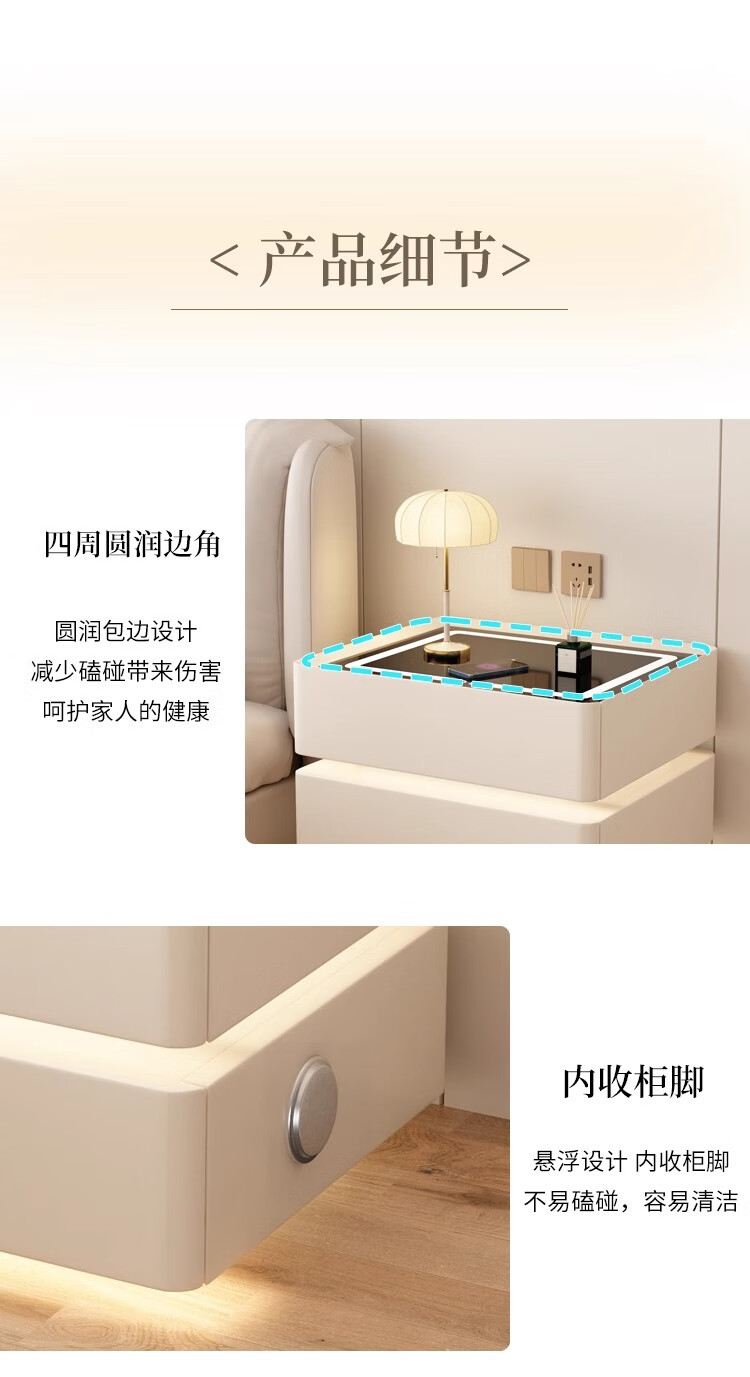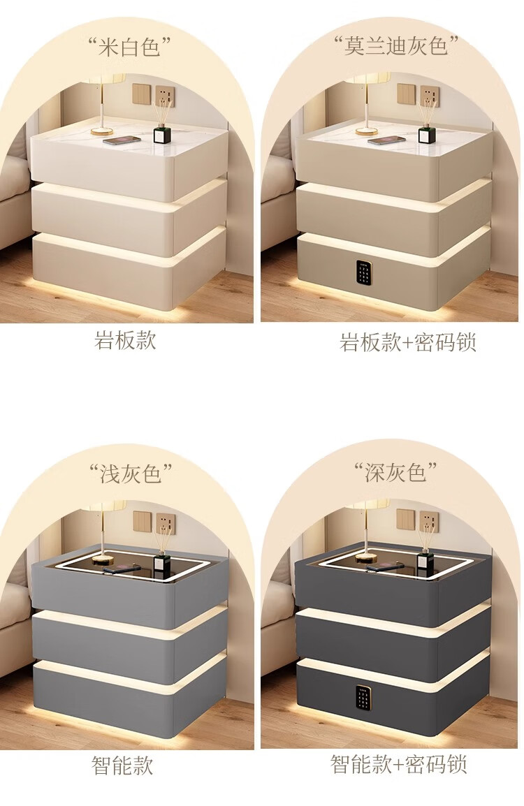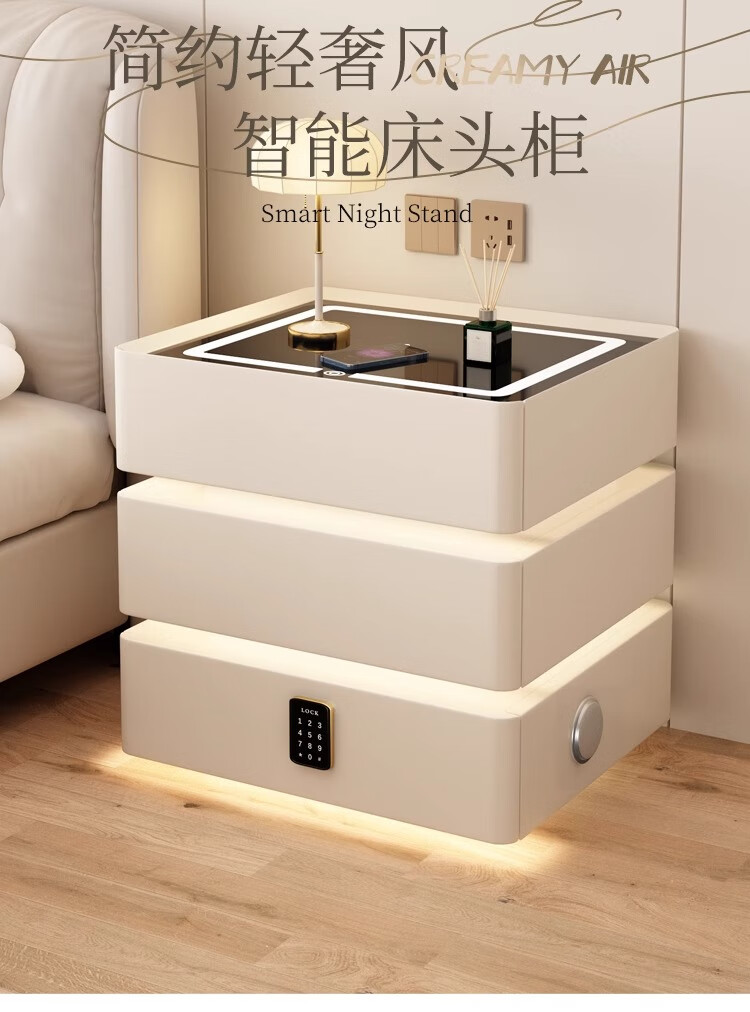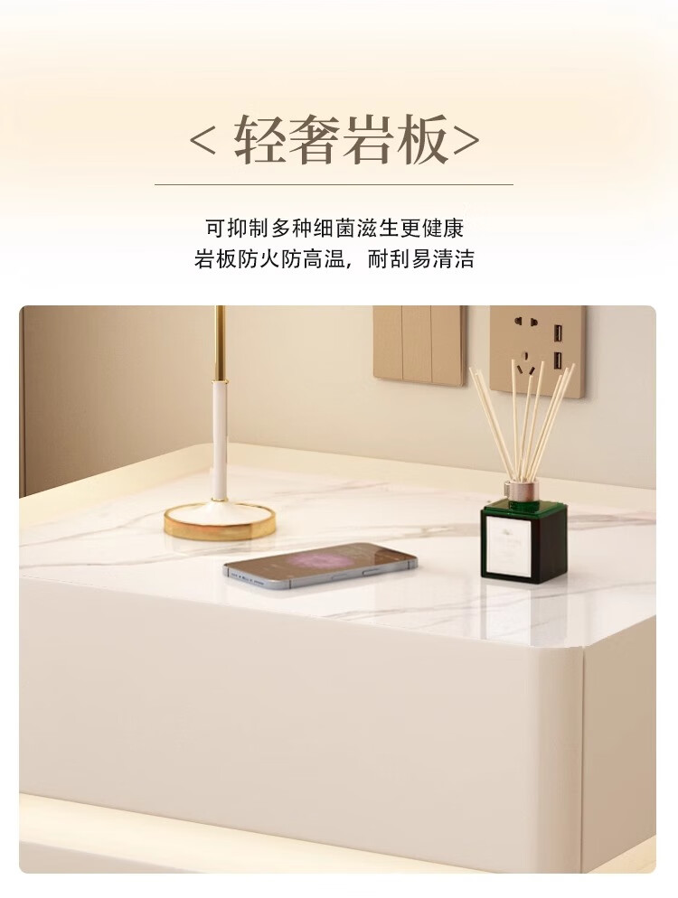 大海边智能床头柜实木带灯2025新款卧室轻奢高级床边小型柜子简约收纳柜 【岩板台面+整装发货】奶白 宽40*深40高62cm+悬浮感应灯