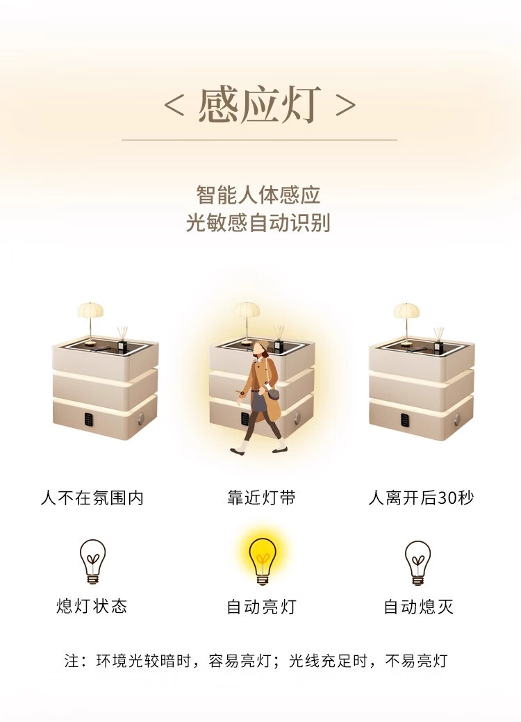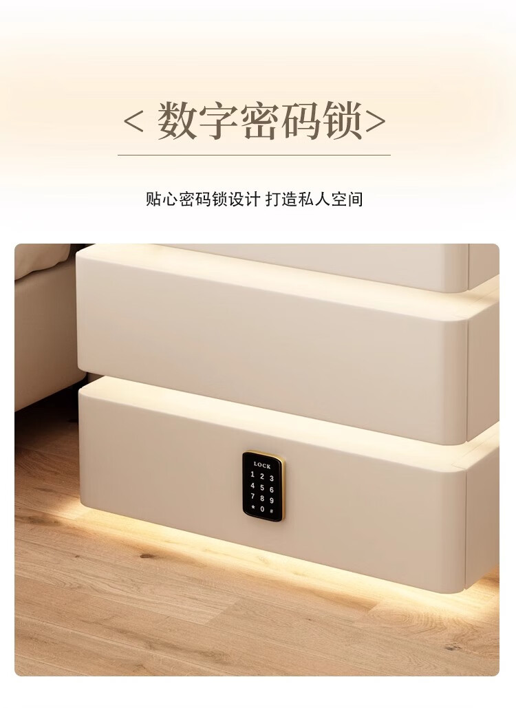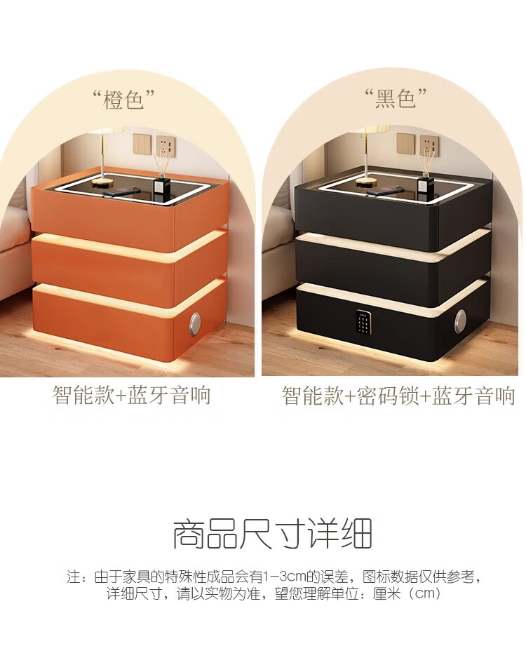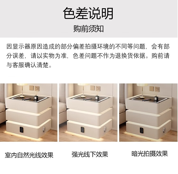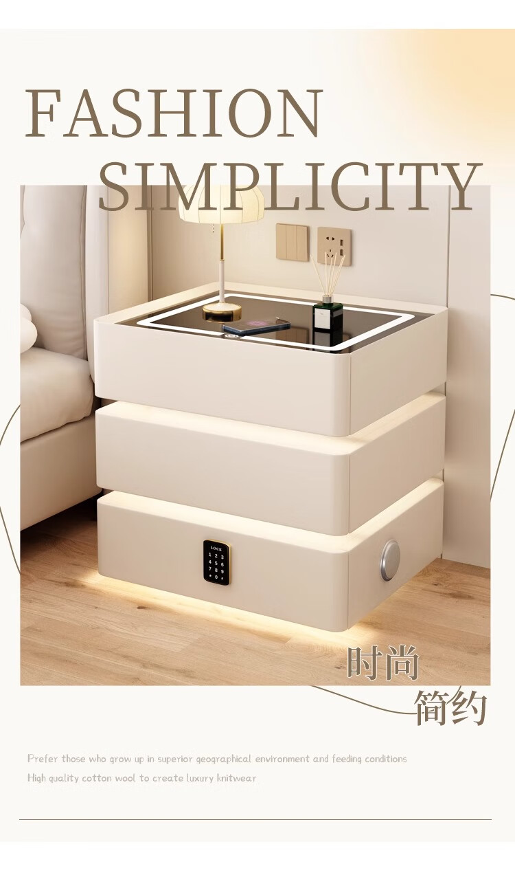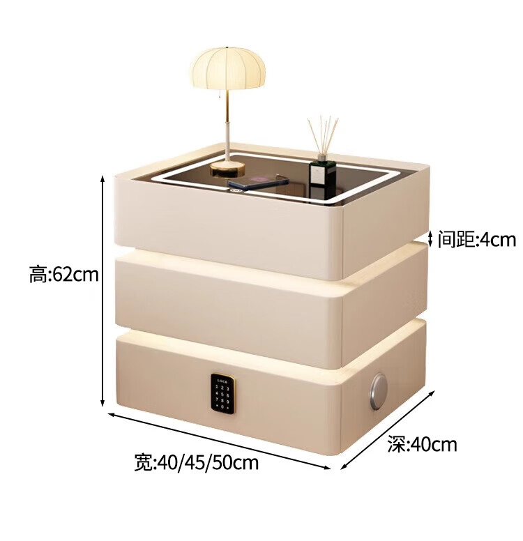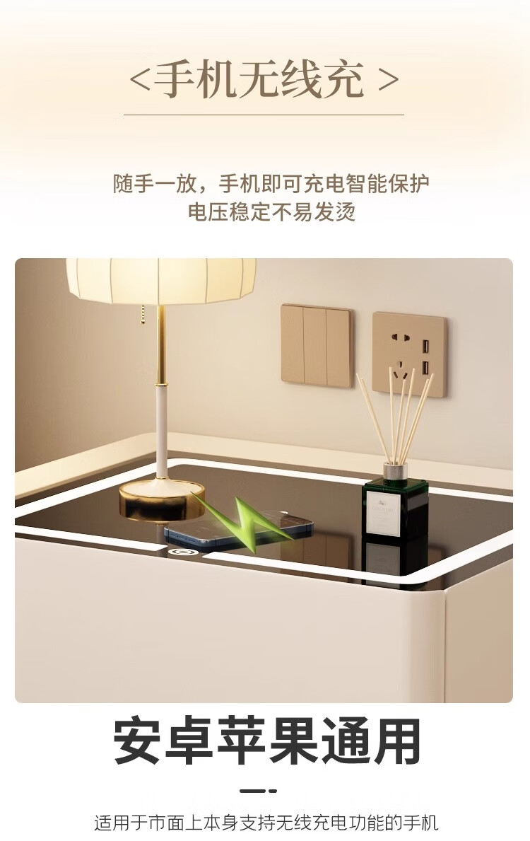大海边智能床头柜实木带灯2025新款卧室轻奢高级床边小型柜子简约收纳柜 【岩板台面+整装发货】奶白 宽40*深40高62cm+悬浮感应灯