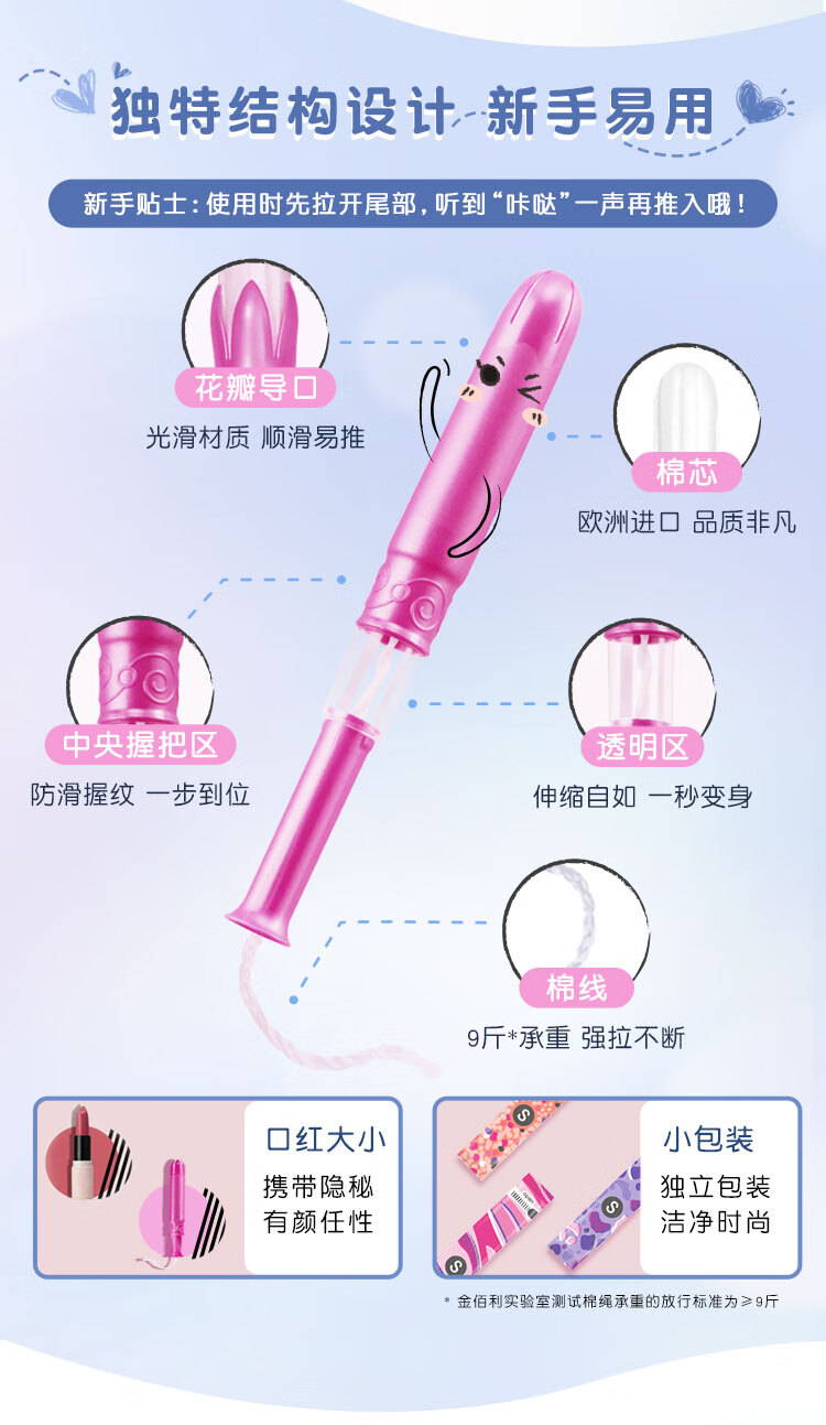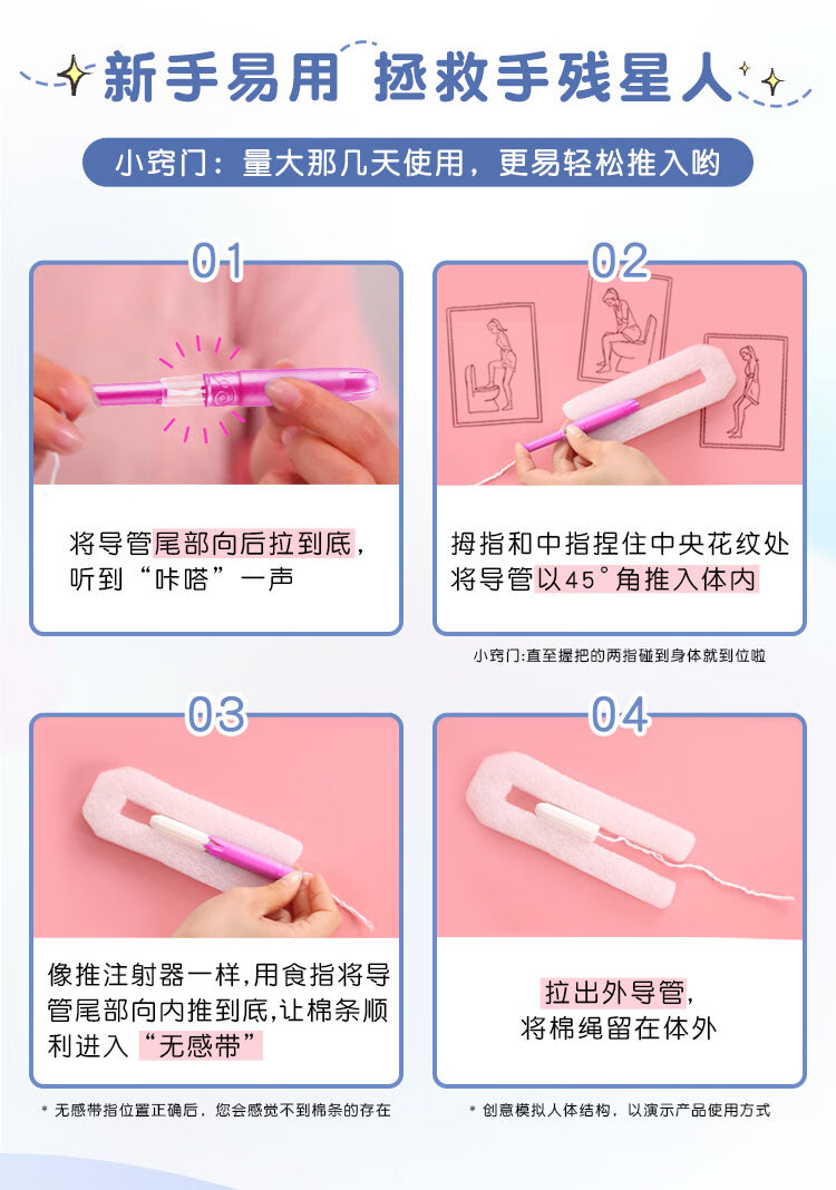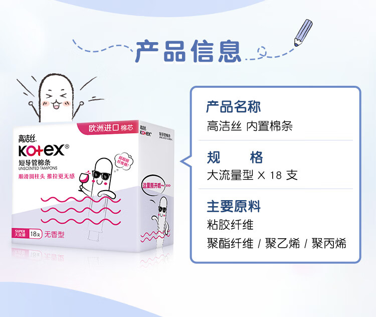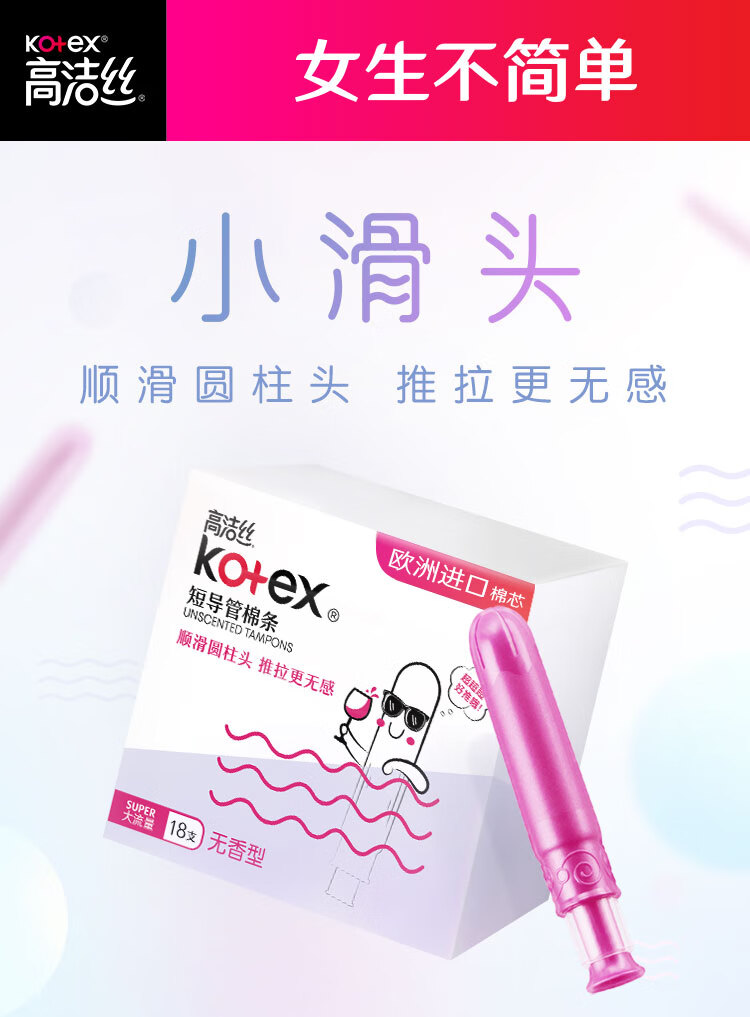 高洁丝口袋导管卫生棉条易推大流量18支纤细棉芯导管京东自营官方旗舰