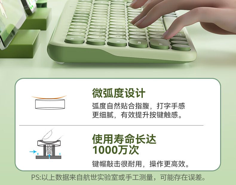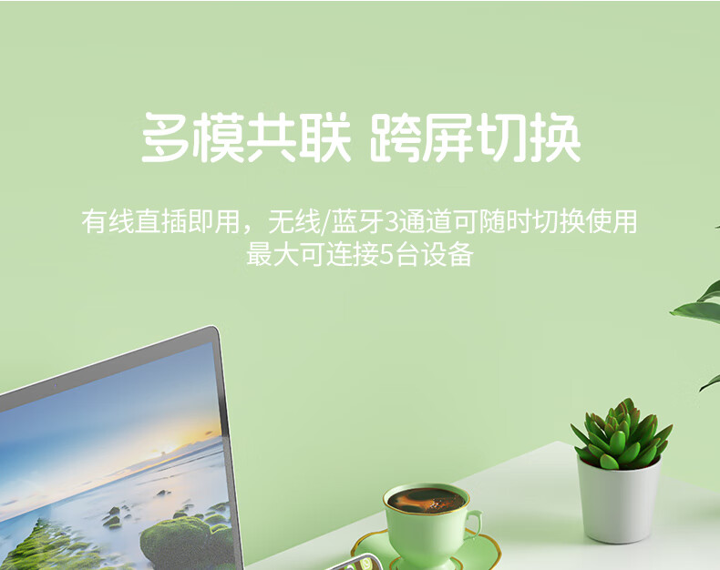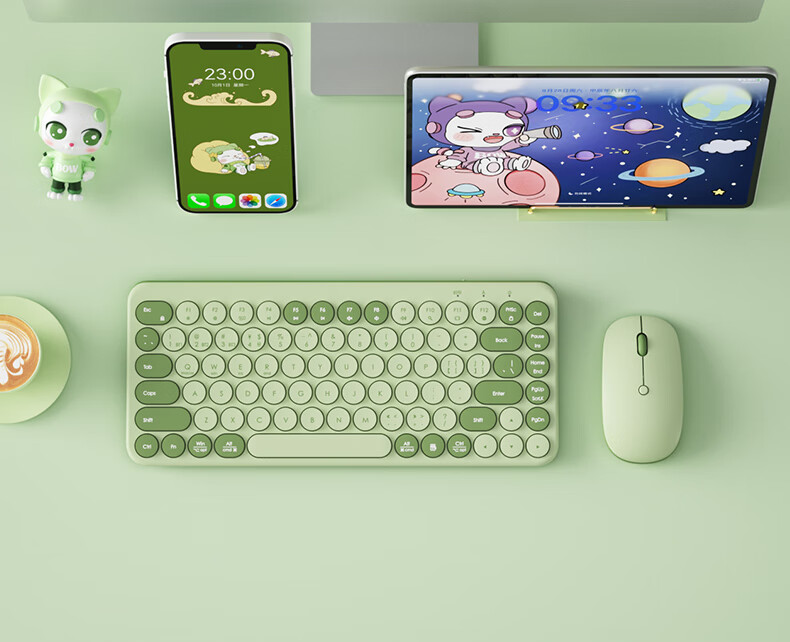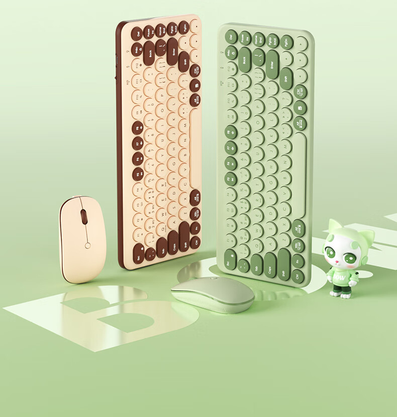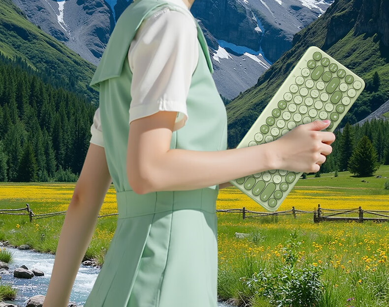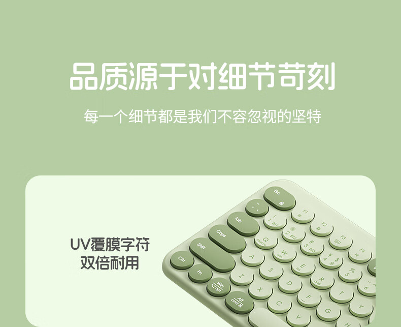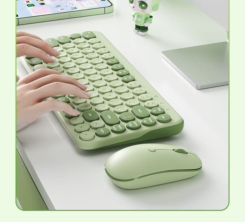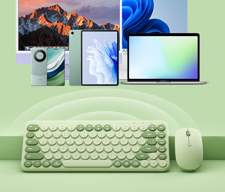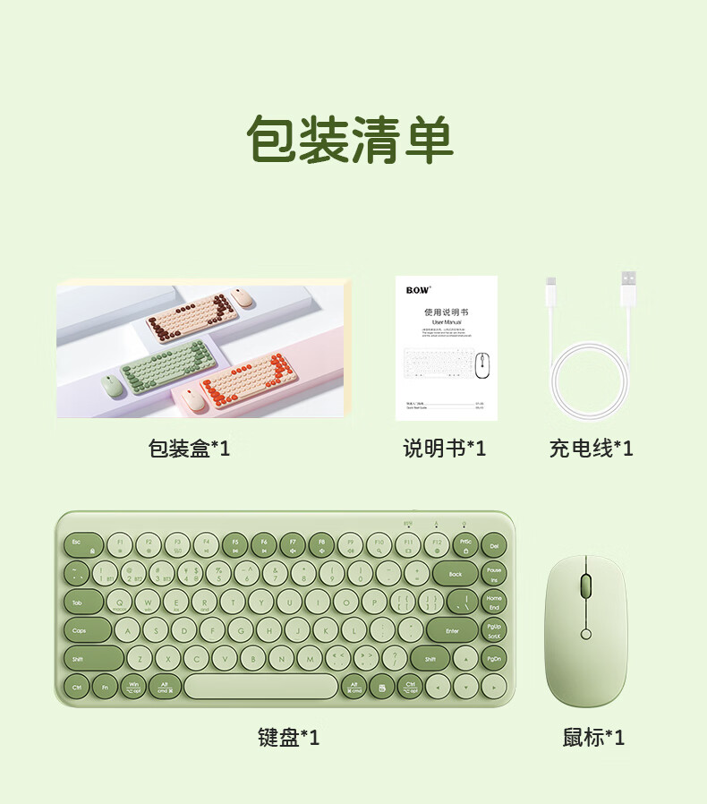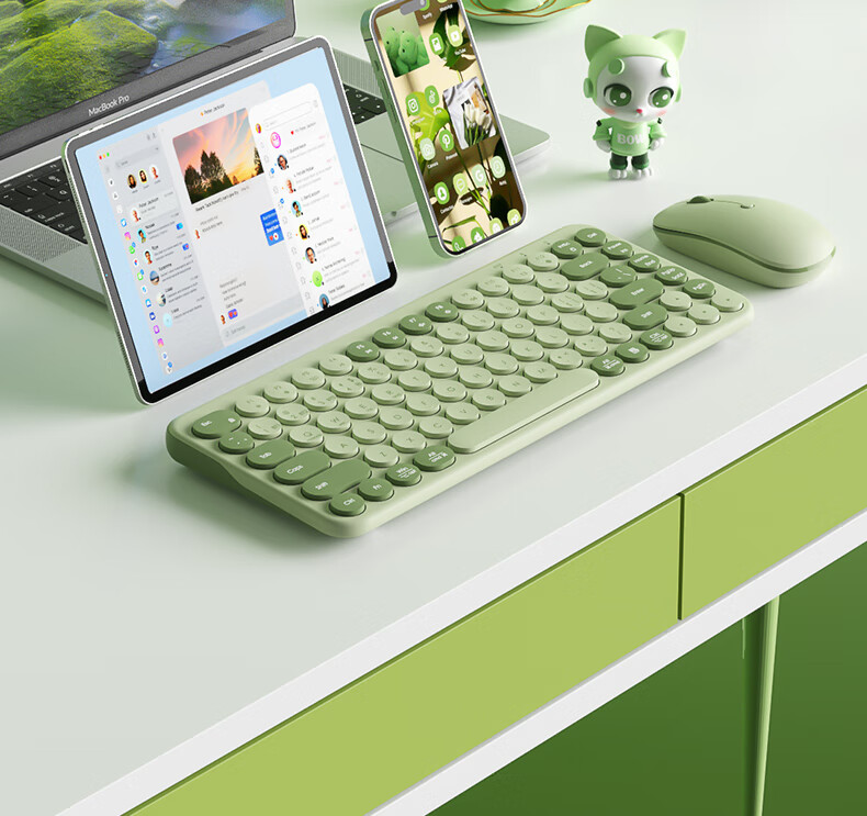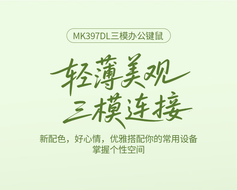 B.O.W航世 MK397DL无线蓝牙双模可充电键盘鼠标套装 静音轻薄ipad平板手机办公笔记本台式通用 清新绿