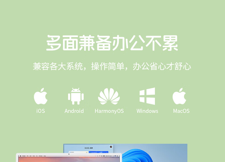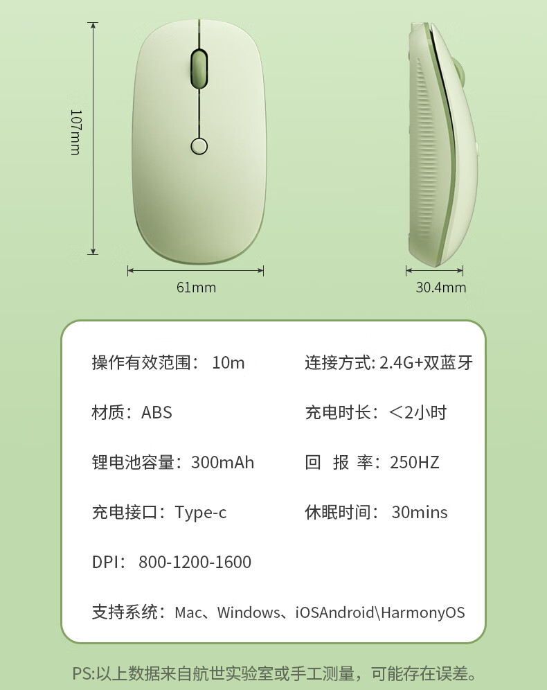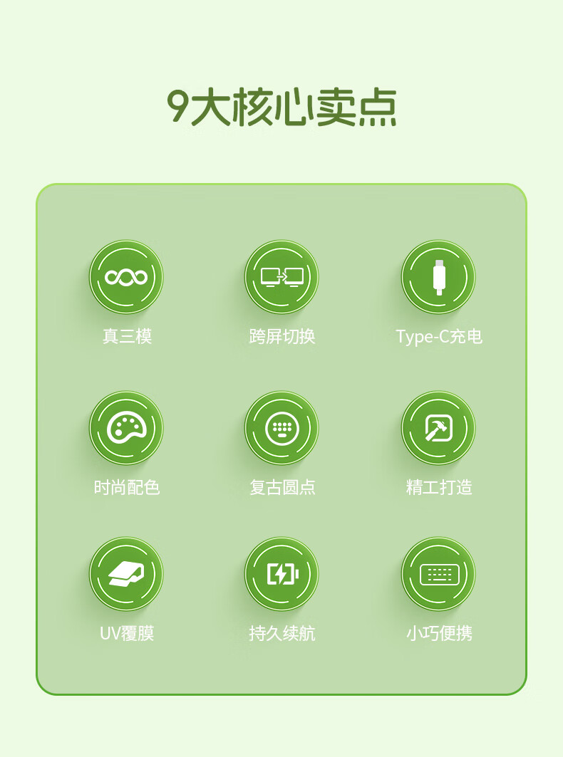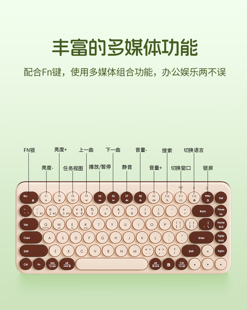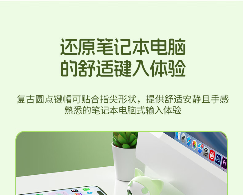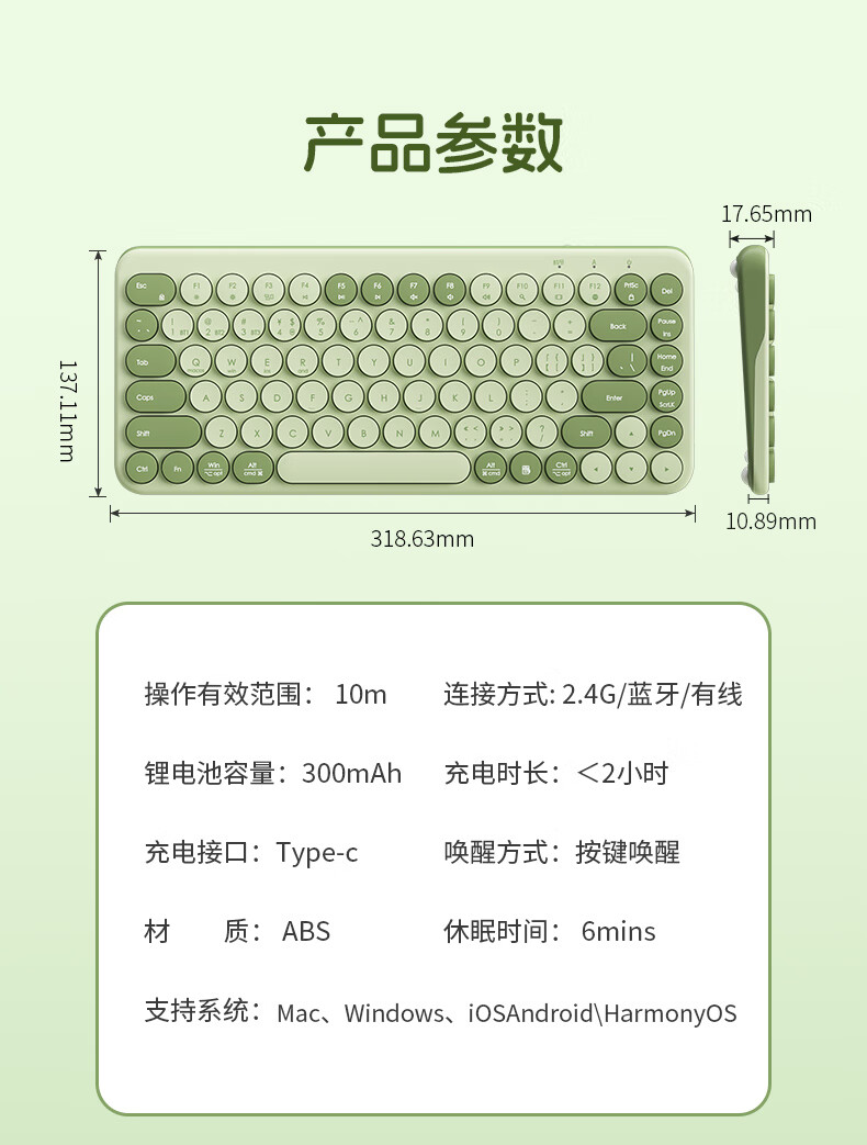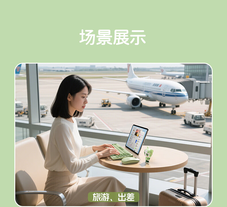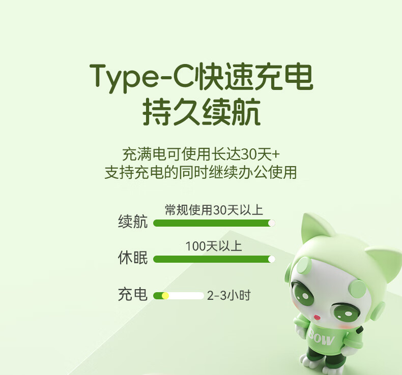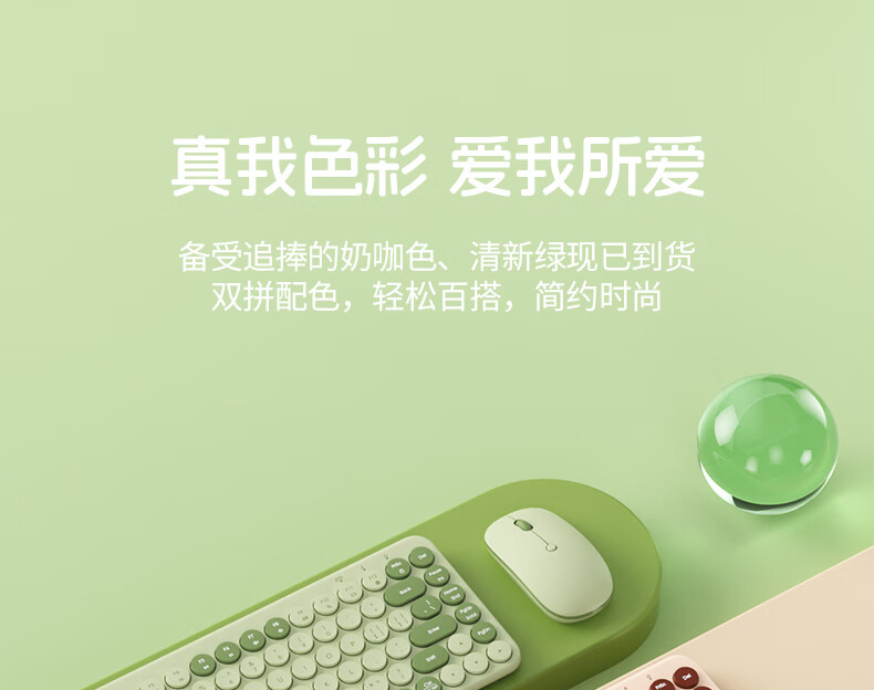 B.O.W航世 MK397DL无线蓝牙双模可充电键盘鼠标套装 静音轻薄ipad平板手机办公笔记本台式通用 清新绿