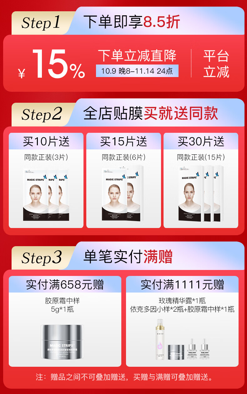 魔贴世家抗皱V脸面膜 抗皱紧致淡化法令纹嘴角纹 一贴提拉紧致面部松弛肌 水氧凝胶抗皱认证专利面膜5对装
