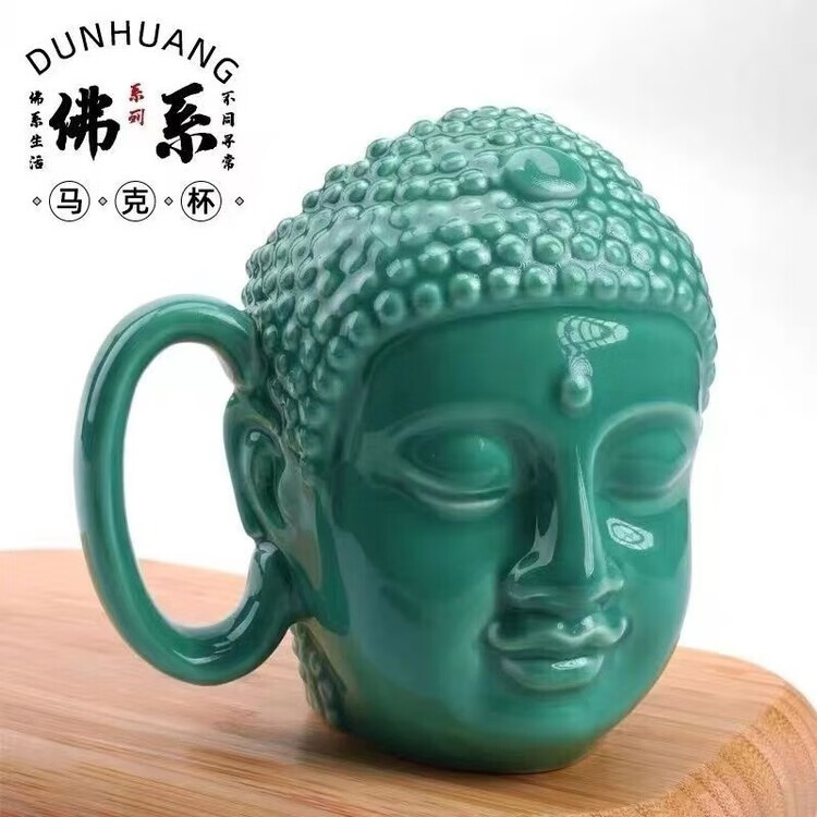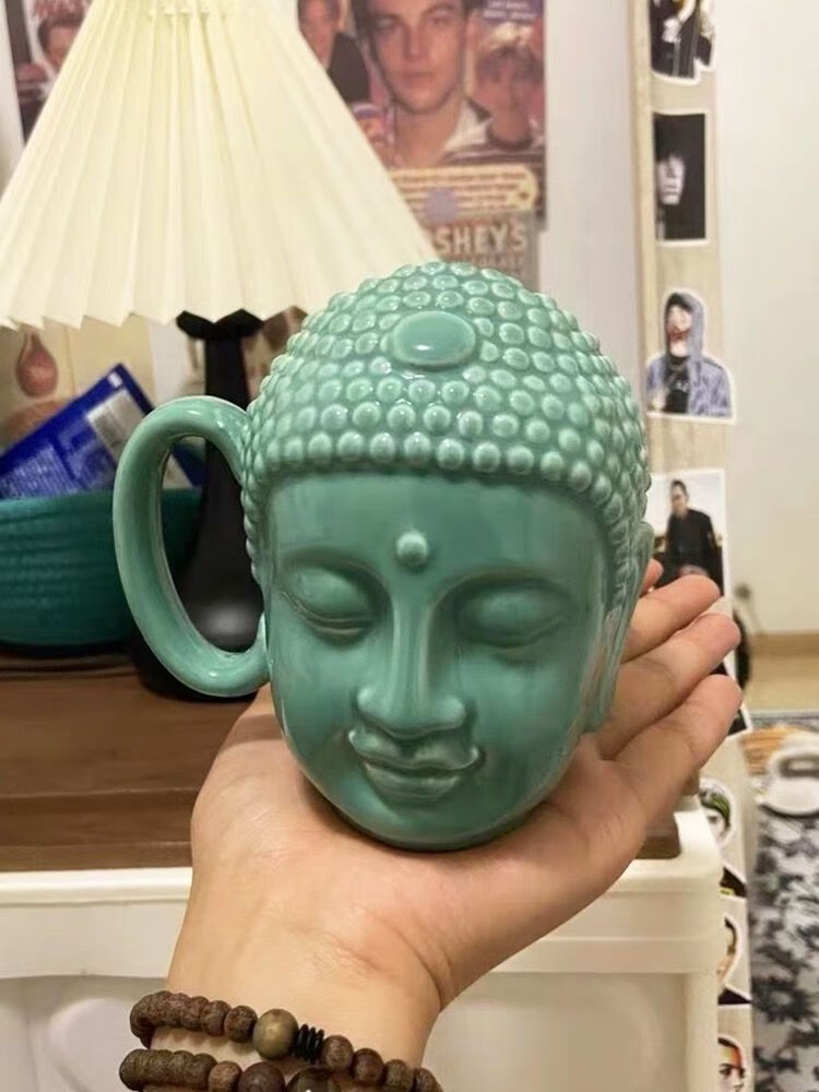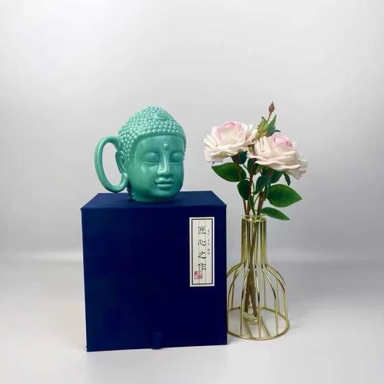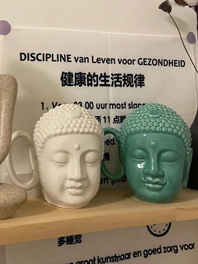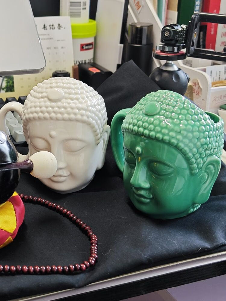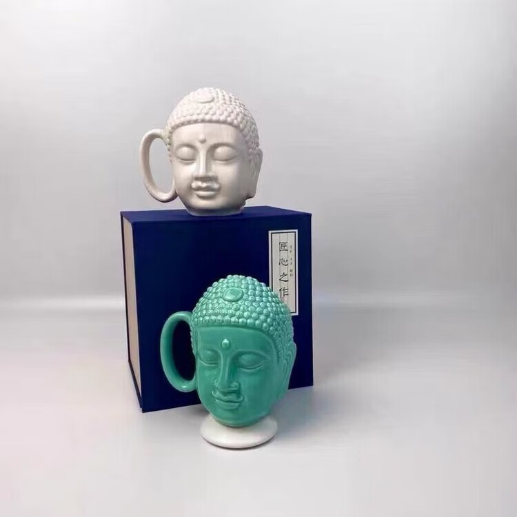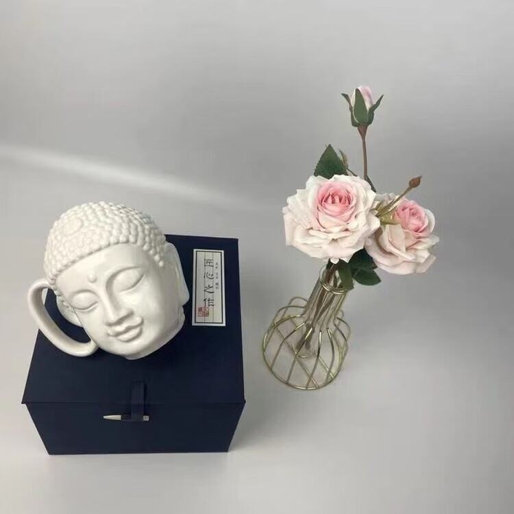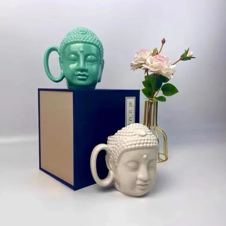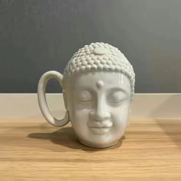 宰搂配我佛瓷杯网红我佛慈杯陶瓷马克杯日式佛头杯礼喝水杯大容 白玉色礼盒