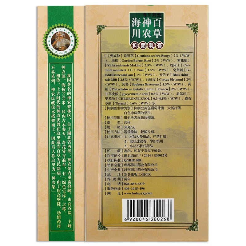 扶氏堂海川神农百草抑菌乳膏(原神农百草膏)30g用于所需皮肤的抑菌 2盒【送棉签】