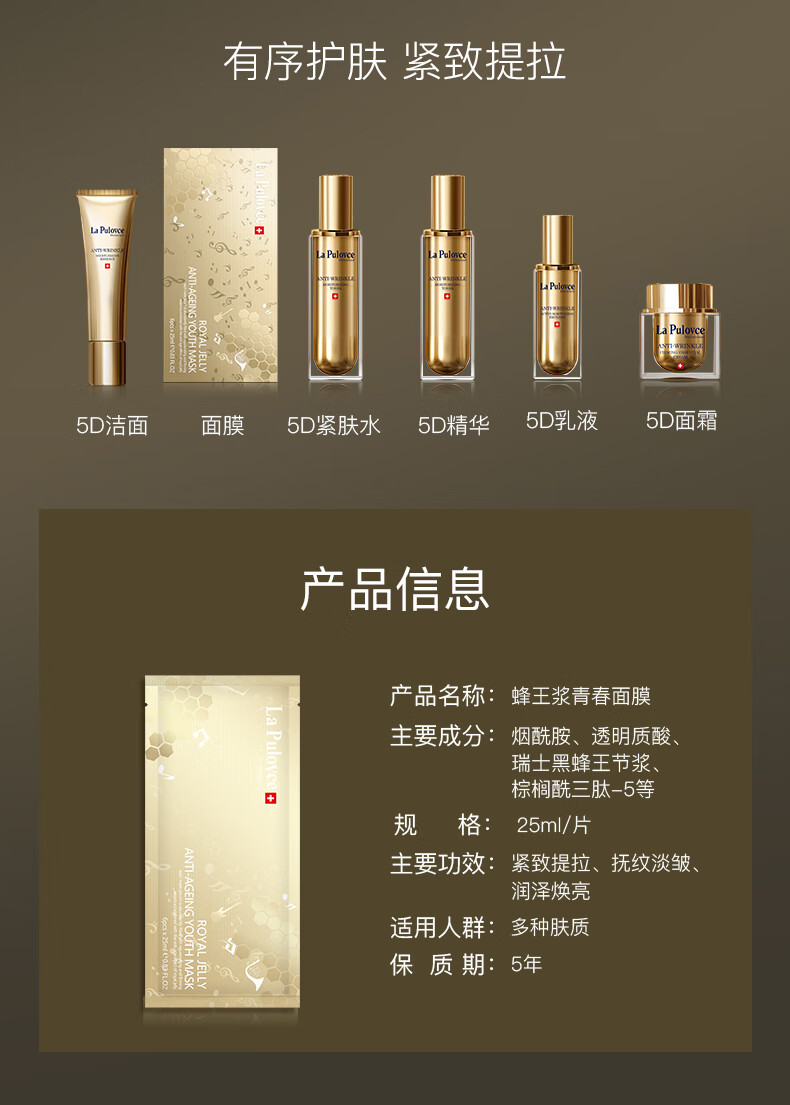LP LaPulovce【官旗正品】拉普瑞斯蜂王浆面膜v脸紧致嫩肤逆龄修护润养