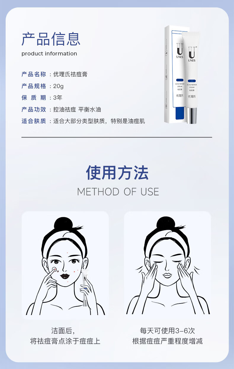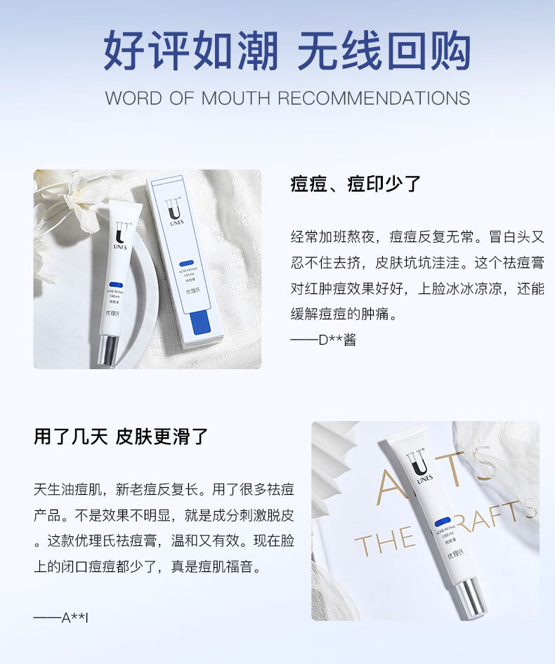 优理氏 祛痘膏青春痘淡化痘坑痘印改善粉刺调理水杨酸痘肌修护脸部净肤 【到手2支】祛痘膏20g