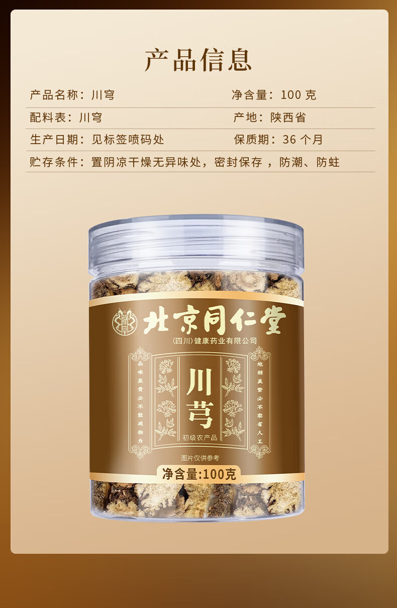 朕皇北京同仁堂川芎味浓川穹茶四物汤原料非中药材健康养生茶 【3盒装】见效装 100g/盒