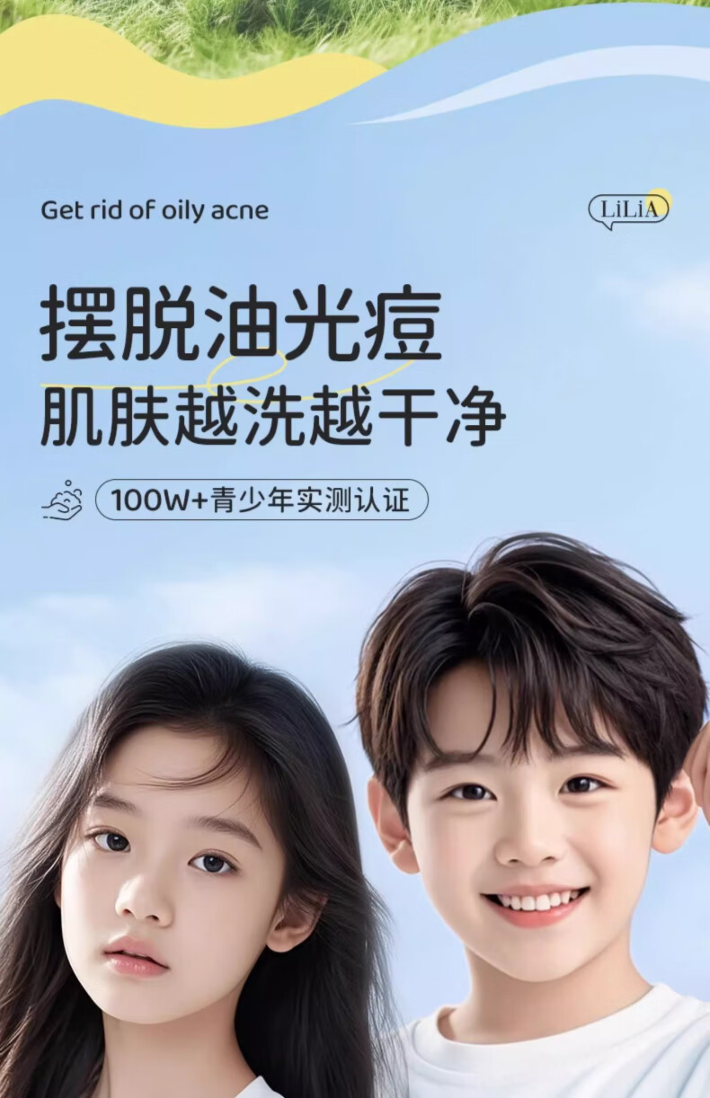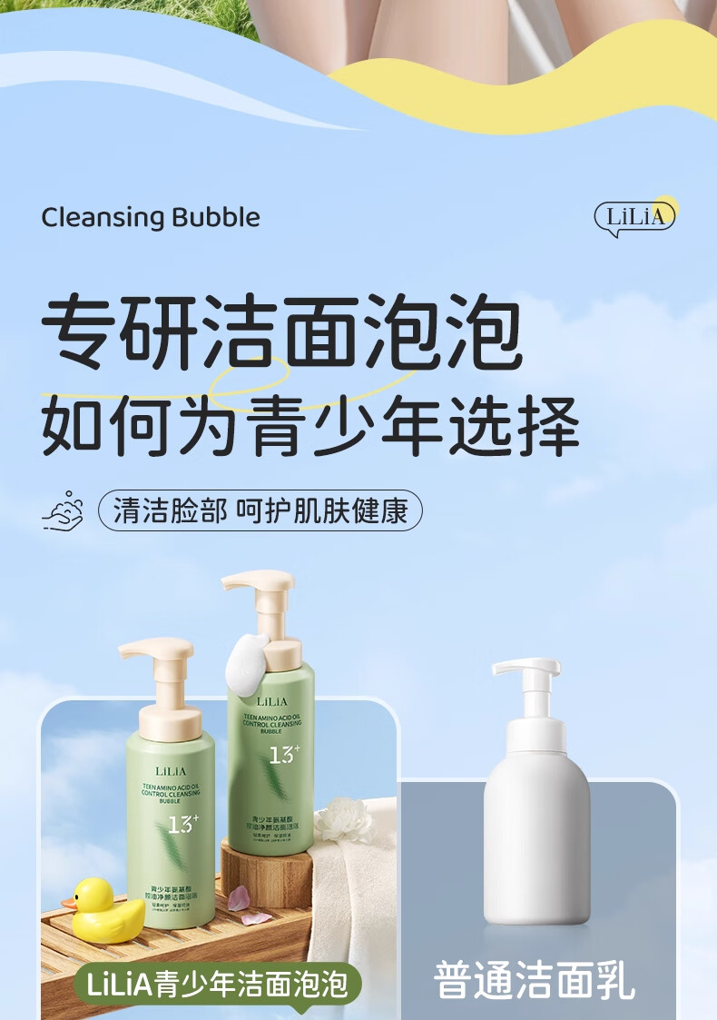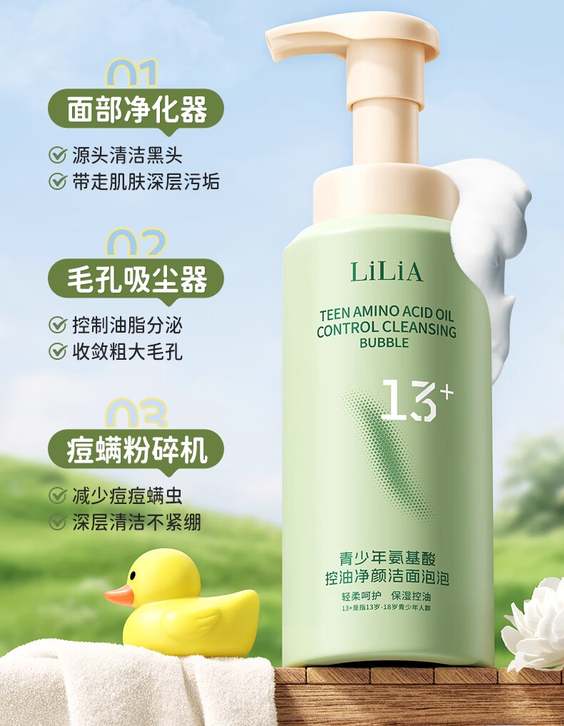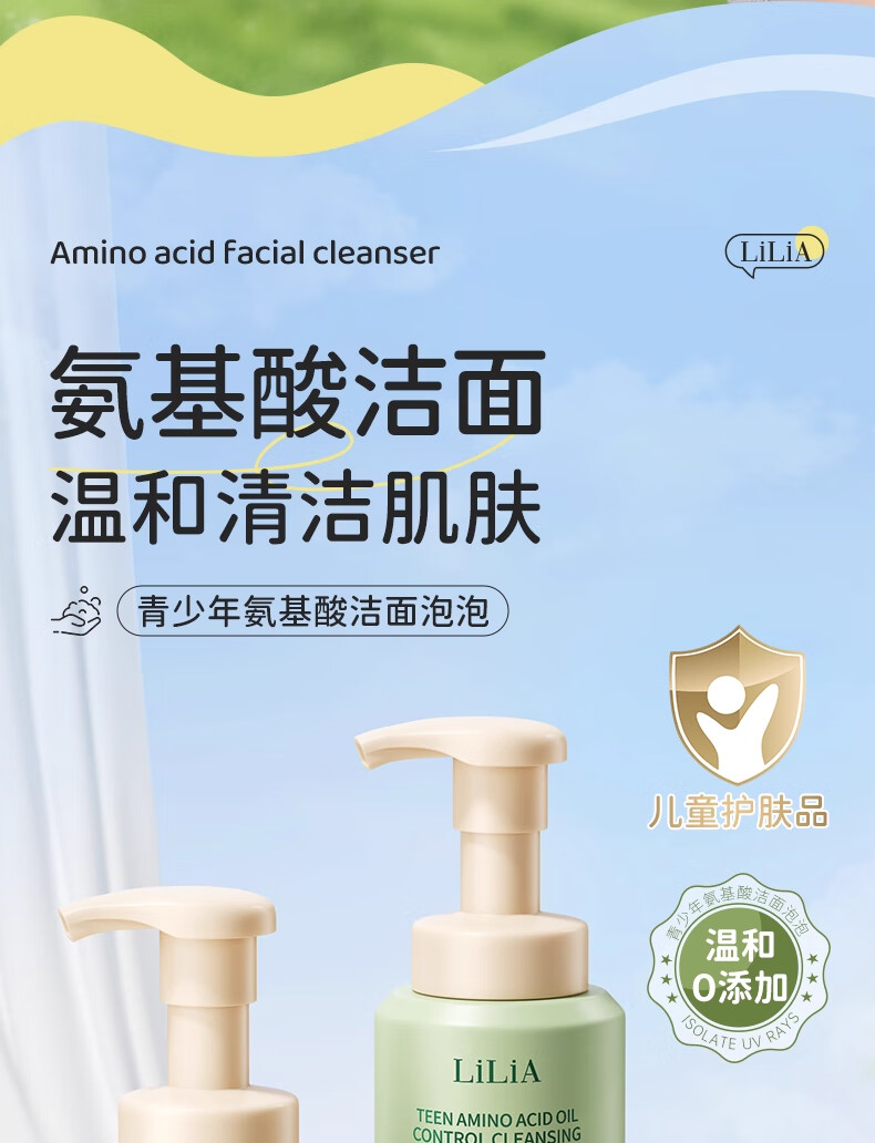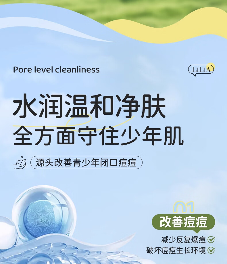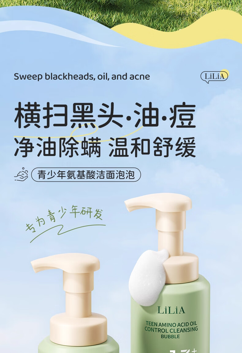 LILIA青少年氨基酸洁面乳12-18岁控油清痘洗面奶初高中生洁面深层清洁 900ml 【油痘闭口克星】敏肌安心用