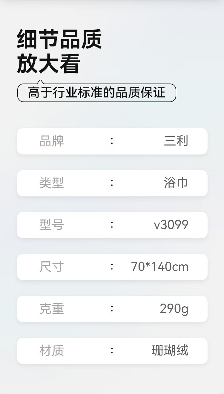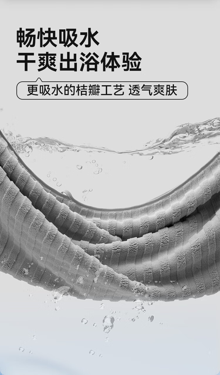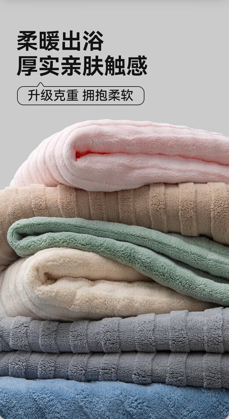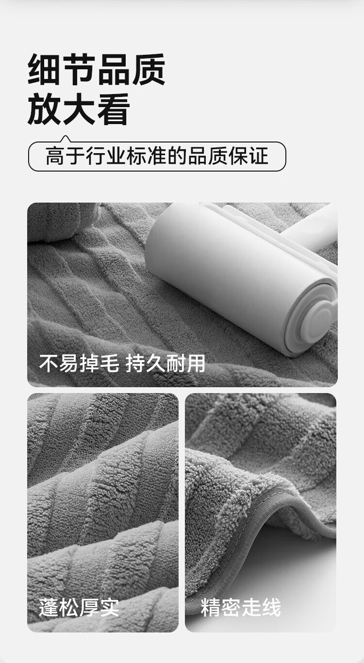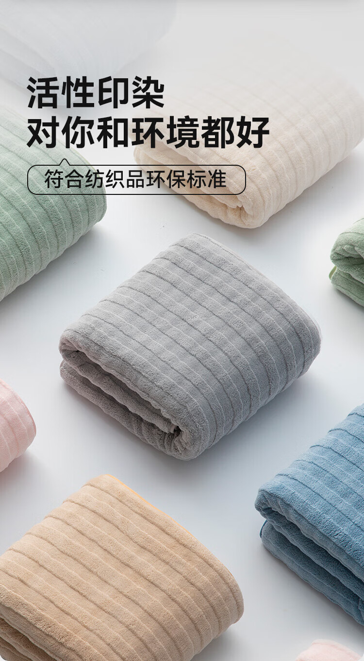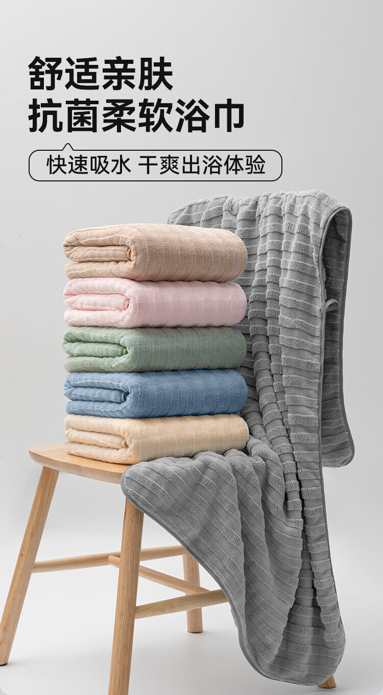 三利浴巾 7A抗菌珊瑚绒洗脸洗澡柔软吸水速干不易掉毛成人情侣大浴巾 灰色
