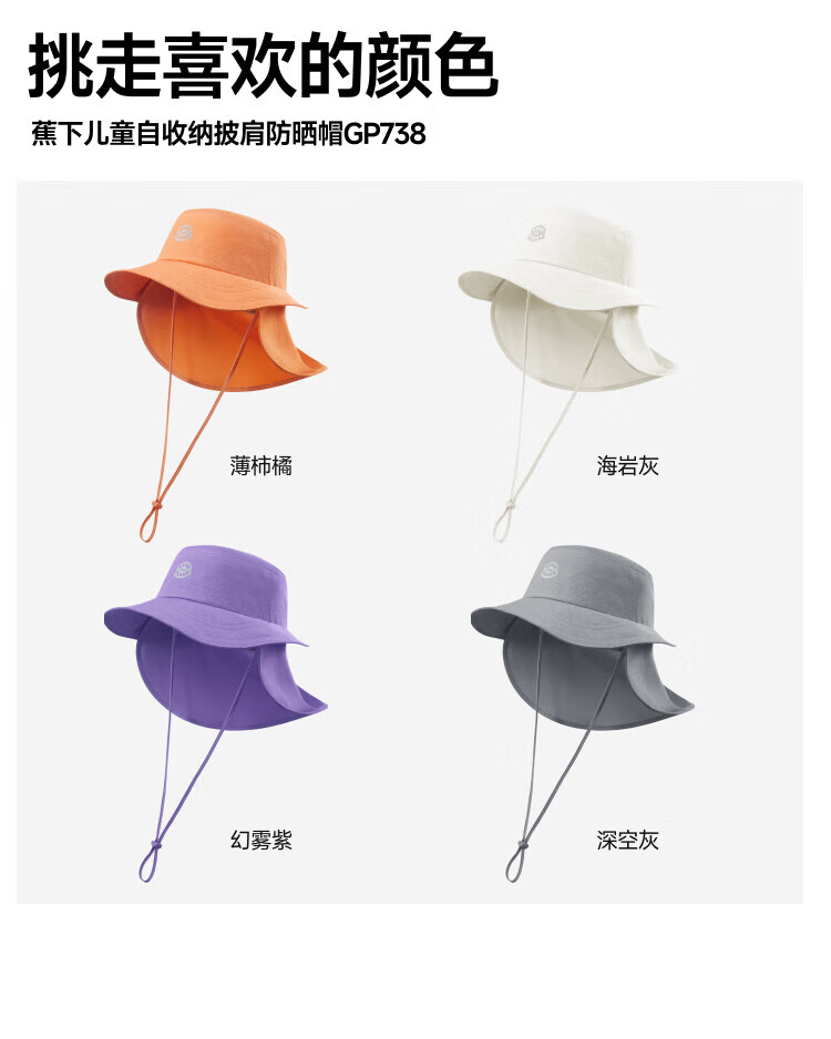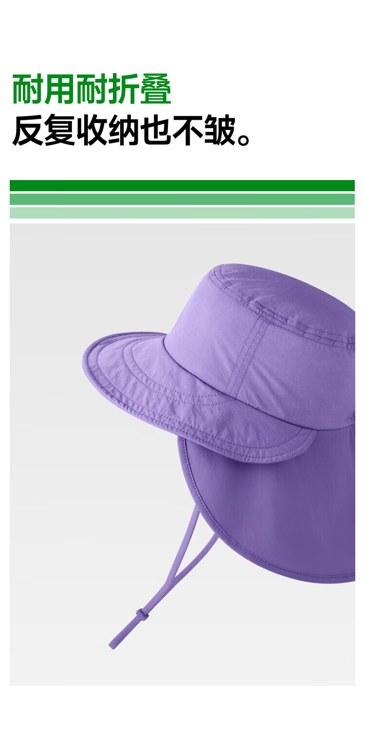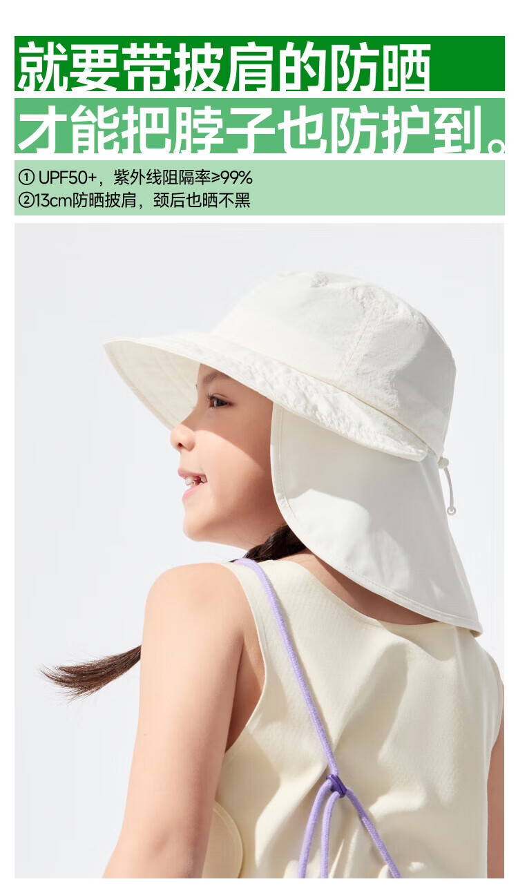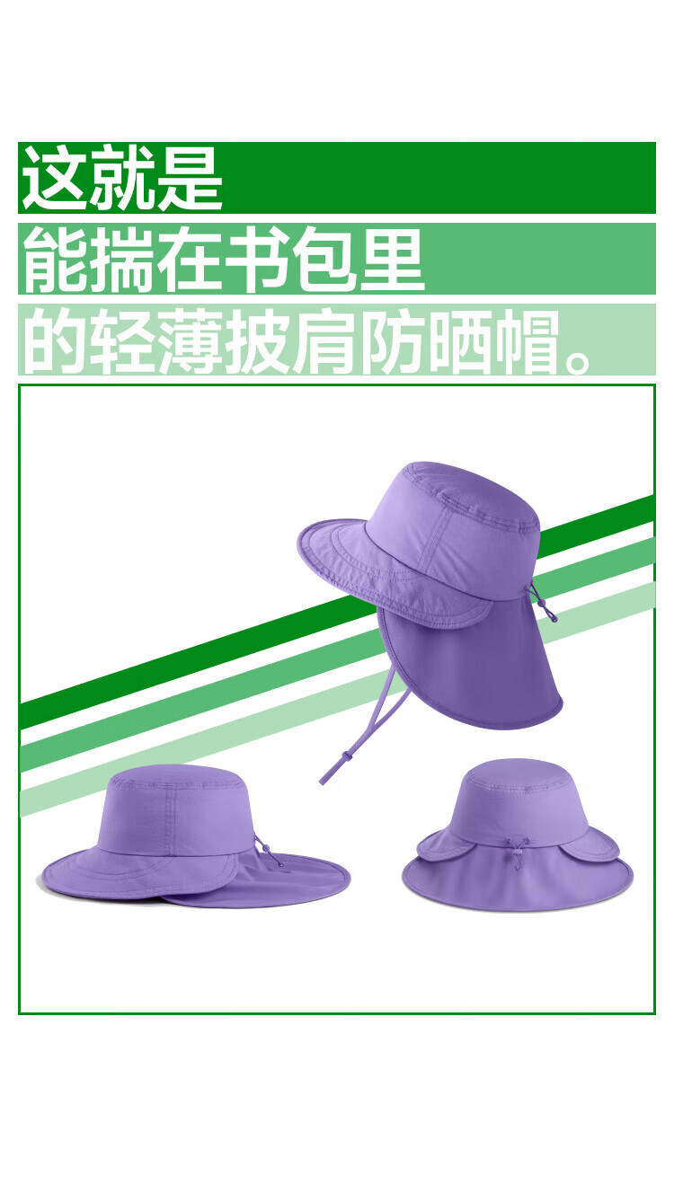 蕉下(beneunder)儿童自收纳披肩防晒帽男女童大帽檐防紫外线披肩宝宝遮阳帽男女童 幻雾紫 头围50-54CM