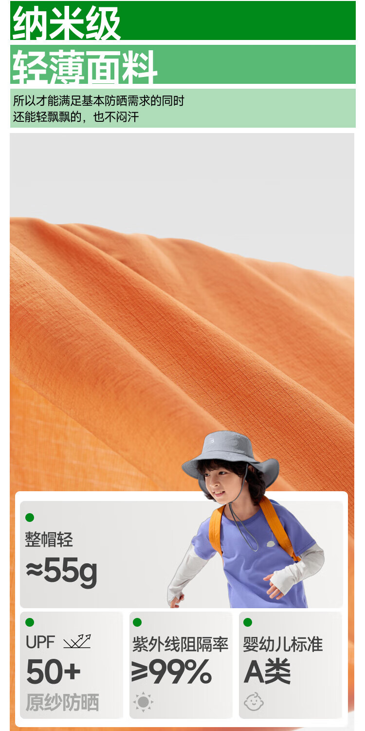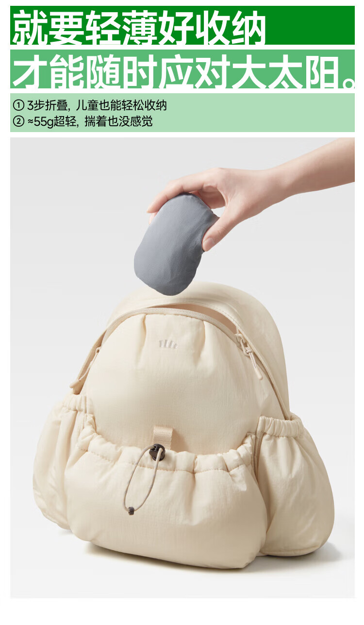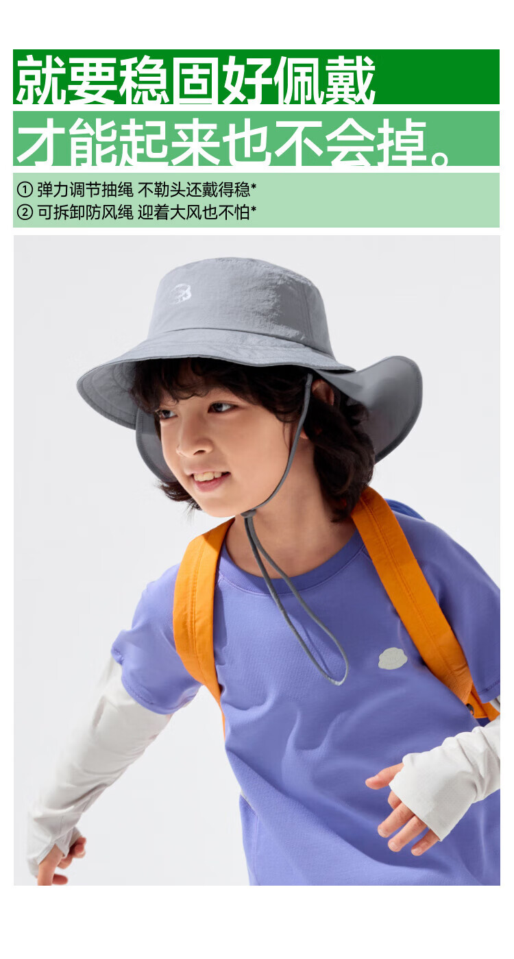 蕉下(beneunder)儿童自收纳披肩防晒帽男女童大帽檐防紫外线披肩宝宝遮阳帽男女童 幻雾紫 头围50-54CM