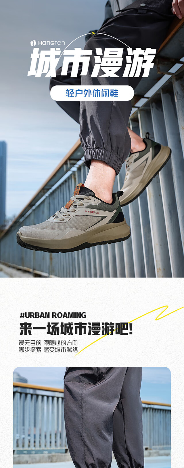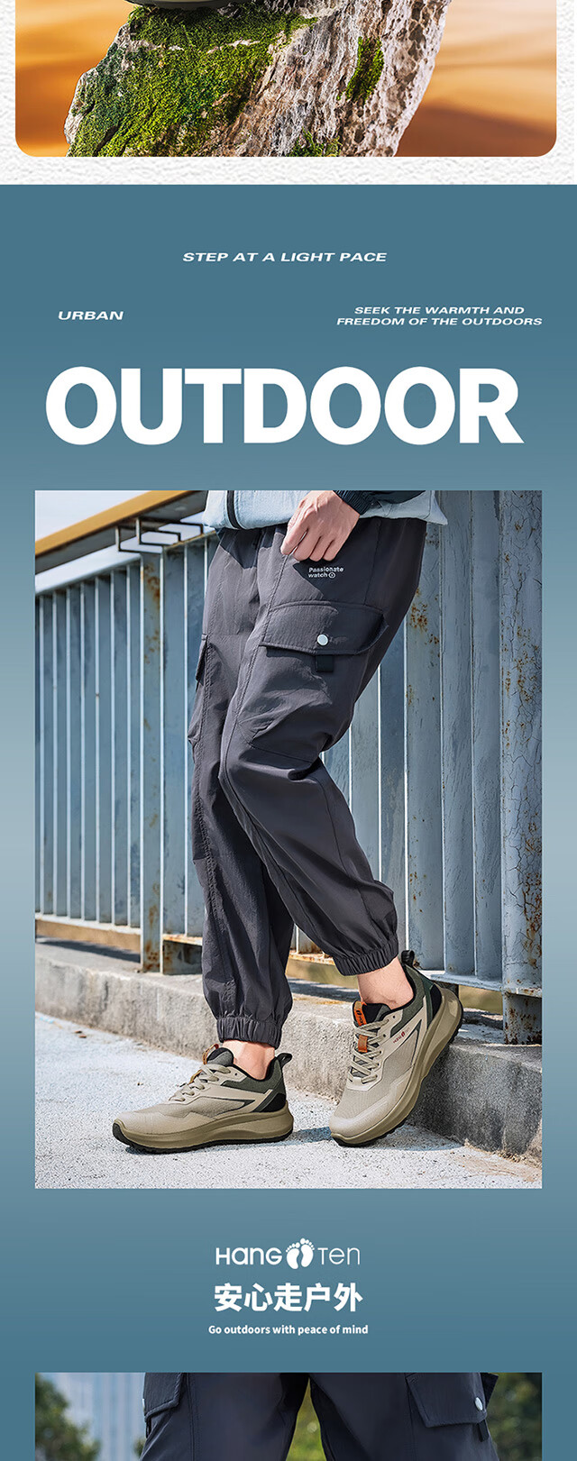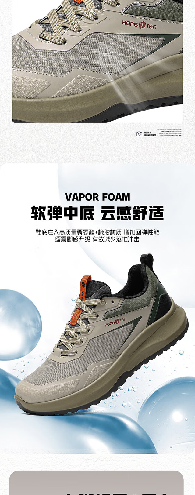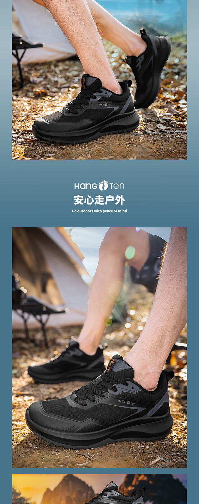 欢腾(HANG TEN)户外徒步男鞋2025春夏新款透气登山鞋复古休闲运动鞋轻便软底 黑灰 40