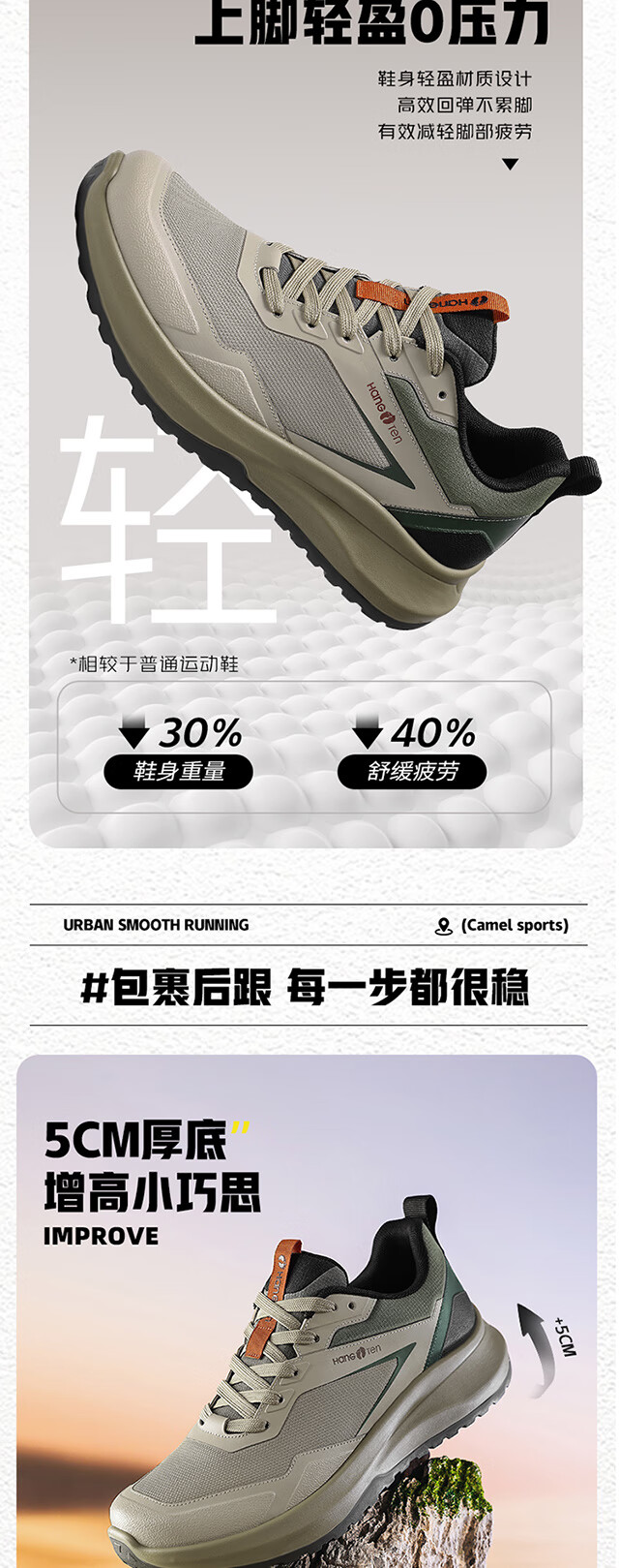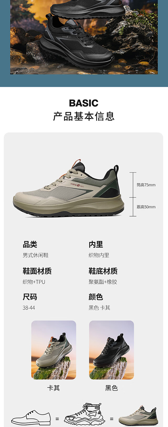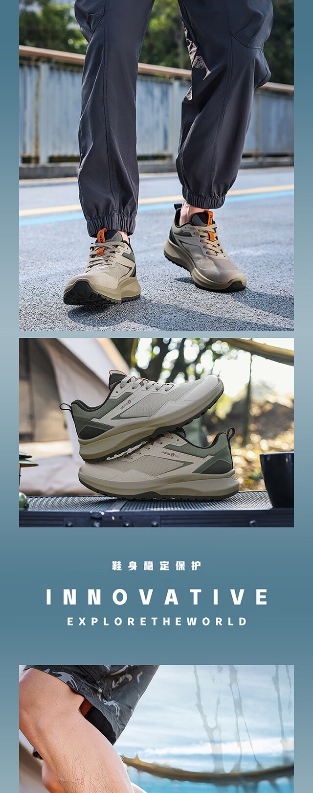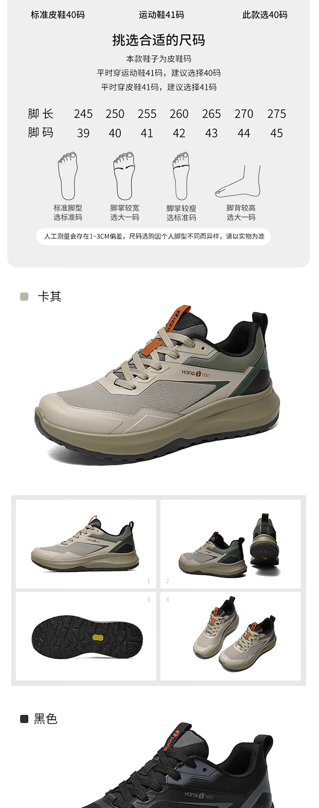 欢腾(HANG TEN)户外徒步男鞋2025春夏新款透气登山鞋复古休闲运动鞋轻便软底 黑灰 40