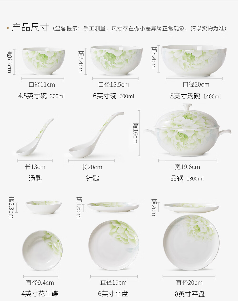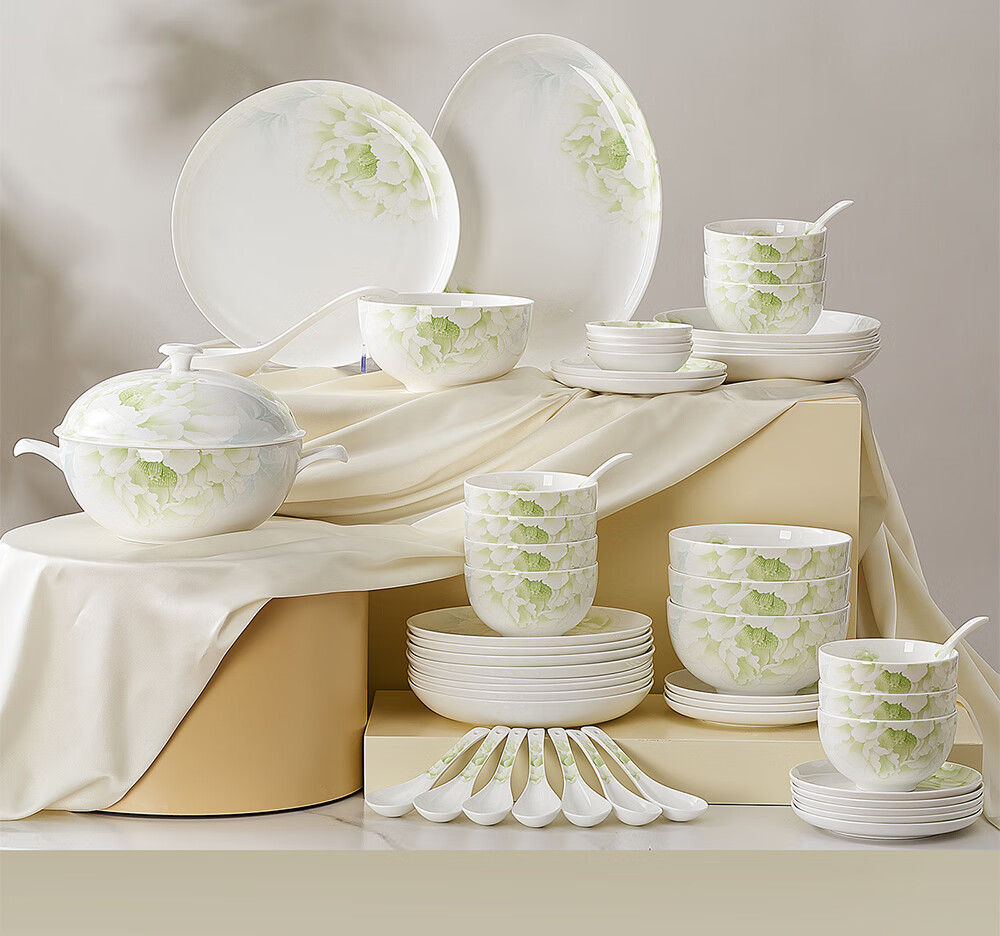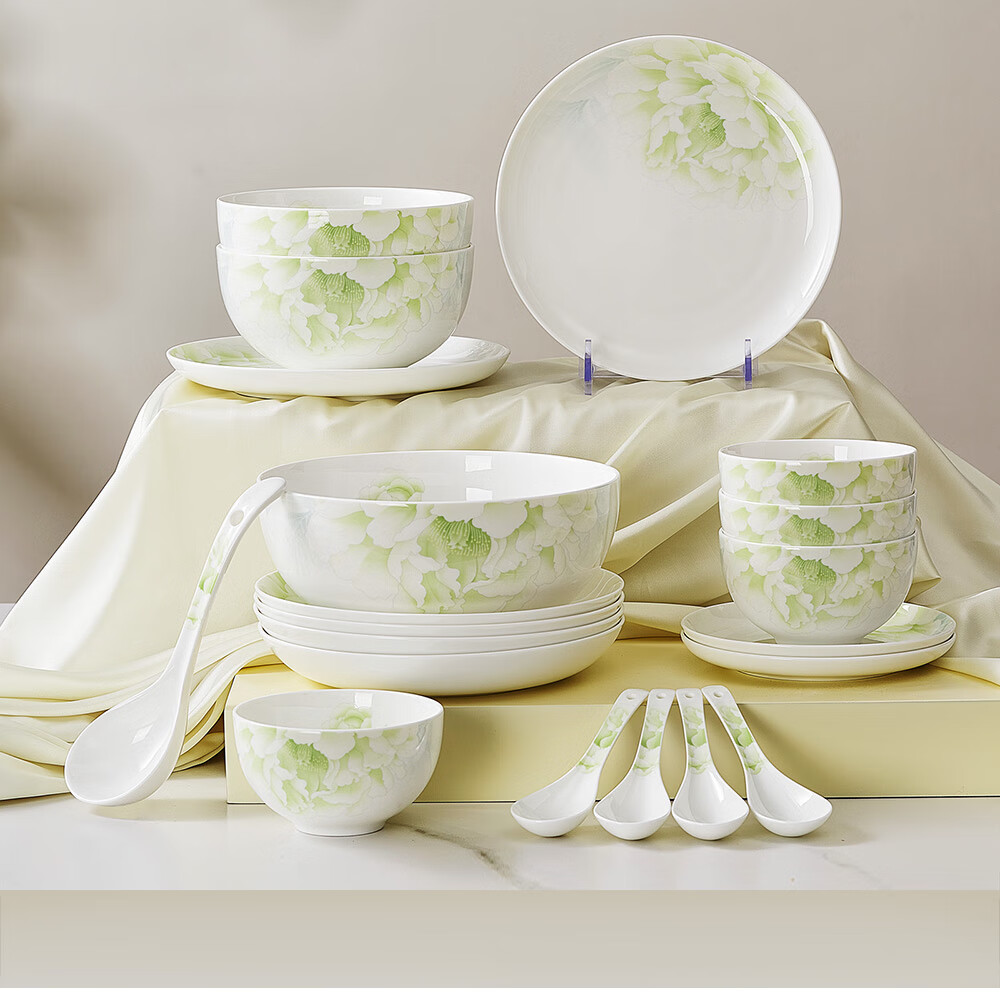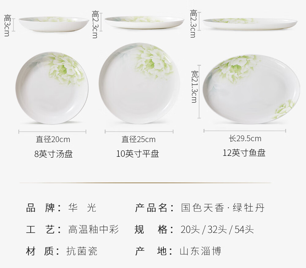 华光国瓷 碗盘餐具整套 抗菌餐具碗碟套装 婚庆乔迁之喜 国色天香 国色天香 20头