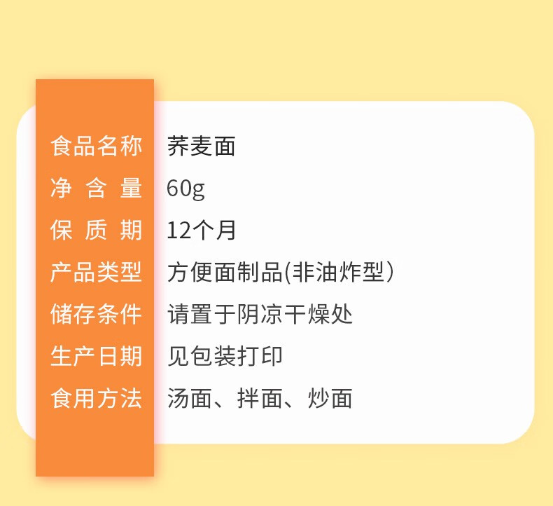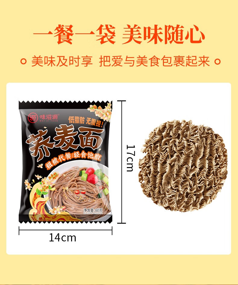 味滋源 非油炸荞麦方便面 荞麦挂面泡面饼 代餐速食懒人零食 荞麦面60g*5袋