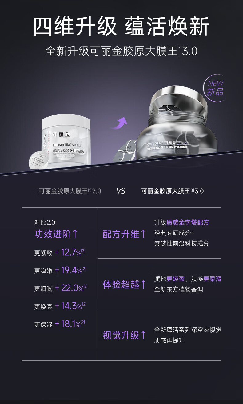 可丽金 胶原蛋白大膜王睡眠涂抹面膜免洗 送女友 大膜王3杯/盒