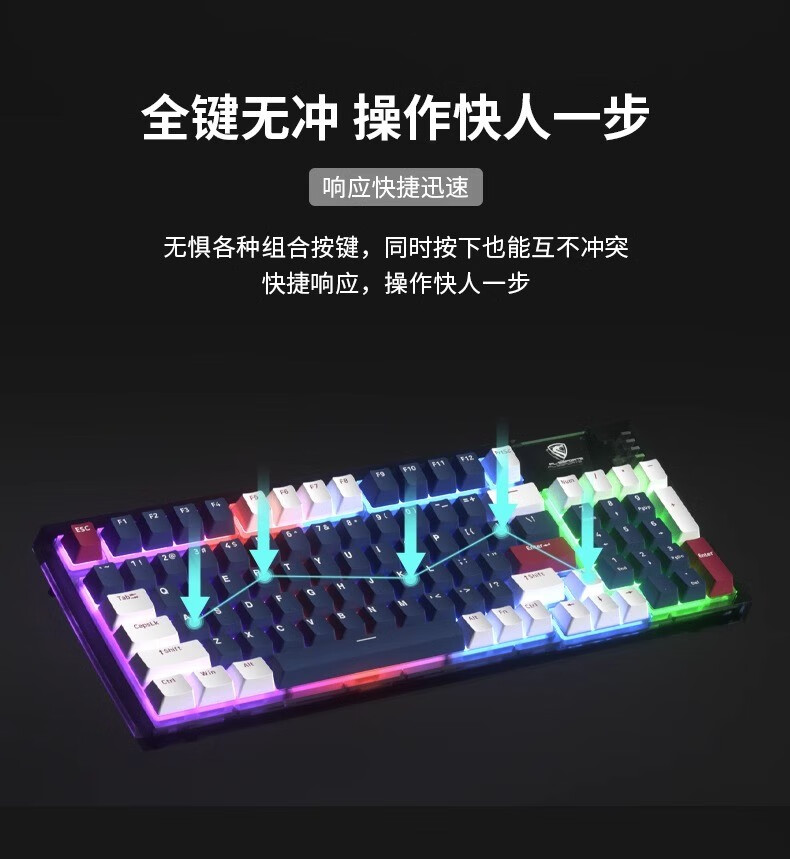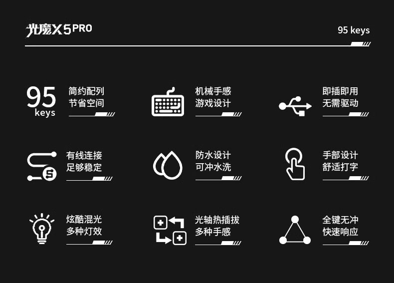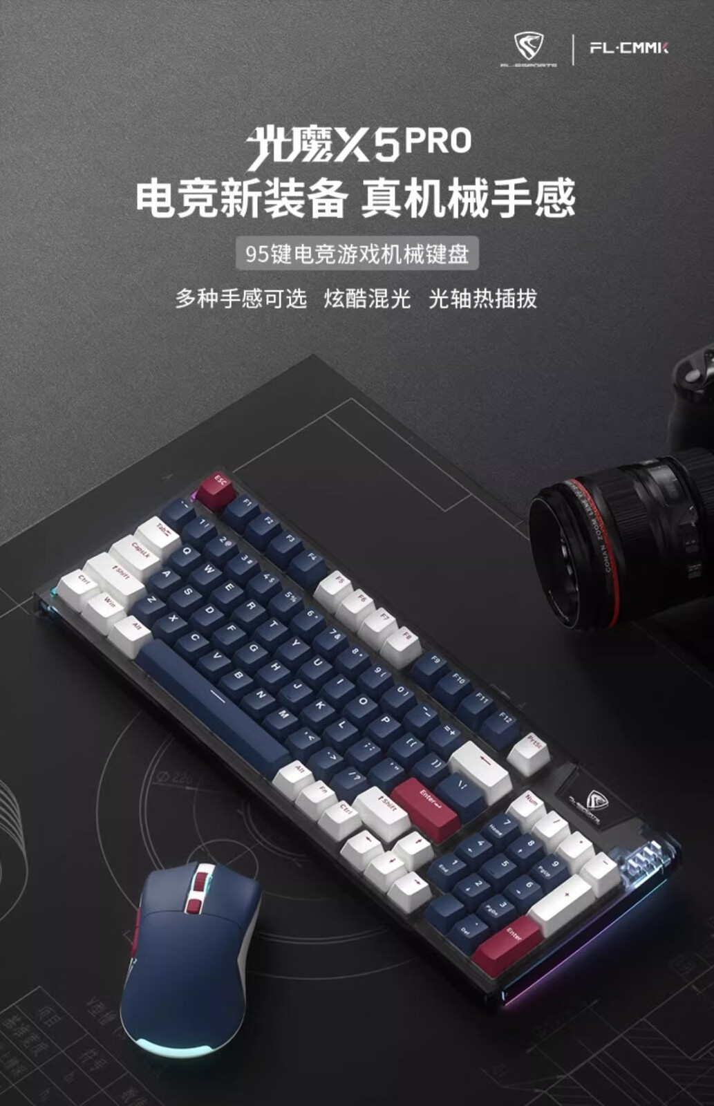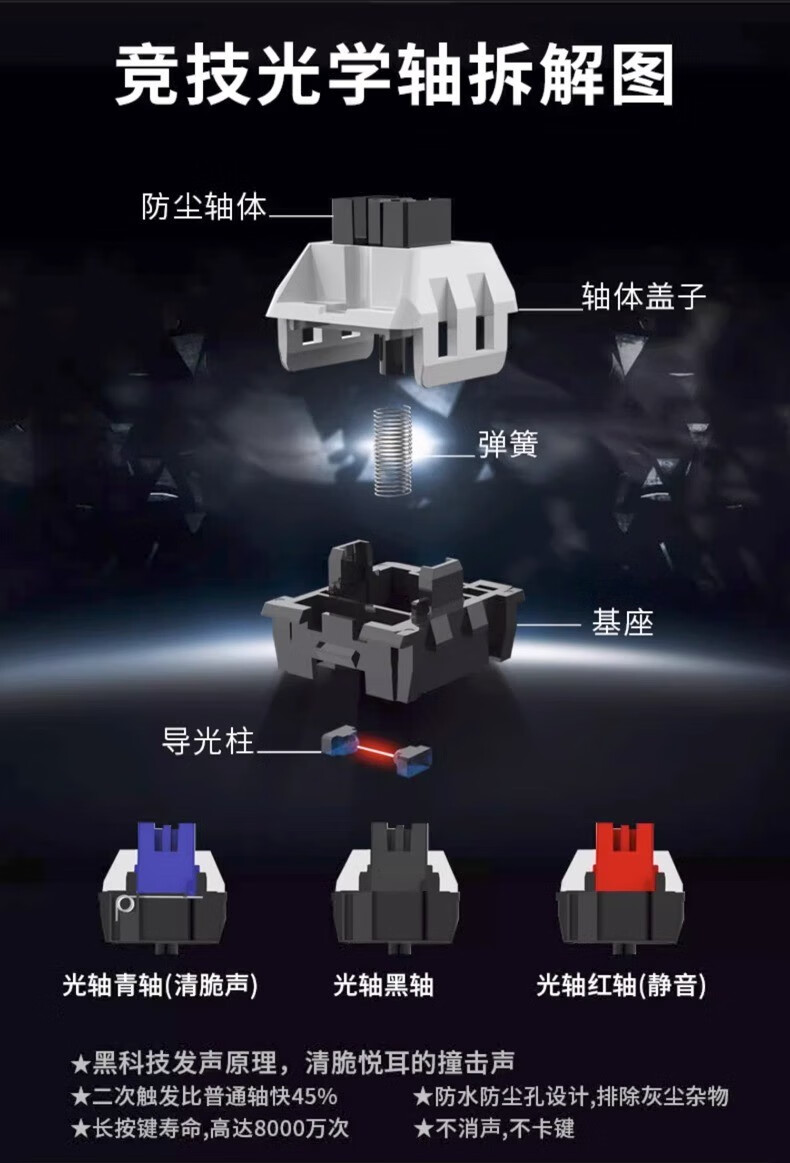 腹灵光魔X5Pro机械键盘光轴青轴红轴防水可插拔网吧电竞游戏专用 光魔X5 PRO黑透面 机械之心 光轴青轴