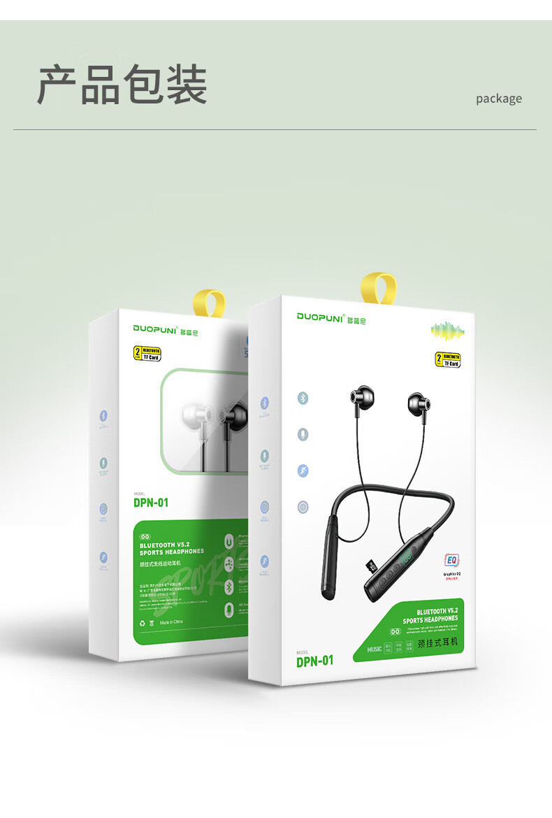 【严选】多普尼电量显示大电量双耳长续航蓝牙耳机无线颈挂脖式运 【盒装】G05挂脖耳机-黑色