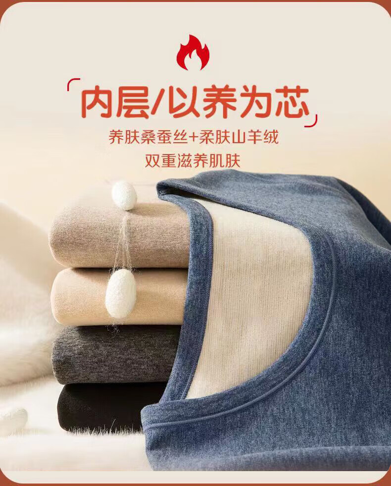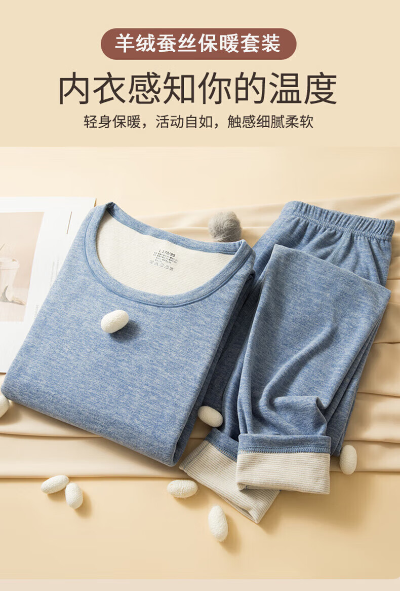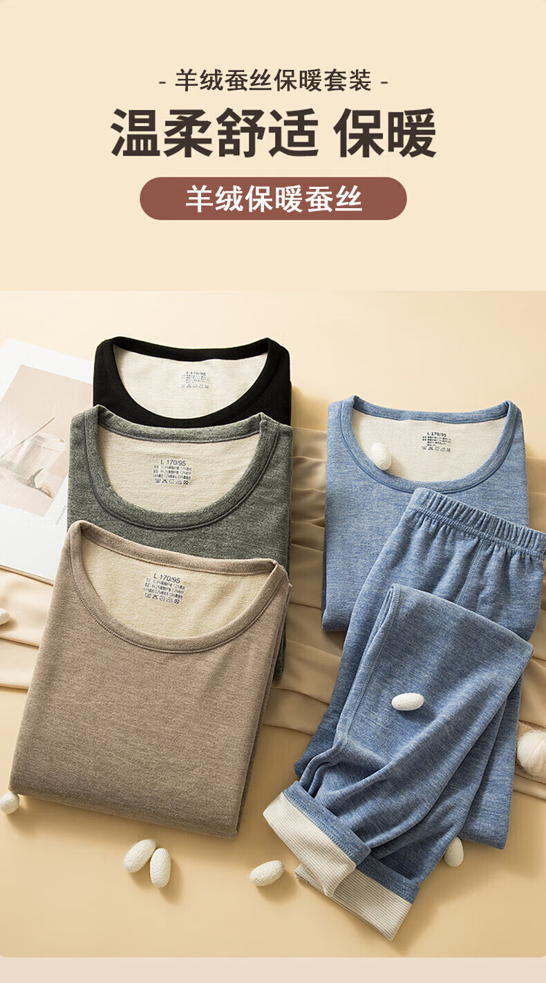 雅鹿羊绒保暖内衣男士蚕丝养肤线衣线裤打底秋衣秋裤套装秋冬季 深灰【男款】 2XL