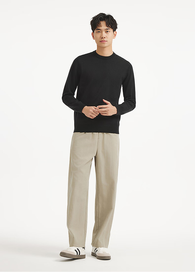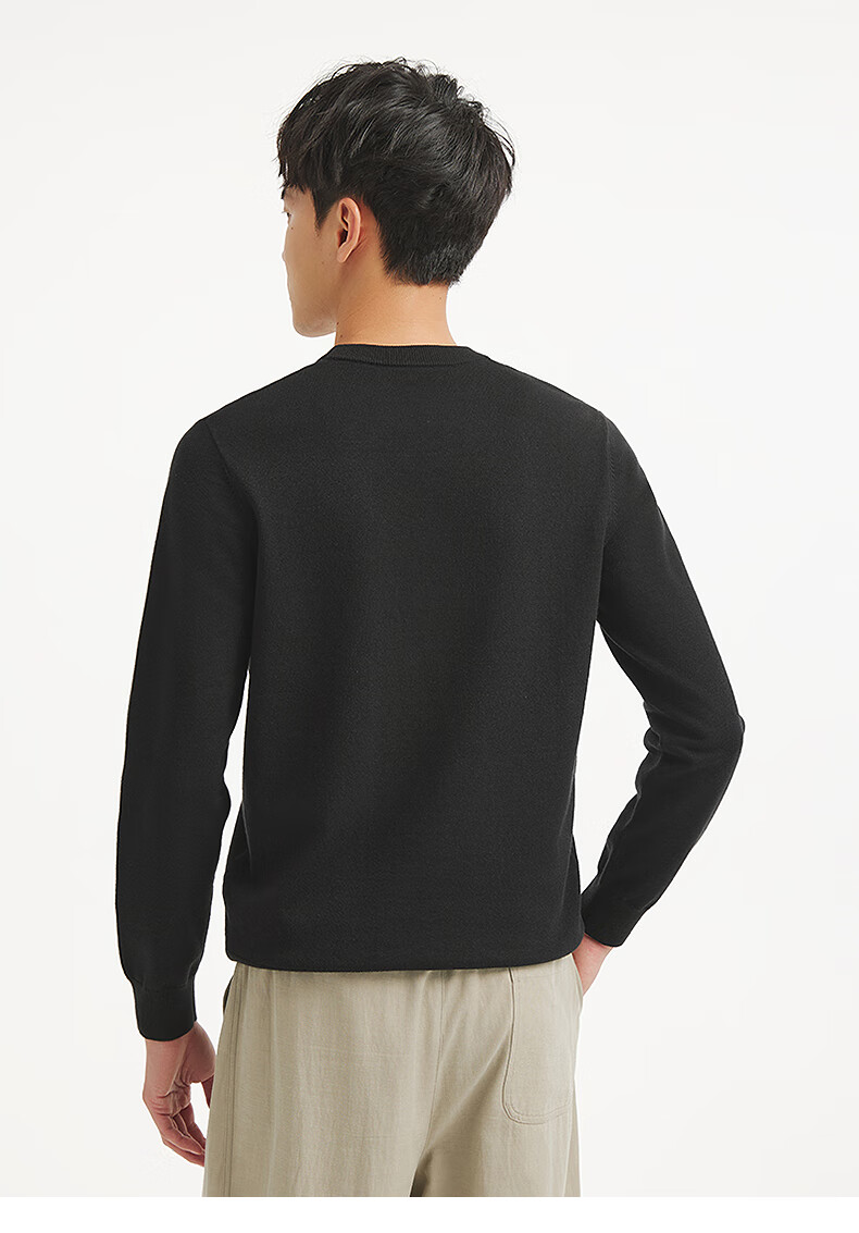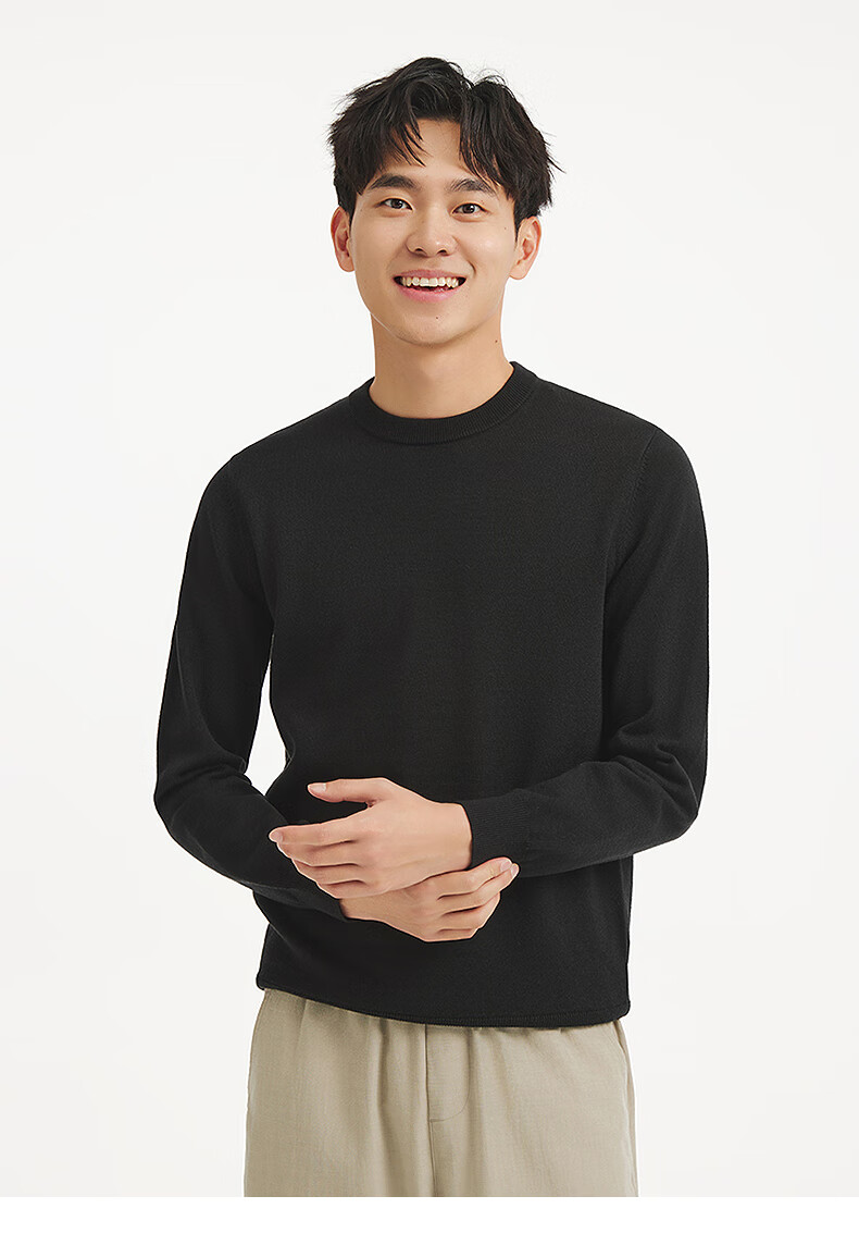 热风男士打底针织衫2025年秋季新款纯色基础款圆领针织衫内搭上衣 01黑色 S