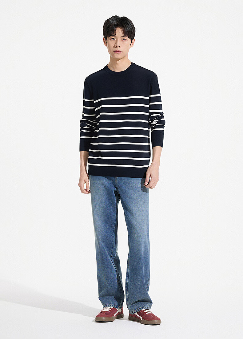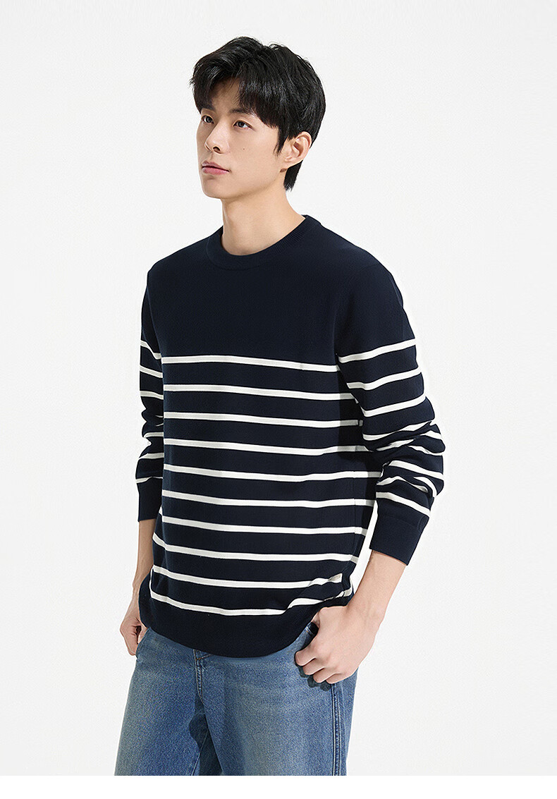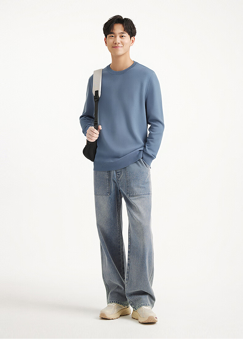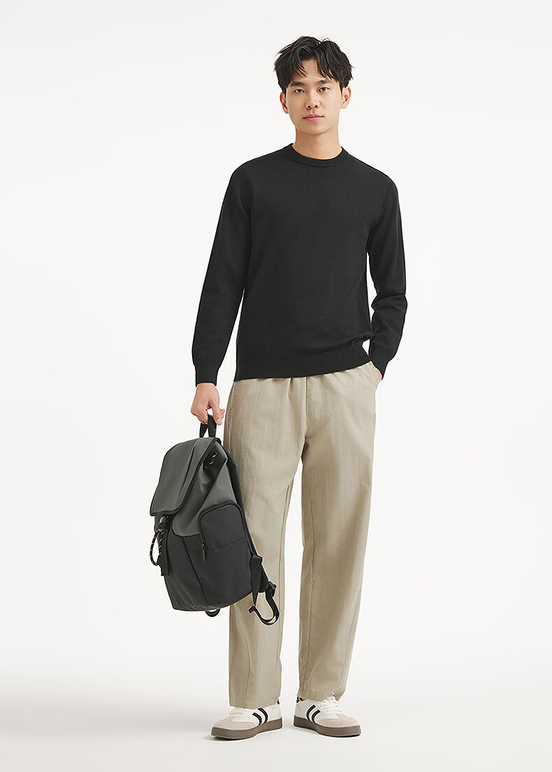 热风男士打底针织衫2025年秋季新款纯色基础款圆领针织衫内搭上衣 01黑色 S