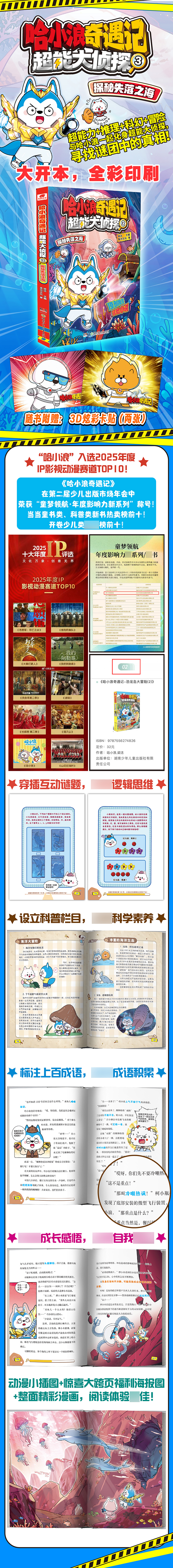【套装】哈小浪奇遇记 超能大侦探 全套3册 1揭秘玄空之镜2探索沙宫遗迹3探秘失落之海 恐龙岛大冒险原创科幻推理冒险图文小说 6-12岁中小学生课外阅读书 凤凰新华书店旗舰店 超能大侦探3探秘失落之海