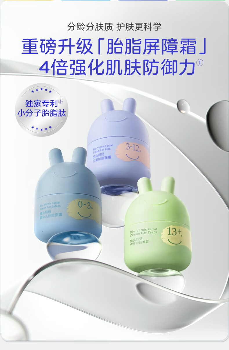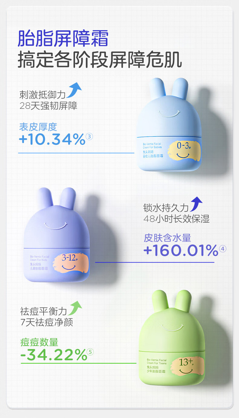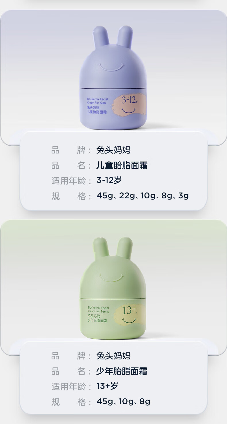 兔头妈妈儿童面霜尝鲜装宝宝霜婴儿润肤霜秋冬分龄保湿护肤滋润四季胎脂霜 【0-3换季必备】舒缓霜10g*2+胎脂面霜8g*2