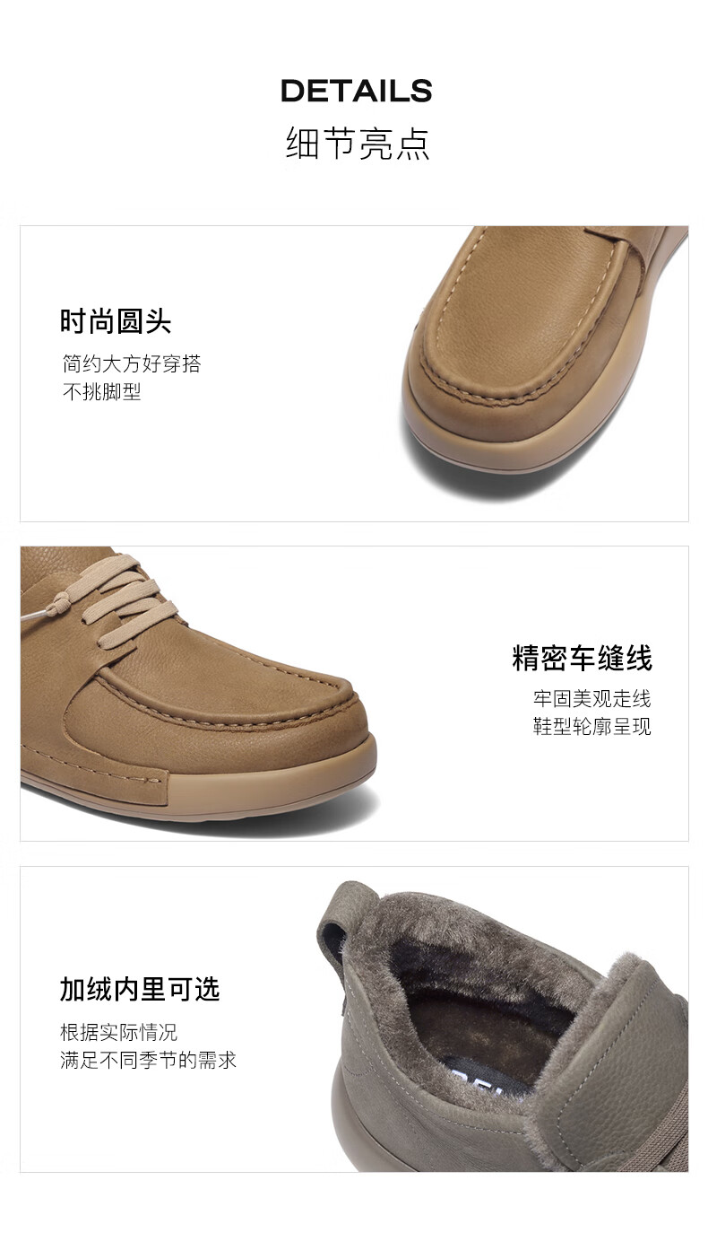 百丽高帮休闲工装鞋男25冬新款商场同款牛皮潮搭低靴加绒8WJ01DD5 卡其色-绒里 38 (240mm)