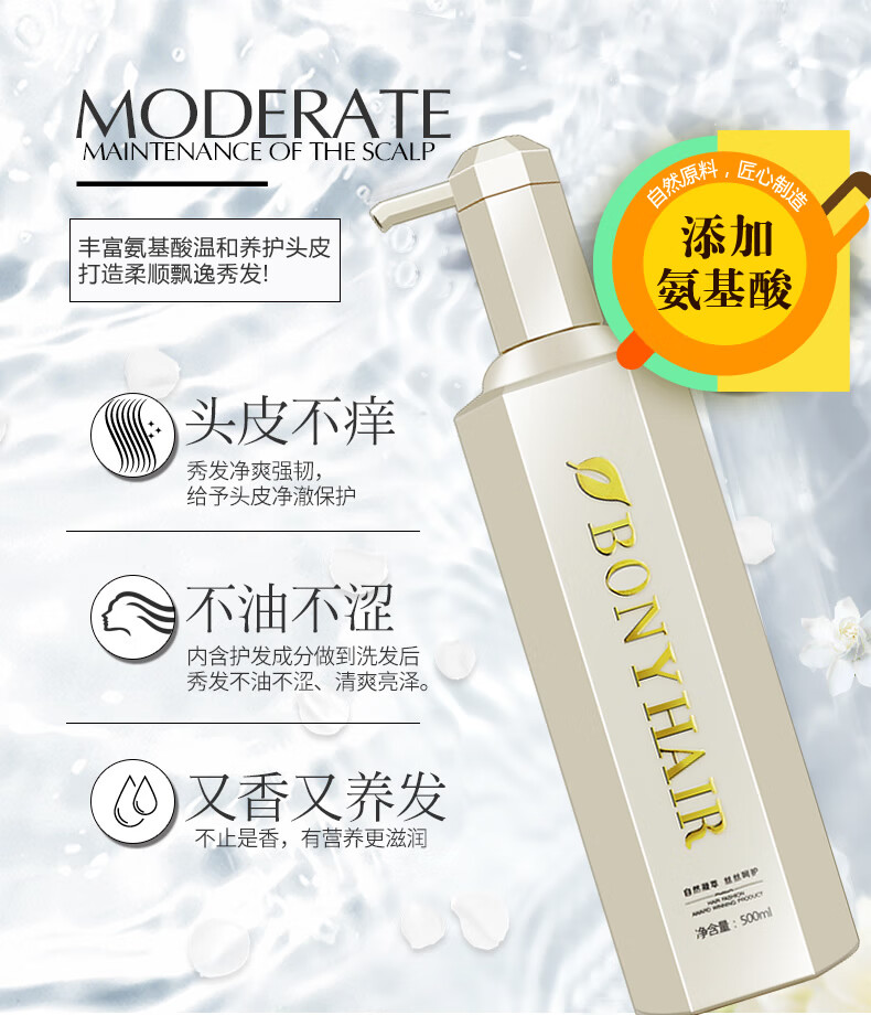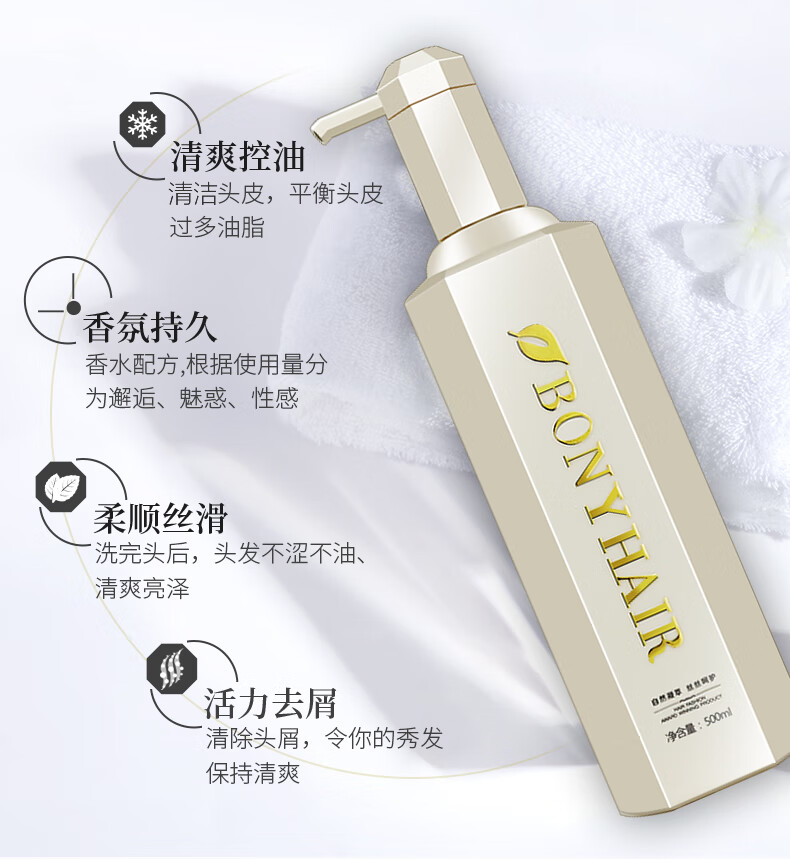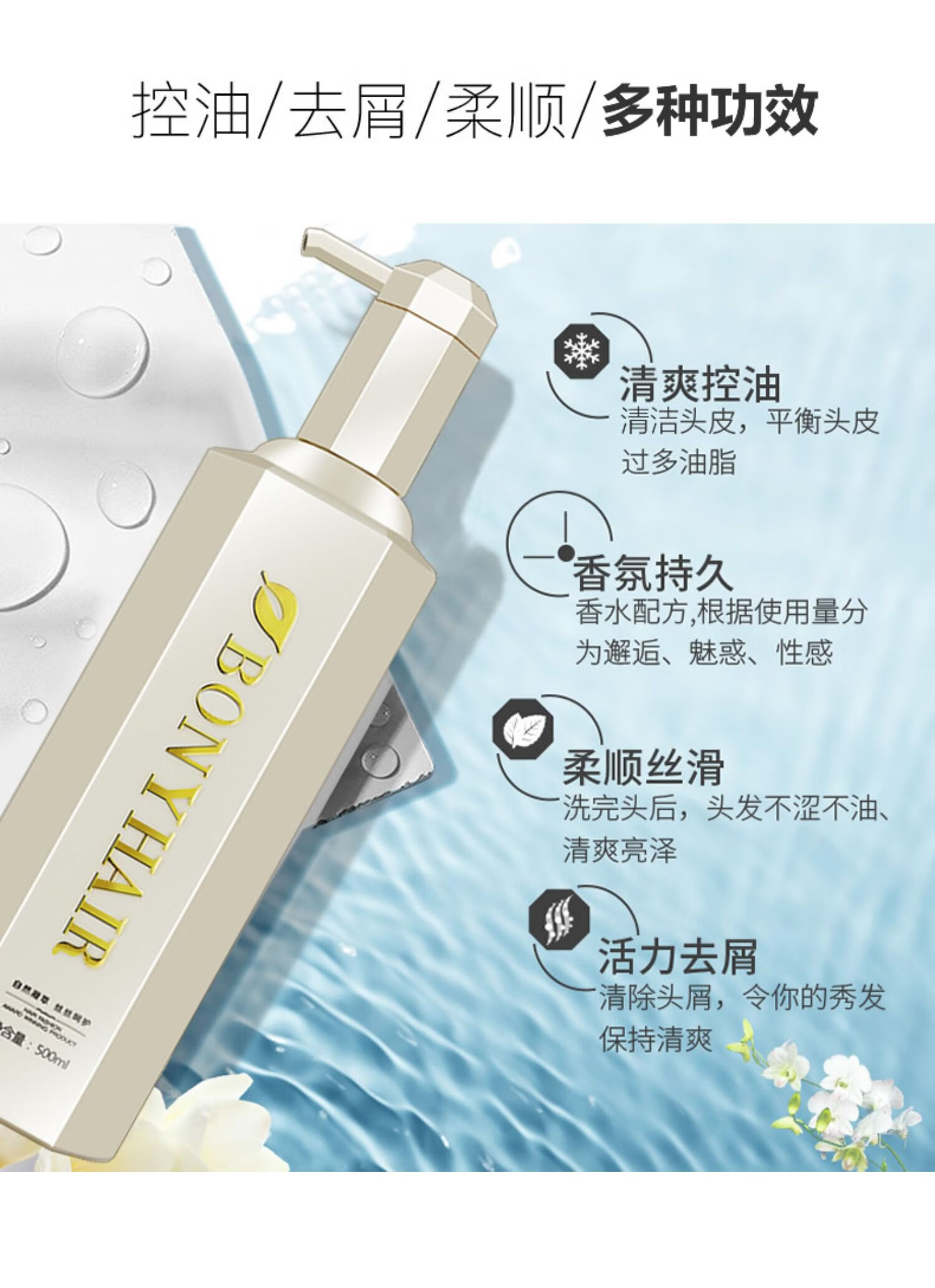 BONYHAIR香水洗发水去屑控油蓬松洗头膏护发素女套装正品官方品牌旗舰店 去屑止痒香水洗发水 500ml*2瓶