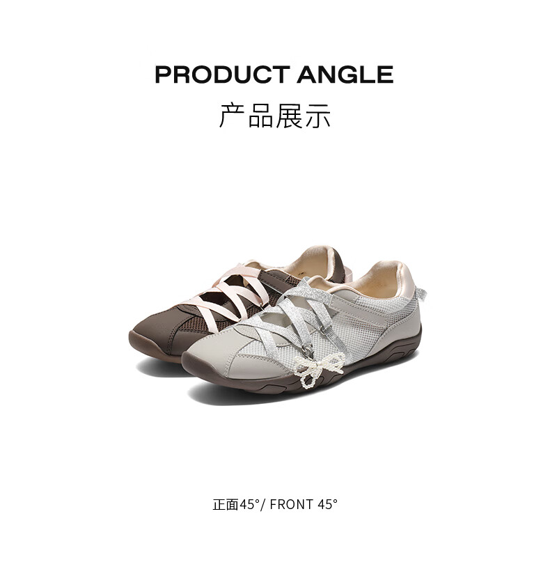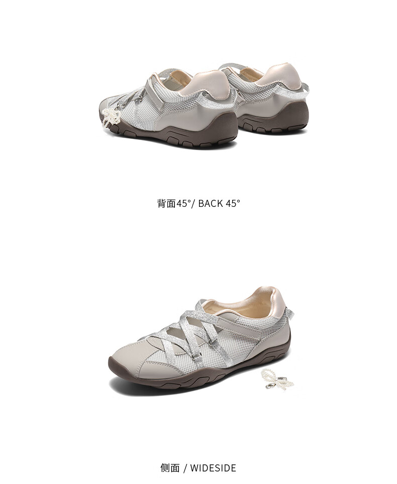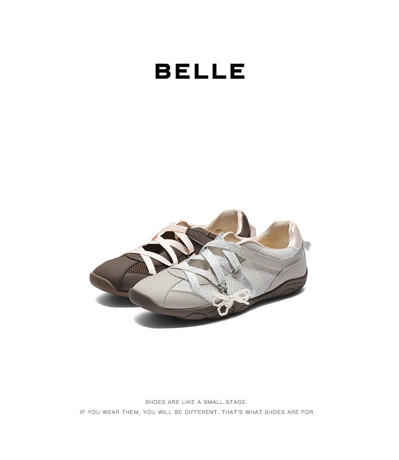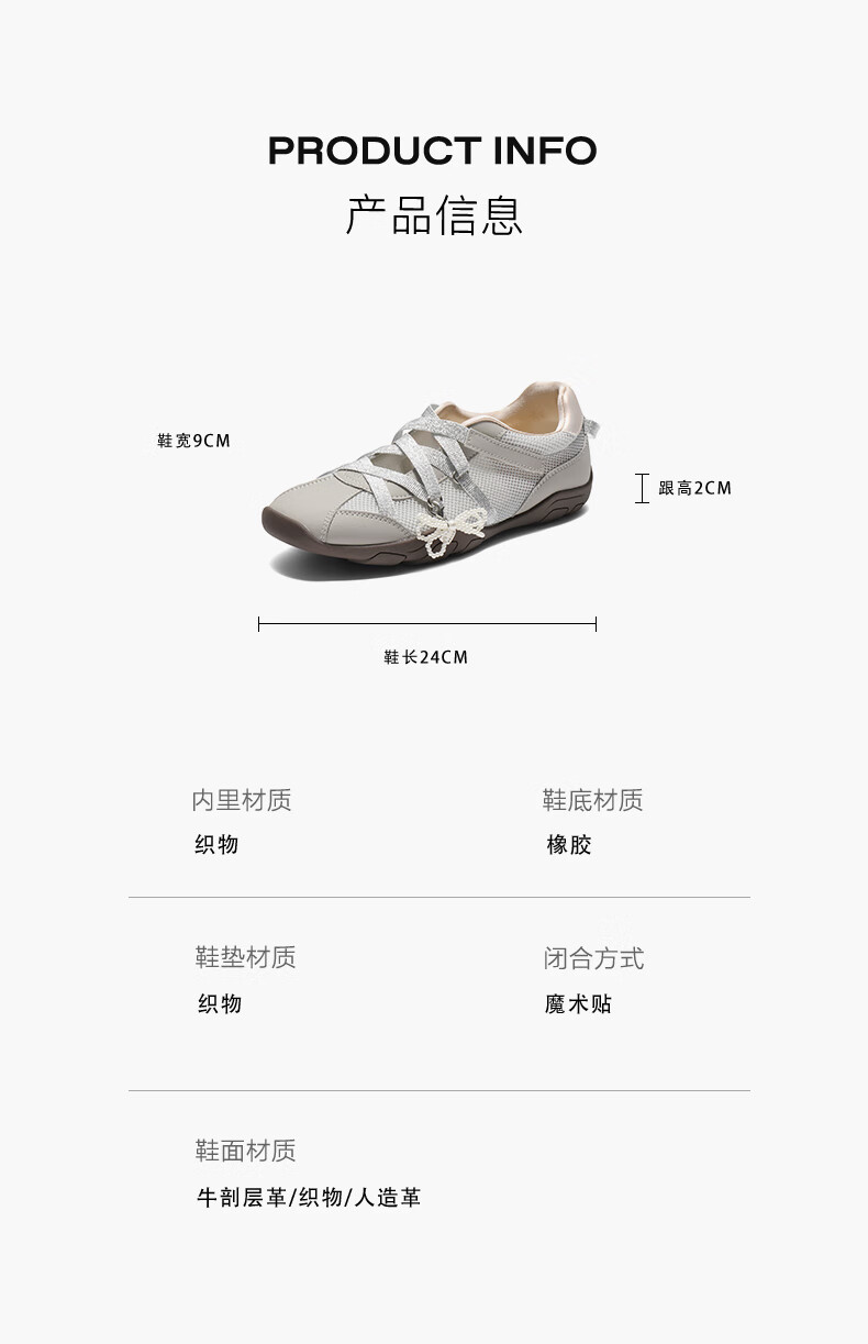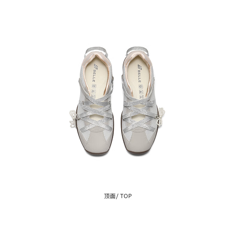 百丽(Belle)交叉带休闲玛丽珍鞋女2025秋新魔术贴薄底浅口单鞋B2870CQ5 灰色 38