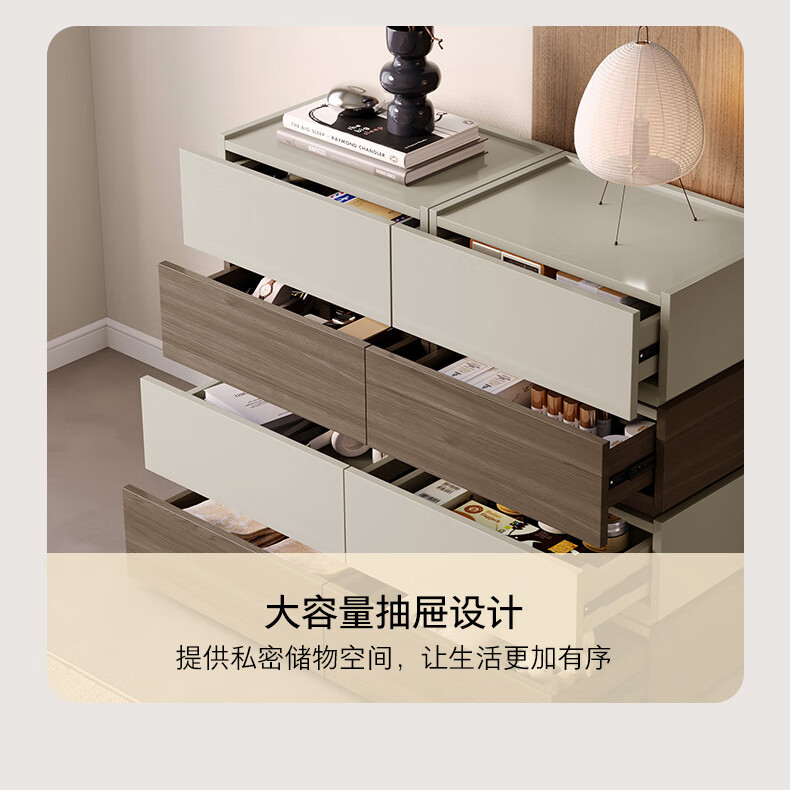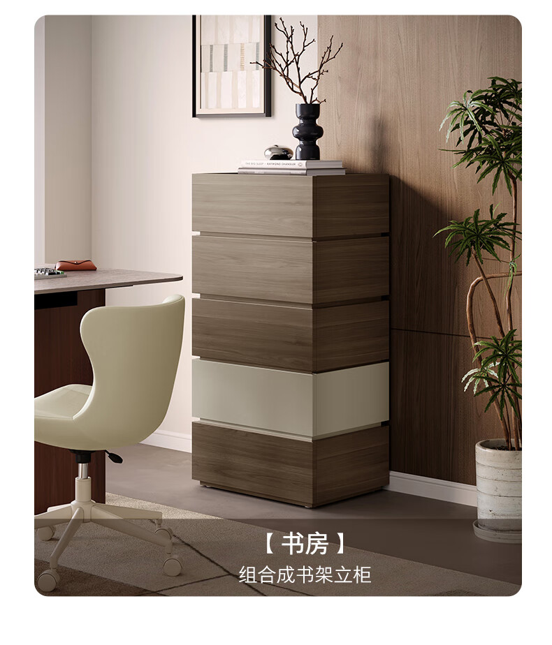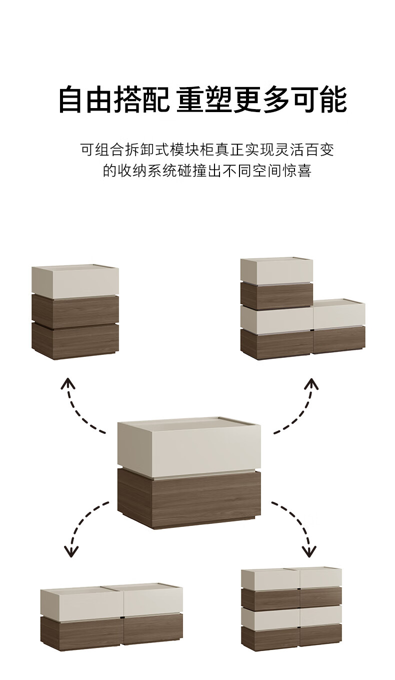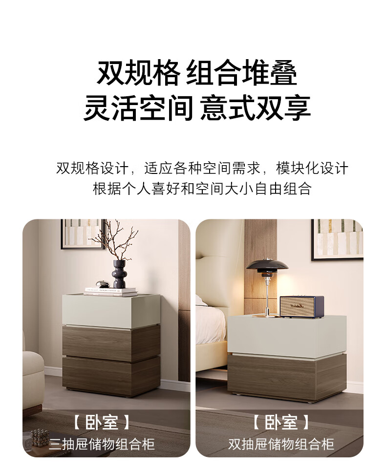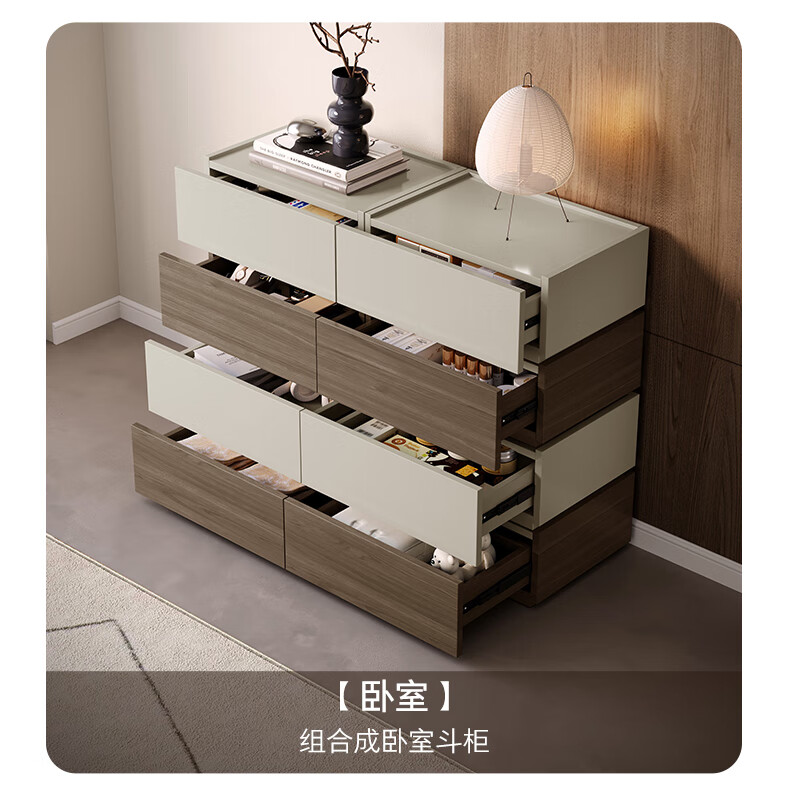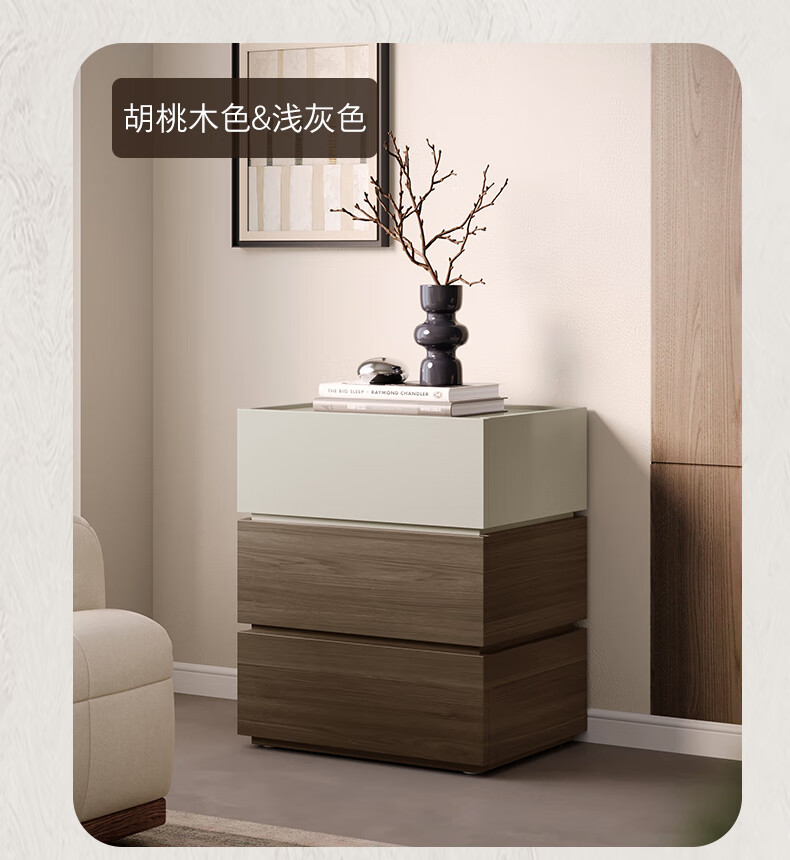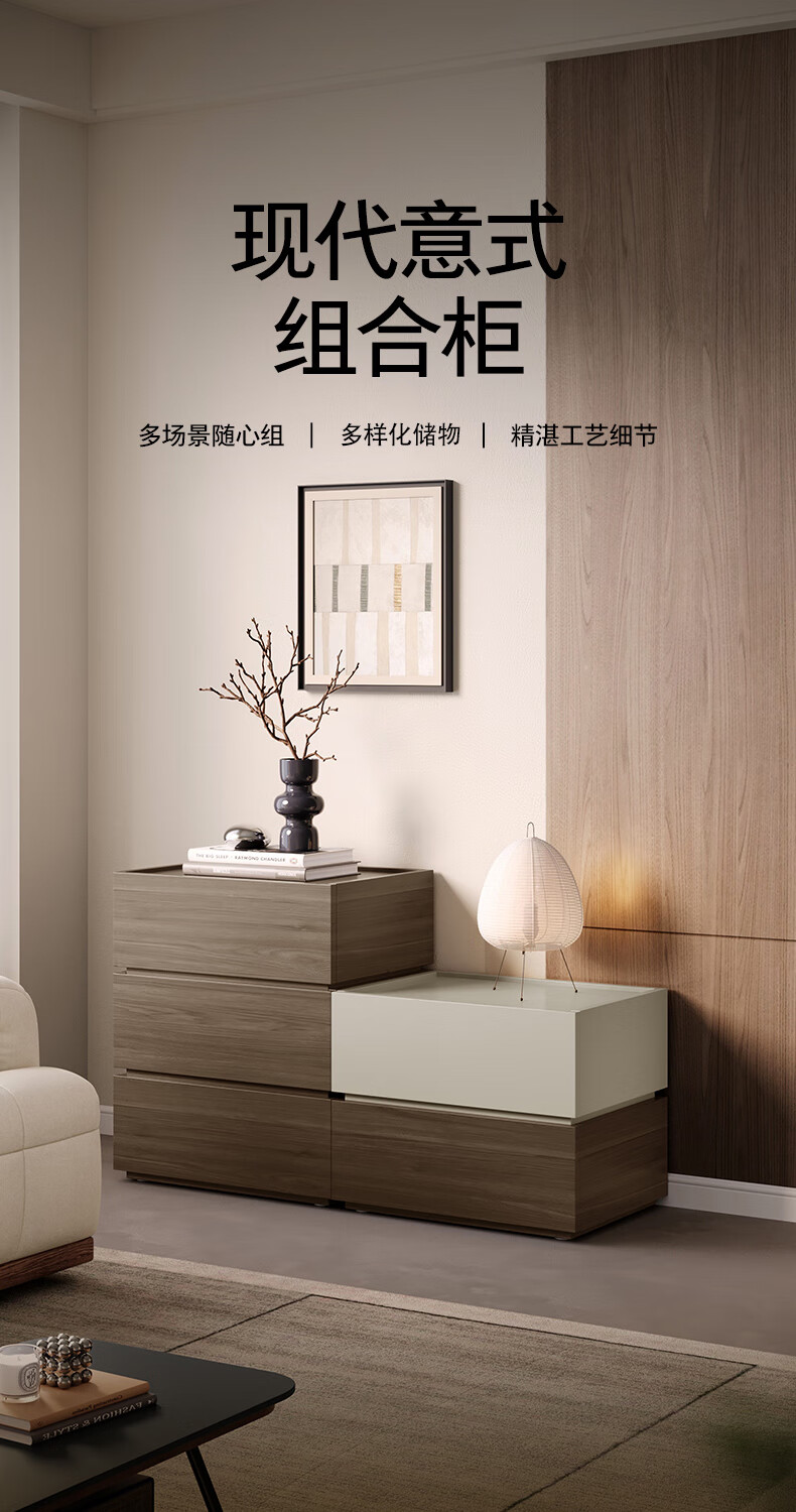 顾家家居(KUKA)现代意式组合柜多场景随心组多样化储物卧室床头柜DS8032G 【胡桃木色&浅灰色】双抽屉储物组合柜