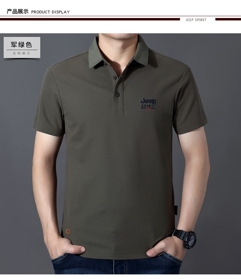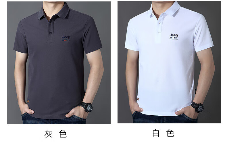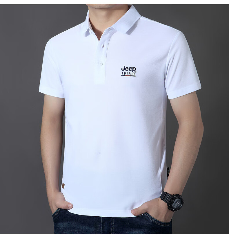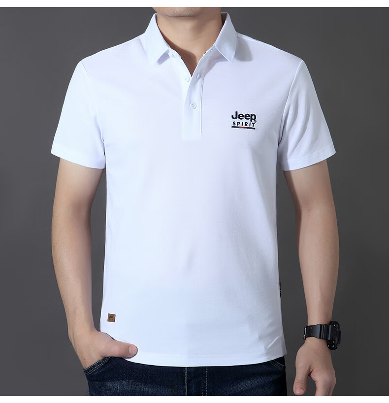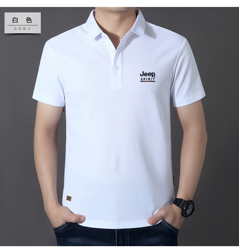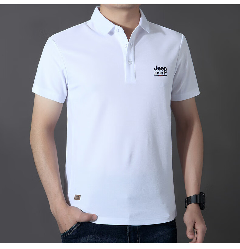 JEEP SPIRIT短袖t恤男棉2025春夏修身休闲大码翻领男士Polo 白色 M
